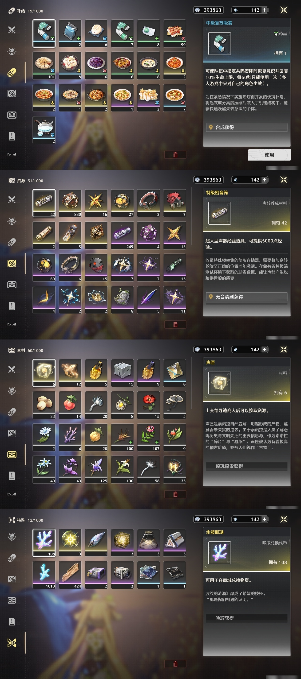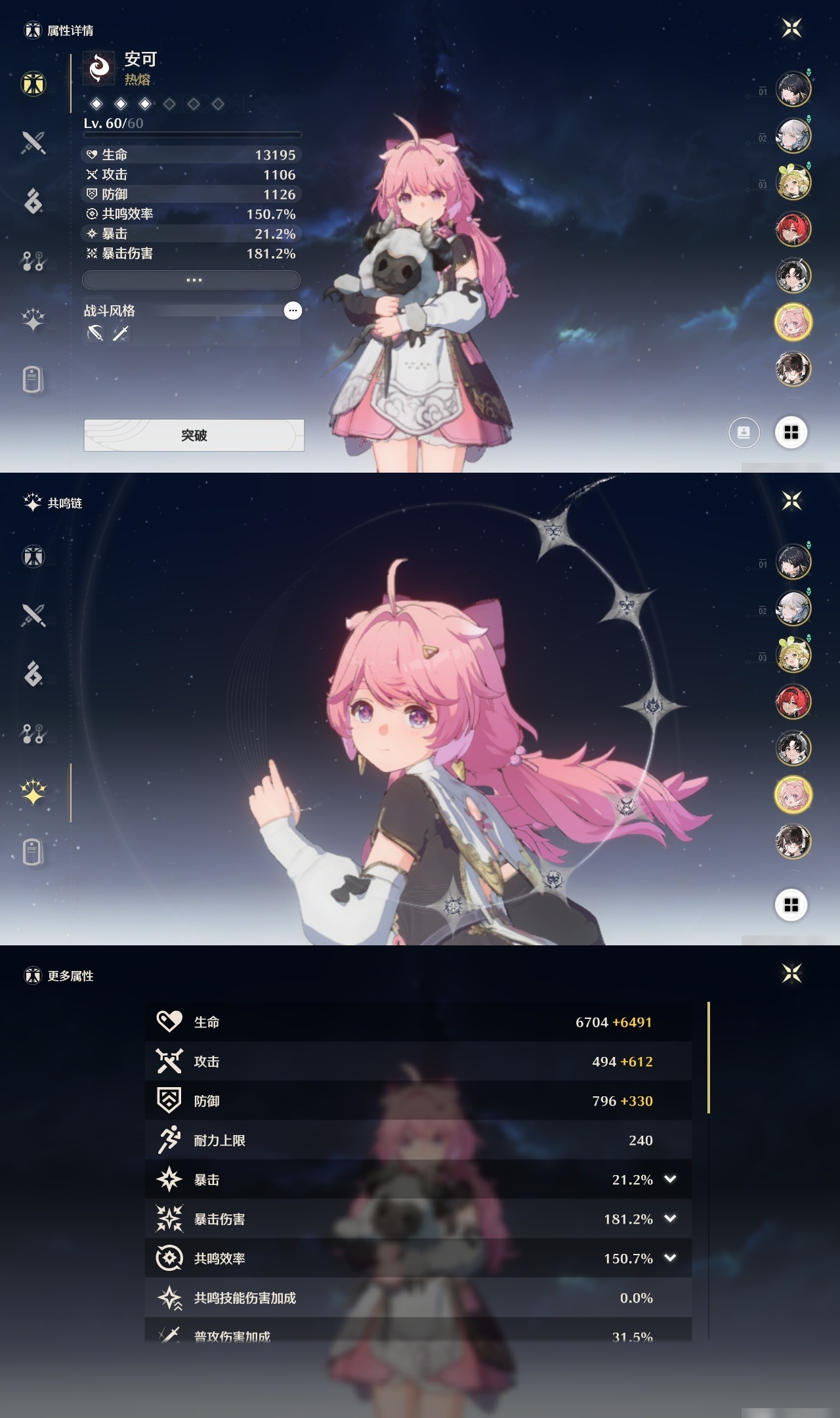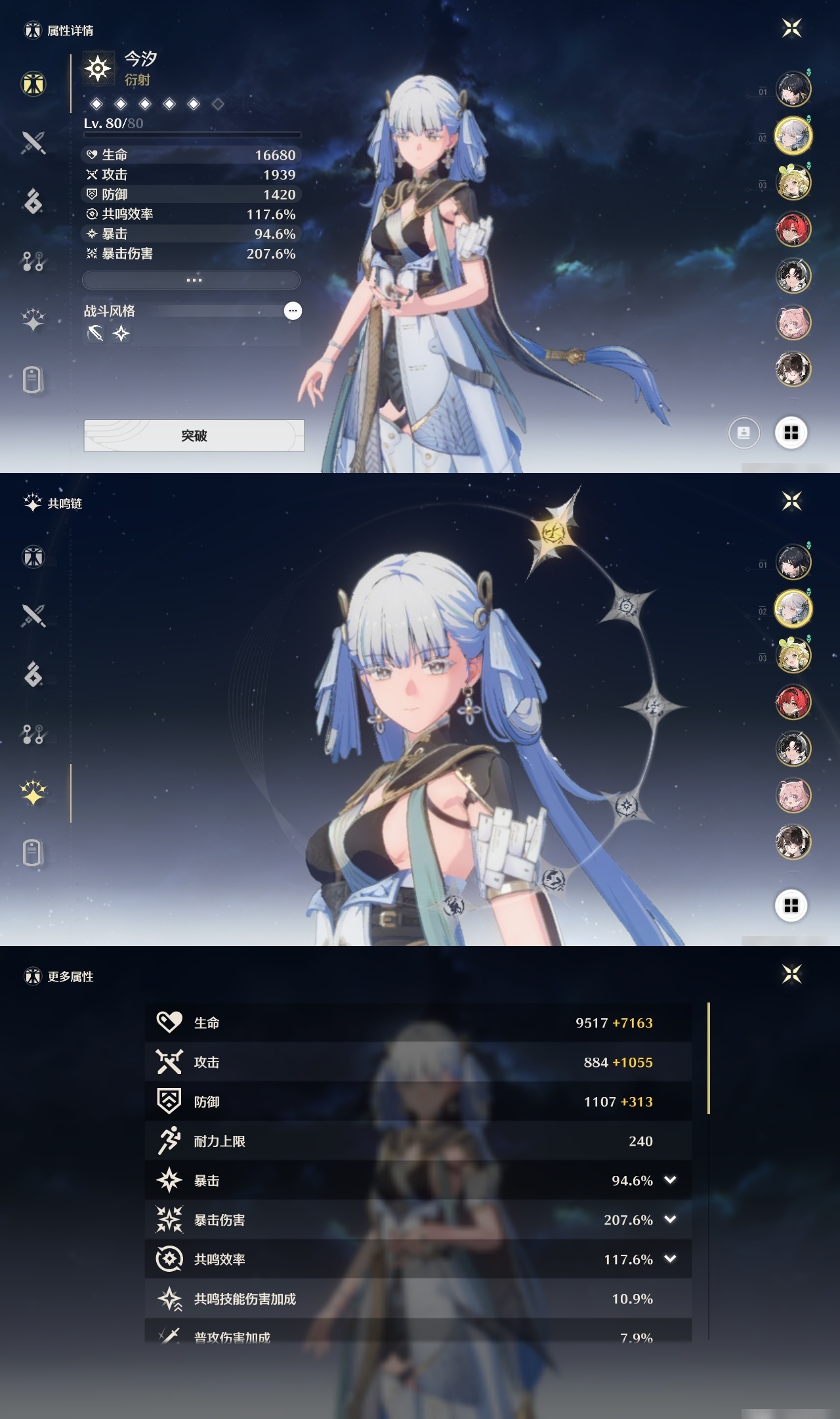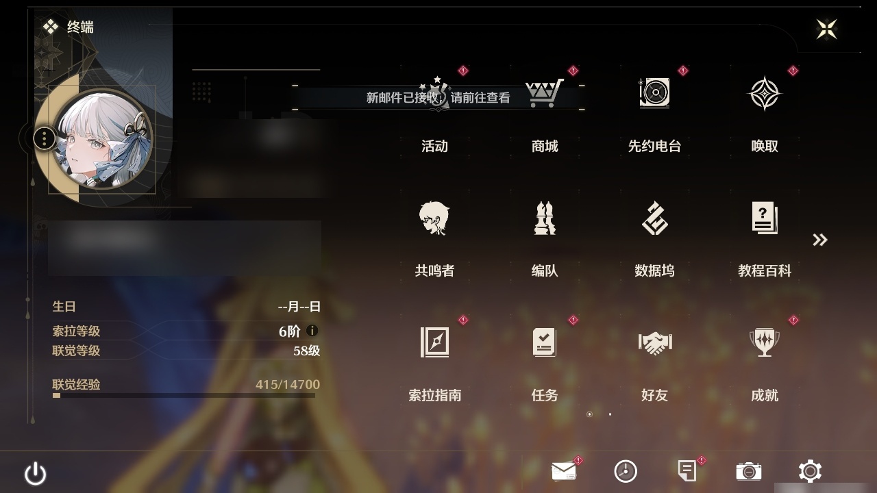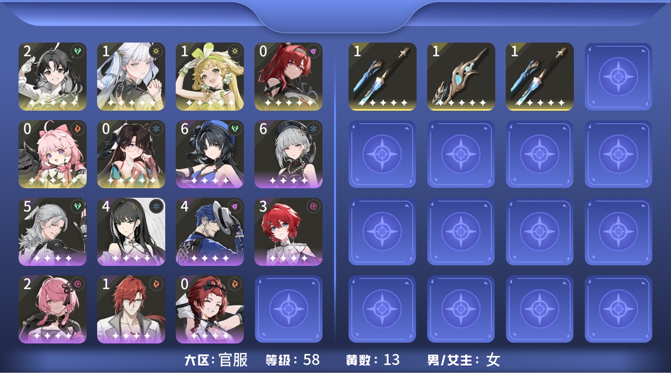 【C2429041450】[4541162]星声数量: 142 索拉等级: 6 总黄数: 13 联觉等级: 58 男/女主: 女主 拥有五星共鸣者: 鉴心,安可,维里奈,吟霖,今汐,折枝 2鸣五星共鸣者: 2鸣鉴心 1鸣五星共鸣者: 1鸣维里奈,1鸣今汐 0鸣五星共鸣者: 0鸣安可,0鸣吟霖,0鸣折枝
