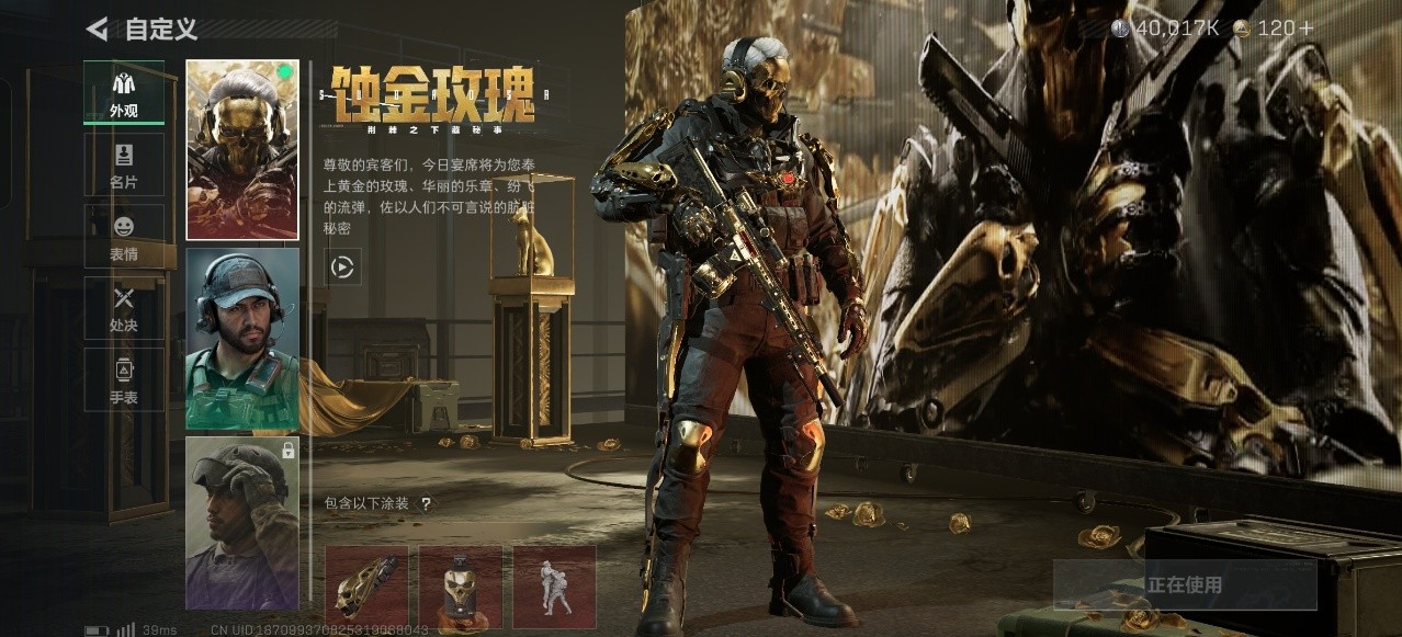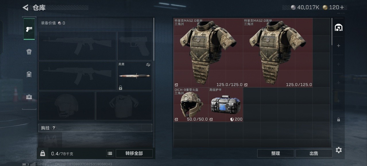 【C2526511060】总资产50M,哈夫币4001W,枪皮数量62,战场等级14级 列兵,行动等级60级 黄金,红狼-蚀金玫瑰,近战-黑鹰,安全箱物品具有时效性请按照游戏内物品为准