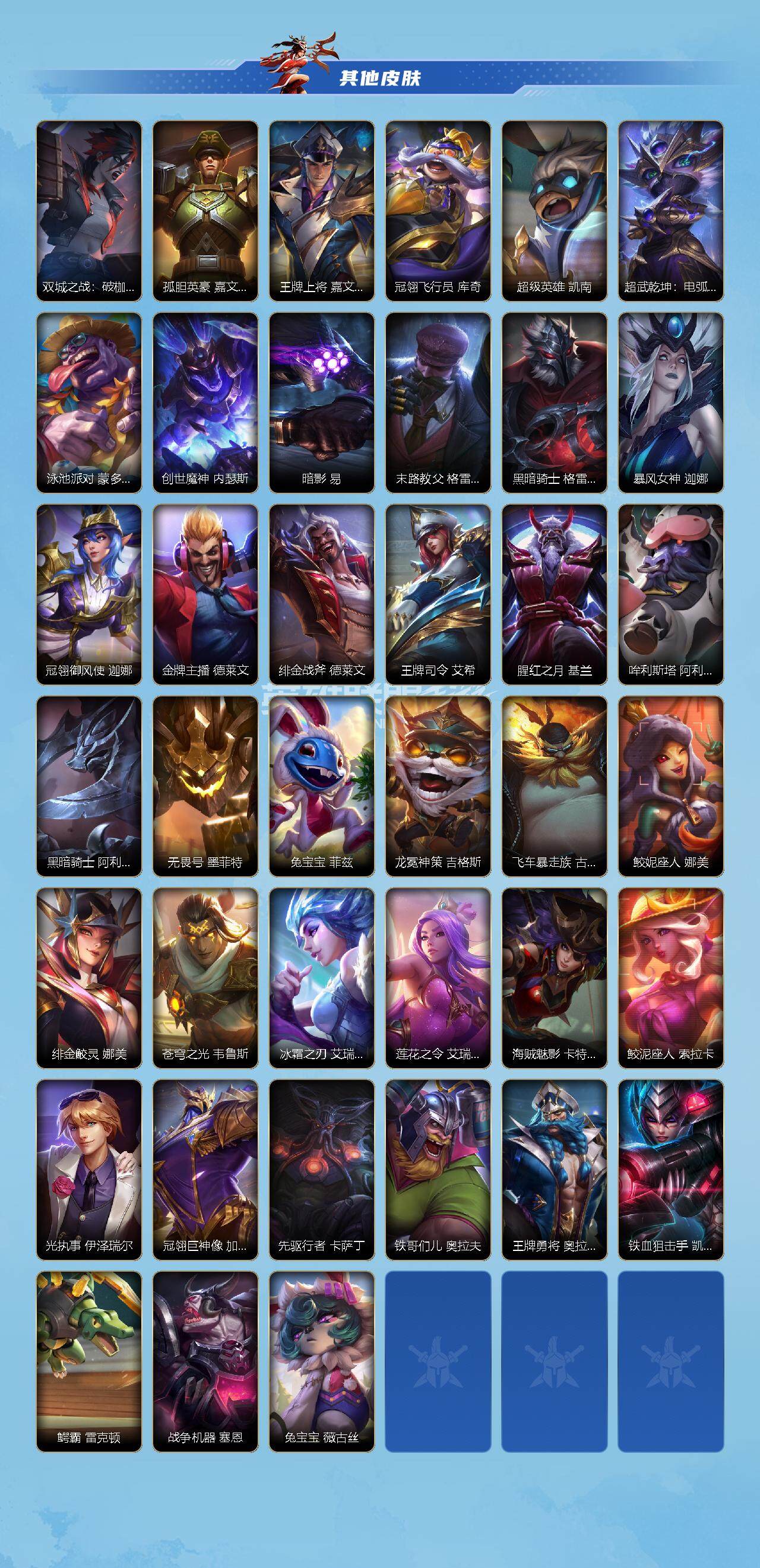 【C2527882260】【LSC99】130英雄/212皮肤/最强王者/夜星流火 金克丝/星之守护者 永绽盛芒 阿狸/至臻 心之钢 永恩/斗魂耀世 德莱文/战斗学院EZ白金学长/创星之灵/斩星魔剑/张辽文远/水晶玫瑰皇子/涂鸦小队莎弥拉/神王盖伦/心之钢 凯隐/源计划: 净化/星之守护者 金克丝/暗星尊/星域游侠卡牌/星之守护者 卡莎/星之守护者 阿卡丽/黑夜使者亚索/斗魂无双 亚索/天煞劫/西部魔影卢锡安/日蚀骑士蕾欧娜/星之守护者 辉/星之守护者 陨/神拳盲僧/神龙尊者 圣龙 李青/炼狱魔犬/灵魂莲华 瑟提/黎明使者 永恩/源计划:林 易/神龙尊者 驭风啸龙/灌篮高手/神王诺手/源计划: 联合/西部天使寒冰/黎明使者瑞文/战斗学院ez/斗魂觉醒 莎弥拉/源计划:泯灭 雷克顿/西部天使赛娜/源计划:毁灭 派克/灵魂莲华锤石/腥红之月剑魔/惊悚派对/摄魂猎手凯隐/霸天战士狮子狗/黎明使者卡尔玛/丧尸 努努和威朗普/地狱行者猴子/探梦奇旅 艾克/无限烈焰/猎龙勇士赵信/霸天异形螳螂/暗星螳螂/猎梦吞噬者 卡兹克/清剿小队金克斯/双城之战:天资 金克丝/烘焙童谣 悠米/圣诞老人/礼物选好了吗? 布隆/源计划: 升华/西部牛仔/灰烬领主/圣龙/电玩女神卡莎/魅惑女巫 莫甘娜/K/DA ALL OUT寡妇/猎龙勇士潘森/清剿小队潘森/未来战士潘森/源计划: 暗影/源计划: 火/源计划:风/源计划: 阴/灵能特工劫/屠龙勇士 凯尔/源计划: 雷/源计划: 山/小恶魔/我,羽饰骑士 崔丝塔娜/大魔王/泳池派对 璐璐/驯龙女巫/破败军团龙女/源计划: 裁决/太空律动“百万调音”/源代码青钢影/魔女青钢影/福牛守护者皇子/地下拳王/电玩上校/奈落之炎 凯南/冰封王子/魅惑女巫女枪/破败军团女枪/源计划: 燃/心之钢 瑟提/灵魂莲华永恩/持胡萝卜的雪人/西部魔影诺手/泳池派对男枪/禁卫机甲/战斗教授男枪/猫狗大战 千珏/暗星 墨菲特/虚空海灵/欧米伽小队 鬼影蛙人/柚子软糖 菲兹/奥术大师吉格斯/电玩勇者 锐雯/源计划:天眼 韦鲁斯/西部天使/源计划: 雄心/死亡善约卡特/睡衣守护者EZ/地狱火加里奥/战斗学院 杰斯/神奇先驱杰斯/战地机甲 厄加特/伯爵 卡萨丁/猎龙勇士奥拉夫/泳池派对女警/灵魂烈焰/黯晶巨鳄 雷克顿/我,怒角/怨之砂/西部魔影锤石/未来战士锤石/盗梦暗影 锤石/源计划:末日 沃里克/宇航员/斗魂觉醒 卡莉丝塔/灵魂莲华莉莉娅/黑夜使者莉莉娅/梦游仙境 莉莉娅/s1光耀之刃/s3光耀之灵/s5绯金魅影/s6绯金丽刃/s7绯金战斧/s8绯金皎灵/s9王牌舰长/s10王牌上将/S11王牌勇将/s11王牌司令/s12龙冕先锋/s13龙冕御盾/s14龙冕神策/s15龙冕异士/s16冠翎飞行员/s17冠翎御风使/S18冠翎巨神像/海上霸主/游侠法师/光明骑士卡尔玛/斗战胜佛/猎龙勇士薇恩/时之砂/哥特女仆/国王/光耀之刃蛮王/秘密特工/龙冕先锋 赵信/死亡绽放/末路狂花/双城之战金克斯/猎龙勇士布隆/龙冕御盾 布隆/龙冕异士 烬/探戈灵魂崔斯特/王牌舰长/刀锋女王/绯金魅影 (可升级)/超武乾坤:暗影 阿卡丽/皇家守卫/绯金丽刃(可升级)/免宝宝布里茨/冰霜烈焰/西部牛仔亚索/偶像歌手/风纪委员/宗师级钓鱼训练师/光明骑士贾克斯/缪斯女神/光耀之灵/冰霜亚龙/女警官/双城之战蔚/双城之战:破枷 蔚/孤胆英豪/王牌上将 嘉文四世/冠翎飞行员 库奇/超级英雄/超武乾坤:电弧/泳池派对蒙多/创世魔神/暗影/末路教父/黑暗骑士男枪/暴风女神/冠翎御风使 迦娜/金牌主播/绯金战斧 (可升级)/王牌司令 艾希/腥红之月 基兰/哞利斯塔/黑暗骑士牛头/无畏号/免宝宝菲兹/龙冕神策 吉格斯/飞车暴走族/鲛妮座人 娜美/绯金鲛灵(可升级)/苍穹之光 韦鲁斯/冰霜之刀/莲花之令刀妹/海贼魅影/蕉泥座人/光执事EZ/冠翎巨神像 加里奥/先驱行者/铁哥们儿奥拉夫/王牌勇将 奥拉夫/铁血狙击手/鳄霸/战争机器/兔宝宝 薇古丝