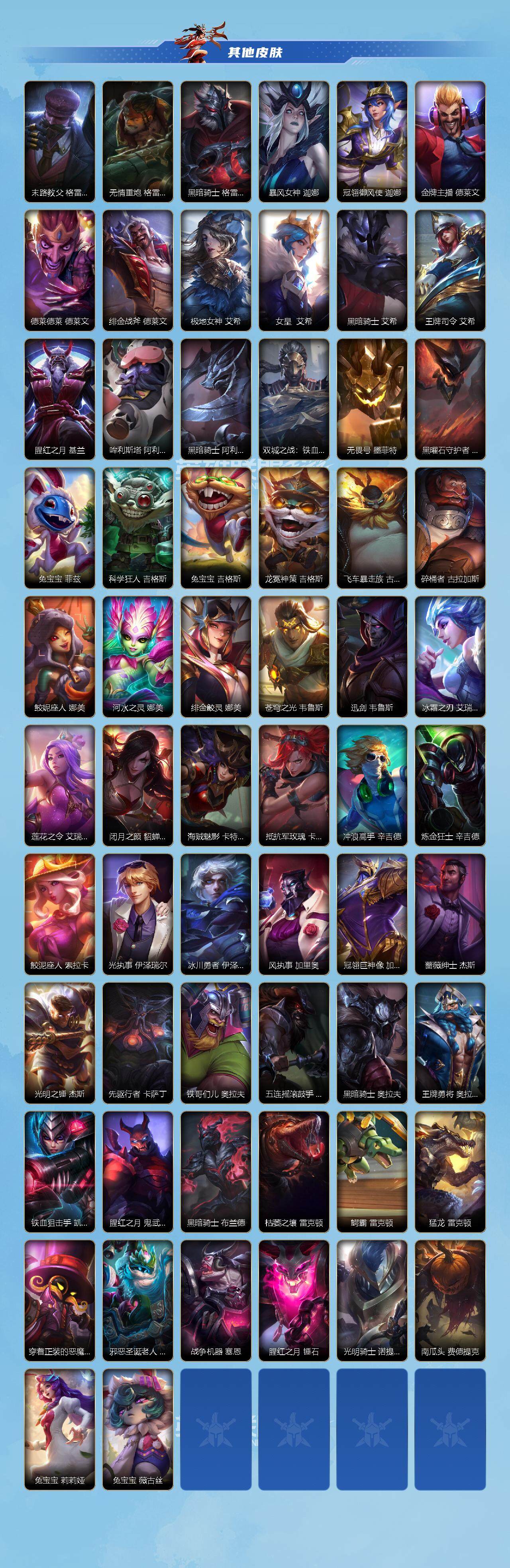 【C2528117173】【LSC101】130英雄/706皮肤/傲世宗师/超武乾坤:虹影 劫/超武乾坤:孤拳 瑟提/超武乾坤:裁决 德莱厄斯/超武乾坤:征服 莎弥拉/冠星耀辰盖伦/臻藏 光影巨翼 亚托克斯/定海神珍:御定乾坤 孙悟空/摄魂使者 薇恩/至臻 斗魂无双 赵信/光谱幻影金克丝/至臻 喵喵魅影 金克丝/夜星流火 金克丝/星域游侠 圣时豪杰 崔斯特/春晖仙子 苍云缥缈 卡莎/灰烬征服者 潘森/KBG 任凭浪起 破浪 菲奥娜/海克斯科技 安妮/臻藏 御风墨影 亚索/渔帆满载 亚索/星之守护者 永绽盛芒 阿狸/臻藏 西部魔影 卢锡安/至臻 水晶玫瑰 格温/海克斯皇子/银鞍玉甲 嘉文四世/黎明使者 破晓之殇 佛耶戈/龙的传人盲僧/乘龙破渊 李青/臻藏 跳跳倩影 厄运小姐/至臻 心之钢 永恩/无与伦比剑圣/至臻 灵魂莲华 易/玄龙绛天 易/海克斯诺手/火焰澎湃 火力全开 格雷福斯/斗魂耀世 德莱文/天陨烈辉 艾希/海克斯牛头/巡游踏云霄! 墨菲特/海克斯炸弹人/至臻 玉剑传说 寒潭夭夭 娜美/至臻 玉剑传说 武剑仙 锐雯/满弓镇魂 箭无虚发 韦鲁斯/至臻 斗魂无双 艾瑞莉娅/战斗学院EZ白金学长/蝶恋春女警/涂鸦小队 斑斓艺术 布兰德/海克斯科技 雷克顿/最终BOSS维迦/灰烬骑士 派克/地底世界 崔斯特/广寒仙子嫦娥/穿星魔锋/创星之灵/掠星魔刃卡萨丁/御星魔矢/斩星魔剑/养蜂人/鸡里奥/钢铁军团拉克丝/赵云子龙/冬季仙境发条/耀星女神拉克丝/邪恶圣诞老人 维迦/烈焰美人 薇恩/神龙烈焰 金克丝/虎痴之拳/闭月之颜貂蝉/张辽文远/水晶玫瑰皇子/美猴王/定海神针:御定乾坤 孙悟空/水晶玫瑰拉克丝/水晶玫瑰 伊泽瑞尔/水晶玫瑰阿卡丽/水晶玫瑰永恩/水晶玫瑰蔚/水晶玫瑰琴女/关羽云长/水晶玫瑰 锐雯/涂鸦小队莎弥拉/涂鸦小队 金克丝/涂鸦小队艾克/山海绘卷 烬/山海绘卷 诺提勒斯/山海绘卷 亚托克斯/山海绘卷 沃利贝尔/吕布奉先/神王盖伦/光影巨翼 亚托克斯/海魔至尊 亚托克斯/暗星女王拉克丝/心之钢 凯隐/源计划: 净化/光明哨兵薇恩/北极星神 黛安娜/黎明使者 赵信/星之守护者 金克丝/暗星尊/星域游侠卡牌/星之守护者 卡莎/水晶玫瑰 卡莎/至尊魔女 莫甘娜/春晖神女 莫甘娜/魔女 伊芙琳/星之守护者 阿卡丽/幻灵特战队长 菲奥娜/太空律动 “猫猫”布里和里茨 布里茨/K/DA ALLOUT萨勒芬妮/水晶玫瑰 萨勒芬妮/碧空长歌 萨勒芬妮/源计划:超体 莫德凯撒/黑夜使者亚索/神龙尊者 昼日真龙 亚索/斗魂无双 亚索/御风墨影 亚索/星之守护者阿狸/灵魂莲华 阿狸/天煞劫/星域武神 贾克斯/西部魔影卢锡安/斗魂无双 卢锡安/日蚀骑士蕾欧娜/月蚀骑士蕾欧娜/西部魔影 大小姐 蕾欧娜/驯龙炮手/欧米伽小队 幽灵特工/星之守护者 辉/星之守护者 落/翩翩绣蕊 霞/星之守护者 陨/星之守护者 熠/剪胜裁春格温/淳和墨意 嘉文四世/霸天原祖 沃利贝尔/神拳盲僧/神龙尊者 圣龙 李青/律政大亨/炼狱魔犬/福牛守护者女枪/跳跳倩影 厄运小姐/光电璀璨 泽丽/灵魂莲华 瑟提/奋武昭威 瑟提/黎明使者 永恩/源计划:林 易/神龙尊者 驭风啸龙/灌篮高手/神王诺手/光明哨兵格雷福斯/女主播风女/黎明使者 德莱文/源计划: 联合/西部天使寒冰/花车开起来咯! 墨菲特/黎明使者瑞文/水晶玫瑰EZ/战斗学院ez/地狱之门卫士/双城之战:殊途 杰斯/斗魂觉醒 莎弥拉/未来战士 凯特琳/战斗学院 凯特琳/源计划:泯灭 雷克顿/西部天使赛娜/源计划:毁灭 派克/霸天零式 赛恩/驯龙学者 黑默丁格/凝辉黯刃 泰隆/暗星 锤石/灵魂莲华锤石/钢铁军团/斗魂无双 盖伦/整装!旋木骑士 盖伦/霸天剑魔 亚托克斯/腥红之月剑魔/星之守护者拉克丝/睡衣守护者拉克丝/战斗学院拉克丝/小鹿乱撞 拉克丝/桃映暖春 拉克丝/惊悚派对/殇之机器人/地狱火阿木木/劲道美味 阿木木/摄魂猎手凯隐/黑夜使者 凯隐/霸天战士狮子狗/雷喵喵尔/暗星 卡尔玛/黎明使者卡尔玛/星域先知(可升级)/神龙尊者 宁静之龙 卡尔玛/丧尸 努努和威朗普/太空律动 “舞林双子” 努努和威朗普/小蜜蜂 努努和威朗普/地狱行者猴子/斗魂无双 孙悟空/烈焰美人薇恩/幻灵战斗蝠 薇恩/水晶玫瑰 薇恩/探梦奇旅 艾克/野火首领 艾克/幻忆随想曲 艾克/暗星发条/泳池派对发条/星之守护者发条/腥红之月皎月/无限烈焰/烈焰仙子皎月/光明哨兵戴安娜/平湖秋月 黛安娜/焕影迎春佐伊/星之守护者 佐伊/恶魔之刃/黑夜使者 泰达米尔/腥红之月 泰达米尔/沧浪破云 泰达米尔/端劲墨印 泰达米尔/猎龙勇士赵信/猛虎下山/斗魂无双 赵信/霸天异形螳螂/暗星螳螂/猎梦吞噬者 卡兹克/清剿小队金克斯/涂鸦小队金克斯/喵喵魅影金克丝/双城之战:天资 金克丝/漫心绮想曲 金克丝/西部魔影 赫卡里姆/电玩战魂 赫卡里姆/北极星守护者 赫卡里姆/战斗校长猫咪/觅心猫猫/烘焙童谣 悠米/水晶玫瑰 悠米/末路管家/猛虎布隆/圣诞老人/礼物选好了吗? 布隆/源计划: 升华/西部牛仔/腥红之月烬/灭迹行者 烬/斗魂觉醒 烬/青花瓷 烬/霸天龙神龙王/灰烬领主/圣龙/东恒之曜 奥瑞利安·索尔/灵魂莲华 辛德拉/星之守护者 辛德拉/腥红之月卡牌/未来战士卡牌/怪诞童话 崔斯特/弹幕天使/电玩女神卡莎/K/DA ALL OUT卡莎/神龙尊者玉境灵龙/春晖仙子 卡莎/斗魂无双 尼菈/魔女 尼菈/魅惑女巫 莫甘娜/玉剑传说 苍鸾 莫甘娜/NOVA天赋觉醒莫甘娜/K/DA ALL OUT寡妇/福纳康宁 伊芙琳/猎龙勇士潘森/清剿小队潘森/未来战士潘森/西宙之晖 潘森/铁血女忍/K/DA ALL OUT阿