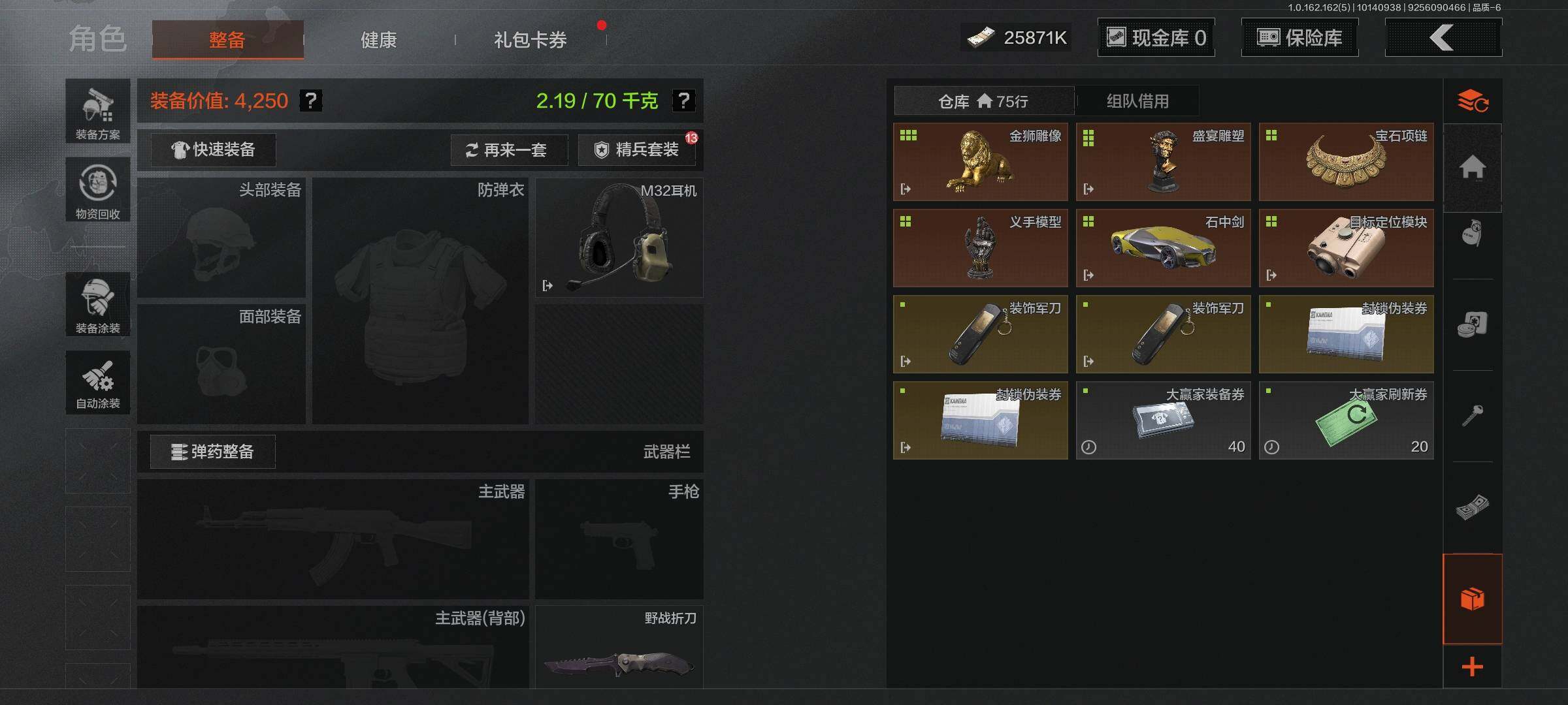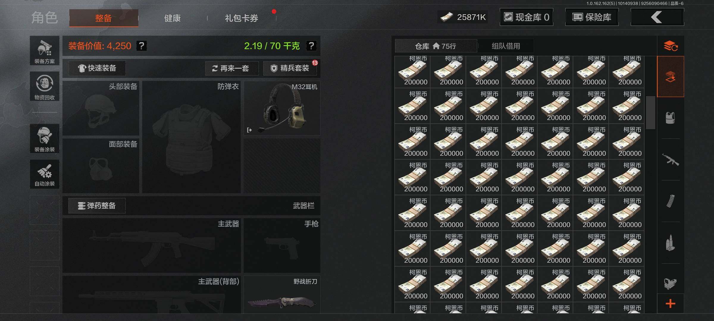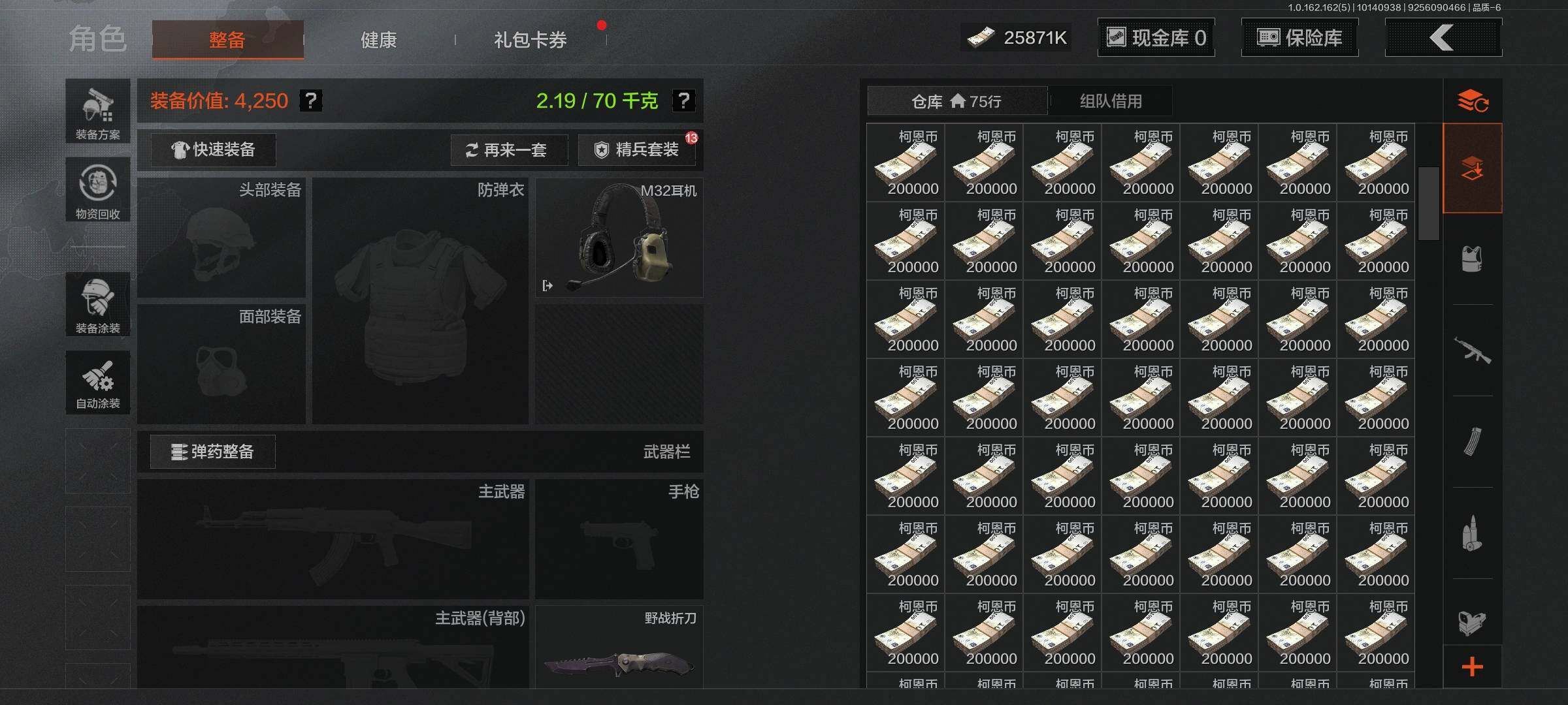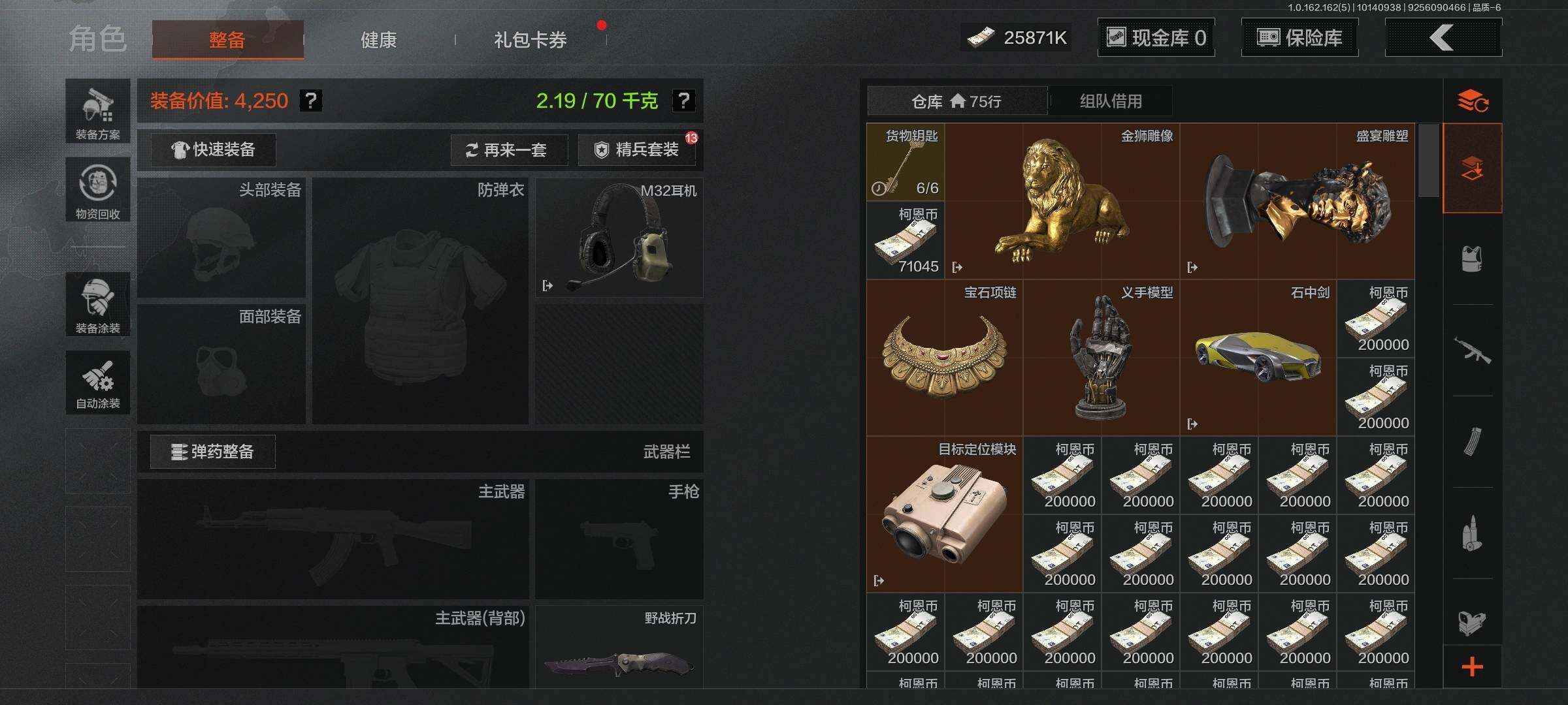【C2528626170】【AQN1311】等级:30/段位:精英/仓库价值(百万):28.2/柯恩币:25871/工兵铲/野战折刀
