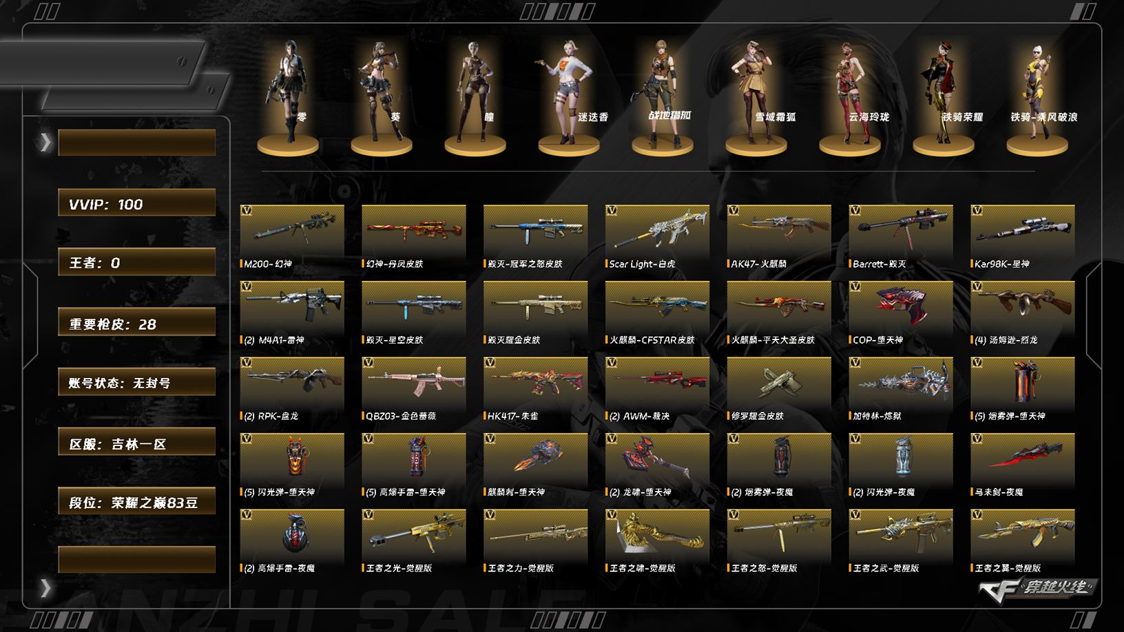 【C2528806843】[12694072]LC6852/北部/吉林一区/可排位/98v/幻神/幻神丹凤/星神/6修罗/白虎/QBZ金色蔷薇/朱雀/机械迷城穹宇/COP堕天神/【角色】/葵/零/迷迭香/瞳/战地猎狐/雪域霜狐/云海玲珑/【音效卡/雪域霜狐怀旧音效卡/黑骑士音效卡/毁灭音效卡/】/【枪皮】/火麒麟雷神/修罗耀金/毁灭耀金/毁灭冠军之怒/王者武器/王者之翼/王者之魄/王者之武/王者之光/王者之力/王者之怒/王者之啸/炫金武器/炫金雷神/炫金骑士/炫金毁灭/炫金天龙/【小人枪/巴雷特零水下丽影/KAC锯式机枪黑桃战神/M37葵/】/永久AC/找回包赔