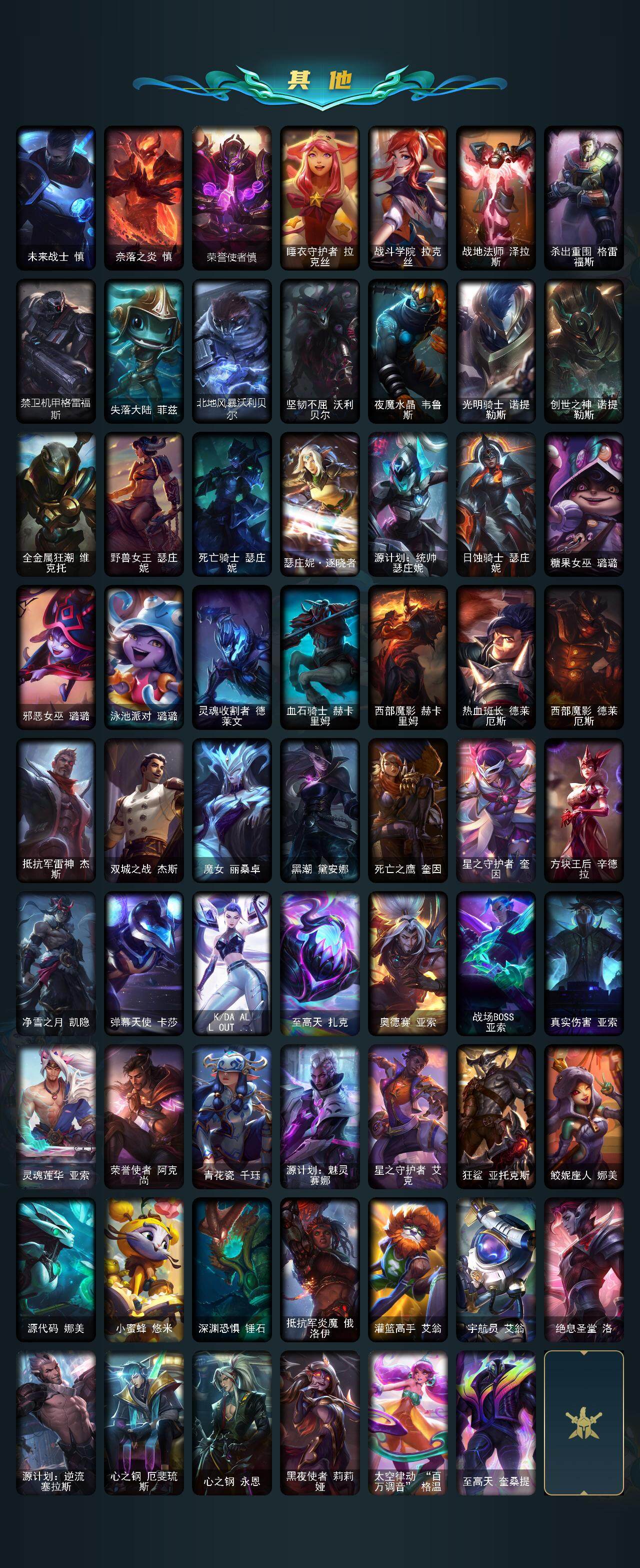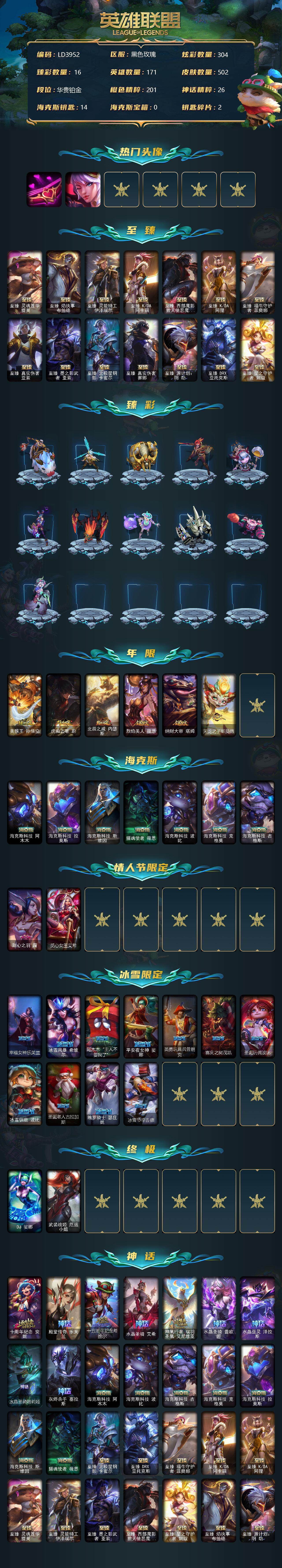【C2528921691】【LD3952】171英雄/502皮肤/2终极/30神话/59限定/16臻彩/304炫彩/57传说/121史诗/铂金/爱情之歌/觅心之翼奎因/至臻灵魂莲华提莫/至臻焰执事布兰德/至臻灵能特工伊泽瑞尔/至臻K/DA阿卡丽/至臻西部魔影猎天使恶魔泰隆/至臻K/DA阿狸/至臻福牛守护者菲奥娜/至臻真实伤害亚索/墨影亚索至臻/至臻北极星钢影卡蜜尔/至臻真实伤害赛娜/至臻源计划:阴劫/至臻DRX亚托克斯/至臻星之守护者妮蔻/天龙之子卡莎飞龙乘云/无畏骑士瑟庄妮赤子初心/冰霜之刃艾瑞莉娅炫金/墨之影武者亚索金墨耀影/征服者阿利斯塔炫金/黎明使者锐雯黑夜使者/咖啡甜心璐璐焦糖布丁/星之守护者金克丝黑洞/山海绘卷科加斯朱红/泳池派对奥莉安娜优雅珠光鲸/霸天巨兽雪崩墨菲特/灵魂莲华亚索霜见之时/可爱可爱粉红红布里茨/殿堂传奇乐芙兰登神/魔女阿卡丽虚荣/净雪之月莫甘娜冬虹/美猴王孙悟空/虎痴之拳蔚/北辰之威内瑟斯/烈焰美人薇恩/纳财大帝塔姆/天龙之子斯莫德/海克斯科技阿木木/海克斯科技拉莫斯/海克斯科技斯维因/摄魂使者薇恩/海克斯科技波比/海克斯科技克格莫/海克斯科技吉格斯/甜心之羽霞/觅心女皇艾希/幸福女神乐芙兰/冰雪风暴希维尔/阿木木“主人不要我了”/平安夜女神娑娜/英勇玩具兵普朗克/喜庆之树茂凯/圣诞玩偶波比/冰雪驯鹿波比/圣诞老人古拉加斯/魄罗骑士瑟庄妮/冰雪节辛吉德/DJ娑娜/武装战姬厄运小姐/十周年纪念安妮/殿堂传奇乐芙兰/十五周年纪念希维尔/水晶圣骑艾希/神凰行者瑞羽圣凰艾尼维亚/水晶圣骑蕾欧娜/水晶巫灵泽拉斯/水晶圣骑塔莉娅/灰烬杀手塞拉斯/至臻源计划阴劫/冠军典狱长锤石/Fnatic古拉加斯/Fnatic嘉文四世/暗杀星努努和威朗普/SKTT1劫/SKTT1婕拉/SSW泰隆/SKTT1瑞兹/SKTT1辛德拉/SSG嘉文四世/FPX薇恩/玉剑传说无影/暗裔英雄盖伦/胜利之树茂凯/胜利女神奥莉安娜/胜利凤凰艾尼维亚/胜利之王泰达米尔/胜利巨口克格莫/胜利女神娑娜/胜利剑圣易/胜利之运崔斯特/南瓜头费德提克/灵魂收割者索拉卡/南瓜头王子阿木木/鬼影森森茂凯/魅惑女巫崔丝塔娜/泳池派对奥莉安娜/泳池派对格雷福斯/泳池派对普朗克/泳池派对塔里克/泳池派对塔莉垭/机械迷城加里奥/蒙多蒙多/女猎手希维尔/暗影沃里克/波比的巧克力工坊/勇者阿狸/都铎王朝图奇/防暴士兵格雷福斯/防暴天使凯尔/地狱之门卫士加里奥/魔幻卡牌崔斯特/战地机甲厄加特/血石领主弗拉基米尔/大天使长米迦勒凯尔/战场女武神凯尔/钢铁之翼凯尔/源计划林易/恶魔男爵瑞兹/日蚀骑士希维尔/约德尔国队长提莫/欧米伽小队幽灵特工/驯龙炮手崔丝塔娜/合金巨兽努努和威朗普/西部天使艾希/恶魔之刃泰达米尔/鬼魂新娘莫甘娜/电玩女神娑娜/女主播迦娜/红色男爵库奇/最终BOSS维迦/未来战士凯特琳/陆地王者4WD布里茨/苹果机器人布里茨/冰川巨兽墨菲特/女帝卡特琳娜/神拳李青/源计划净化薇恩/光明哨兵薇恩/第三类接触黑默丁格/炼狱魔犬内瑟斯/腥红之月鬼武姬阿卡丽/死亡骑士盖伦/钢铁军团盖伦/神王盖伦/黎明使者锐雯/枯萎之壤泽拉斯/冰霜亚龙希瓦娜/焰尾妖狐阿狸/偶像歌手阿狸/符文战熊沃利贝尔/宇航员诺提勒斯/泳池派对吉格斯/金牌主播德莱文/霸天异形卡兹克/灌篮高手德莱厄斯/神王德莱厄斯/黑夜使者亚索/神龙尊者昼日真龙亚索/神龙尊者夜月幻龙亚索/星之守护者金克丝/西部魔影卢锡安/天煞劫/真实伤害艾克/暗星锤石/灵魂莲华锤石/黎明使者永恩/安伯斯与提妮/科学怪熊的新娘安妮/绞肉机角斗士赵信/翼骑统领赵信/铁钩船长费德提克/重生之沙费德提克/天人合一易/战场公主希维尔/源代码索拉卡/火箭达人崔丝塔娜/火牙狼人沃里克/法国皇室厄运小姐/女船长厄运小姐/紫晶射手艾希/国王泰达米尔/百夫长贾克斯/刀锋女王莫甘娜/炼金狂士辛吉德/死神卡尔萨斯/侏罗纪化石科加斯/小小骑士阿木木/殇之机器人阿木木/熔火之心拉莫斯/贵族血统萨科/飞越疯人院萨科/战争血统蒙多/五杀摇滚键盘手娑娜/夜刃艾瑞莉娅/海克斯科技迦娜/寒冰女皇迦娜/恐惧新星普朗克/穿着正装的恶魔维迦/北领前线斯维因/抵抗军天使凯特琳/古墓丽影凯特琳/霸天巨兽墨菲特/海贼魅影卡特琳娜/暗夜猫女卡特琳娜/前线指挥官卡特琳娜/蓝焰梦魔魔腾/枯萎之壤雷克顿/龙骑统帅嘉文四世/凯旋英雄嘉文四世/暗星嘉文四世/死亡绽放伊莉丝/腥红之月伊莉丝/灵骨工匠奥莉安娜/冰晶之核布兰德/灵魂烈焰布兰德/至高之拳李青/深海妖姬卡西奥佩娅/战地机甲斯卡纳/生化博士黑默丁格/法老王朝内瑟斯/铁血猎手奈德丽/四神之力乌迪尔/血色之锤波比/飞车暴走族古拉加斯/大夏武士潘森/面包之王潘森/冰川勇者伊泽瑞尔/死亡领主莫德凯撒/实习护士阿卡丽/银色之牙阿卡丽/铁血女忍阿卡丽/铁甲雄心盖伦/孤高游侠盖伦/至高君王玛尔扎哈/腥红之月泰隆/刺客信条锐雯/血色精锐锐雯/深海怪鱼克格莫/侏罗纪化石克格莫/战地机甲克格莫/腥红之月鬼武者慎/战国大名慎/沙之守护泽拉斯/钢之逆鳞希瓦娜/银河魔装机神希瓦娜/暗影妖狐阿狸/黑帮教父格雷福斯/海牛猎手菲兹/银河魔装机神菲兹/白色死神韦鲁斯/暗星韦鲁斯/皇家守卫菲奥娜/奥术大师吉格斯/驯龙女巫璐璐/永恒之森赫卡里姆/暗星卡兹克/生化骑士德莱厄斯/全金属狂潮杰斯/源代码丽桑卓/暗黑女武神黛安娜/血羽凤凰奎因/勇敢的心奎因/仲裁圣女辛德