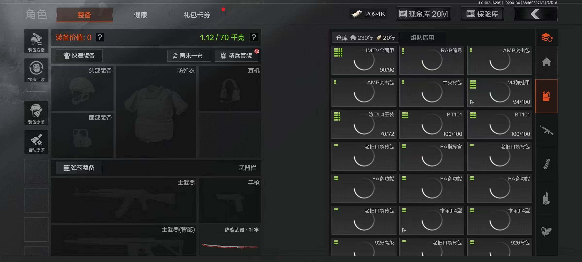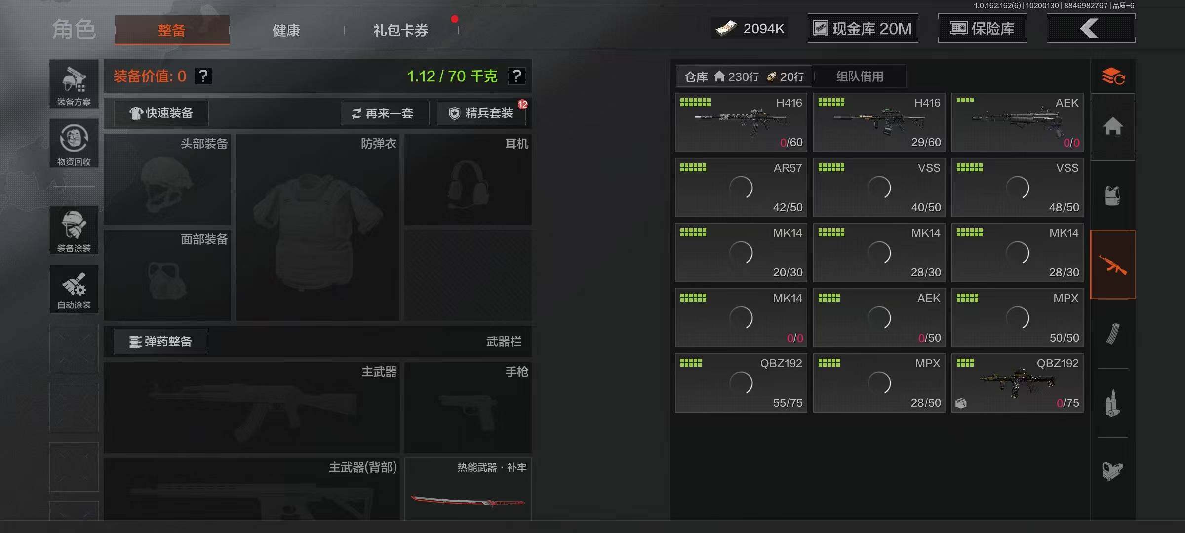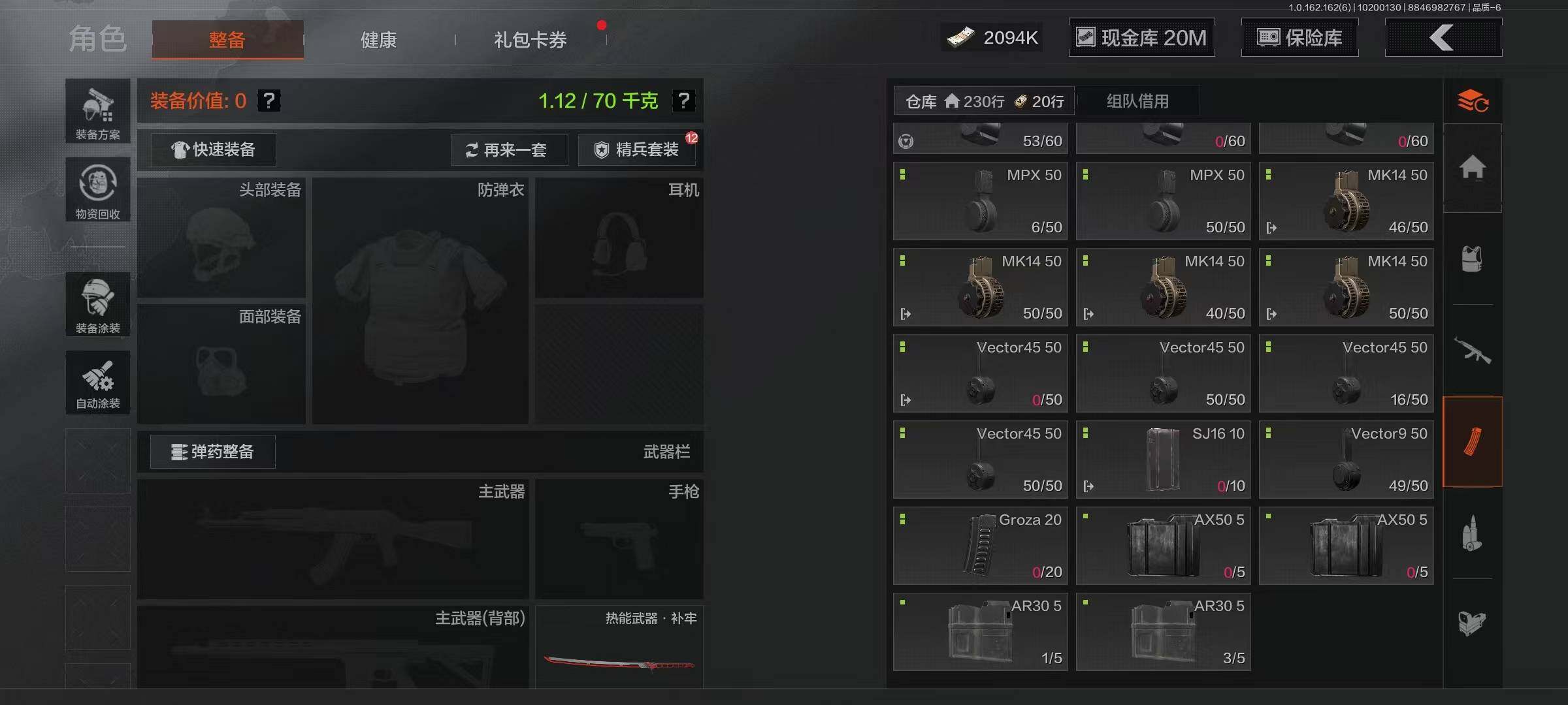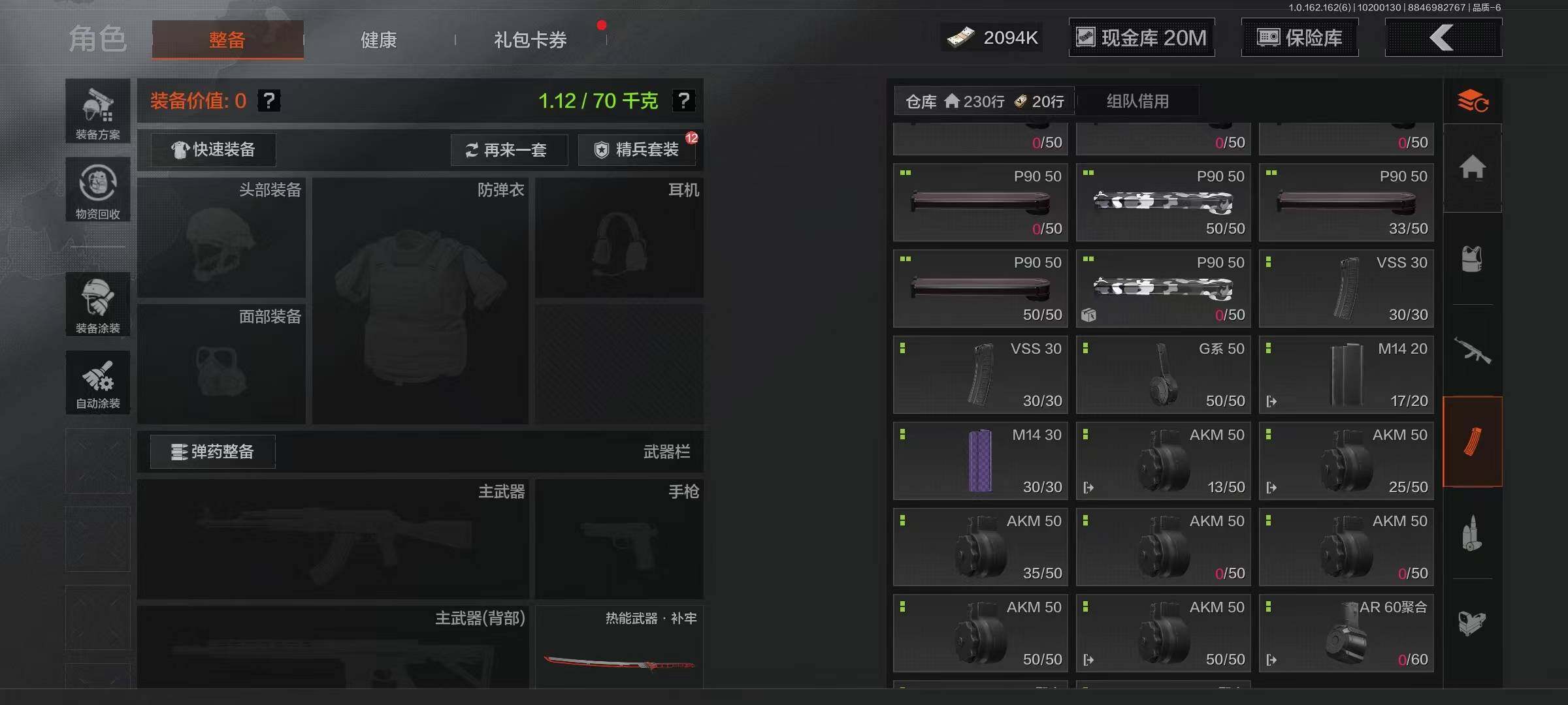 【C2529286675】【AQN1341】等级:30/段位:王牌/仓库价值(百万):54.5/柯恩币:2094/工兵铲/来战·开山刀/热能武器·补牢
