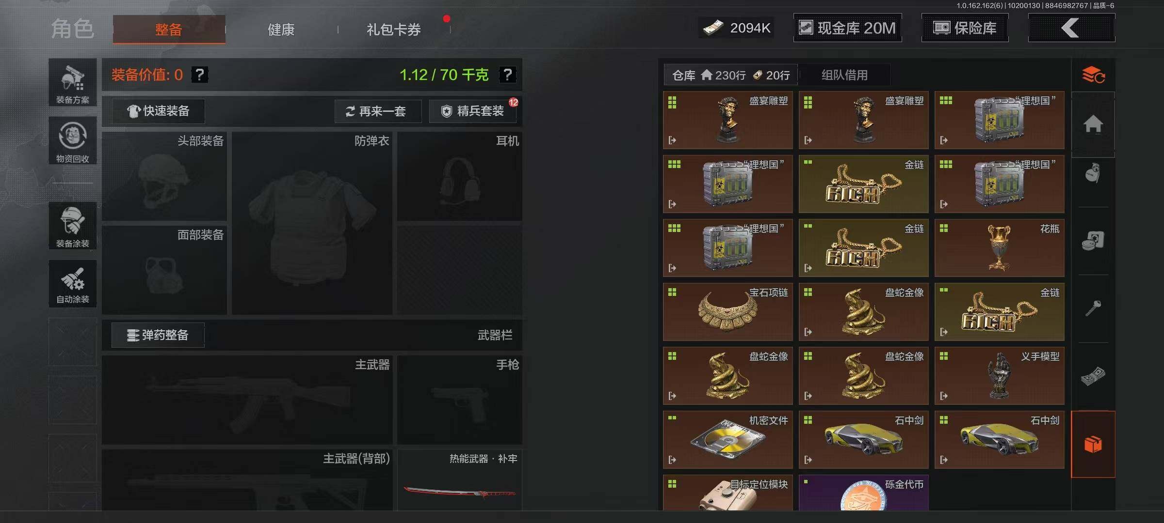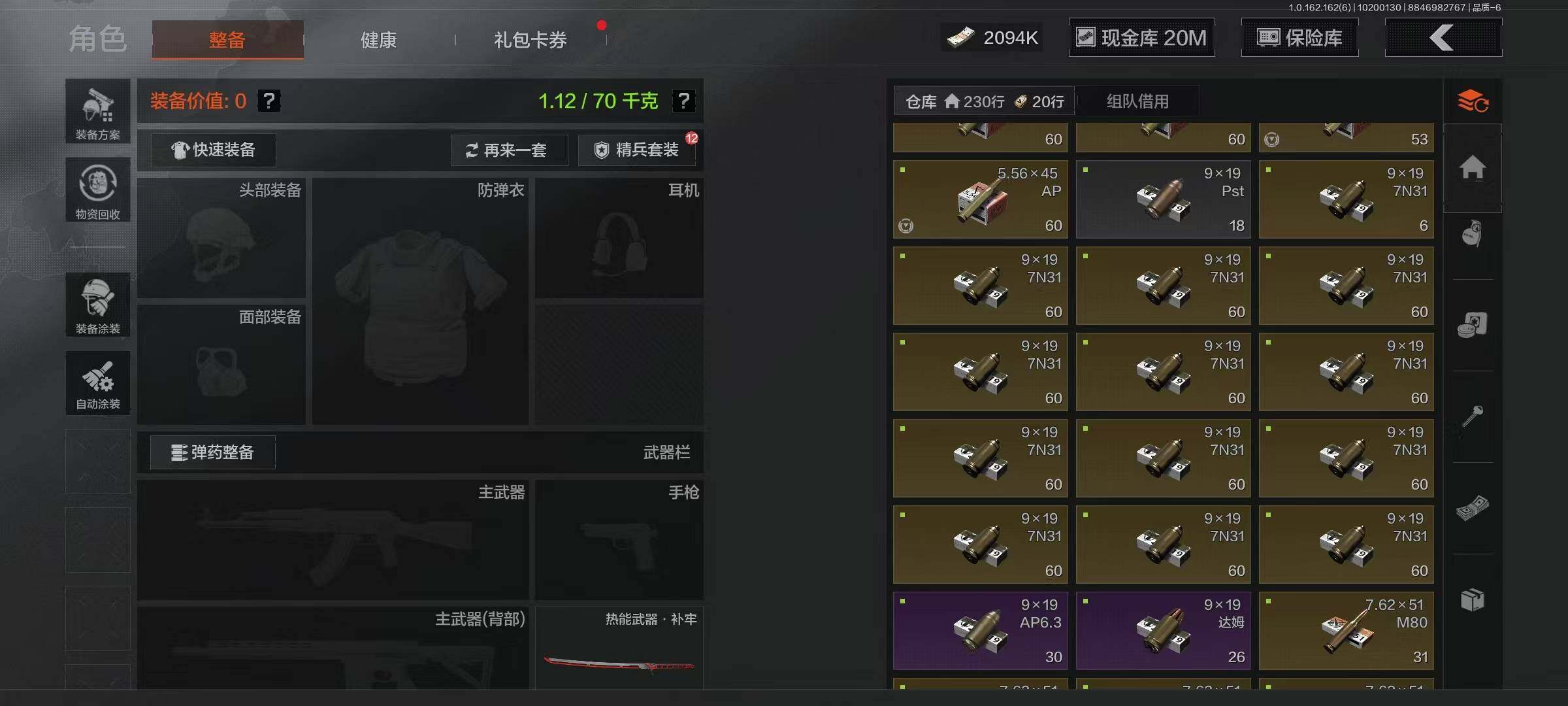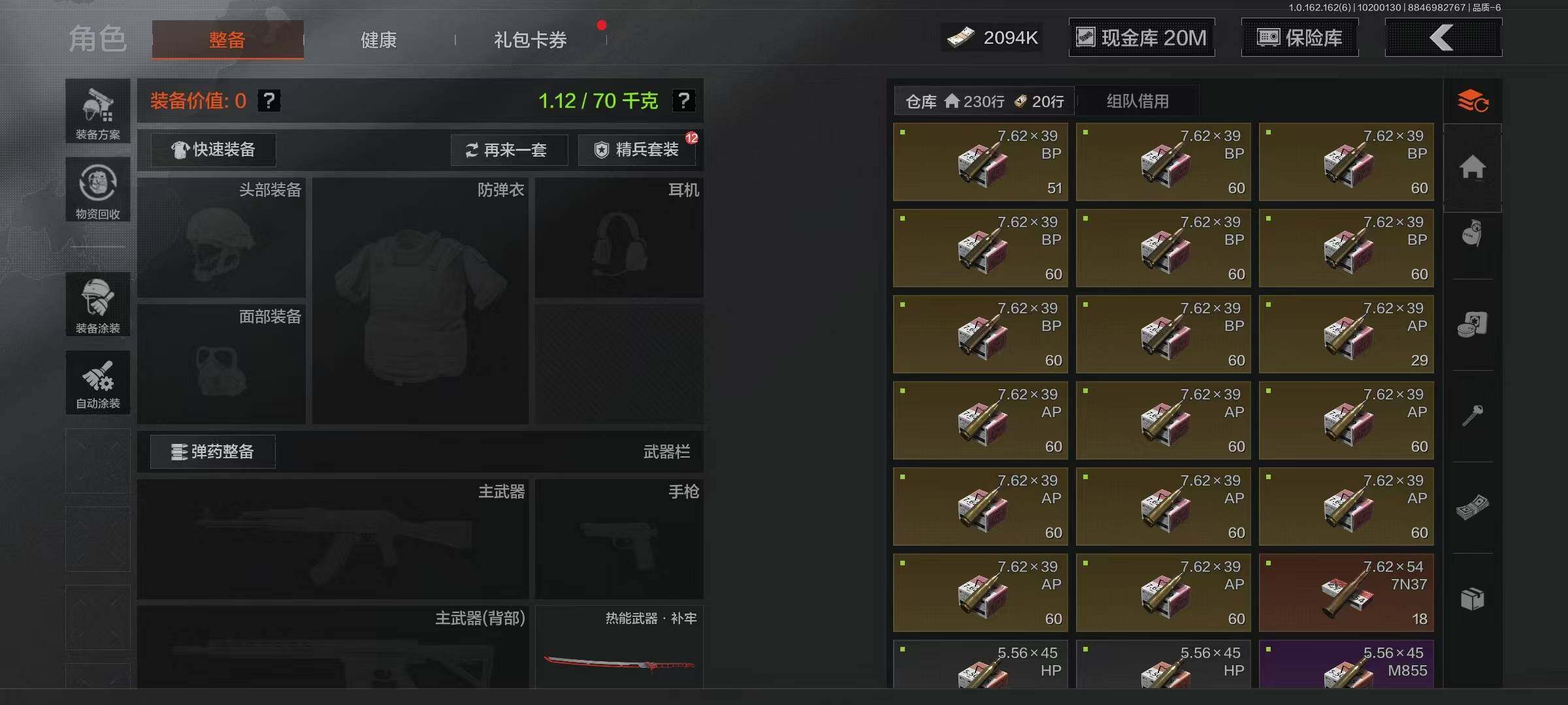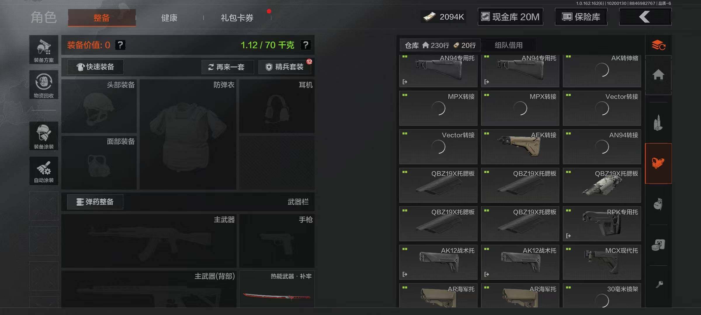 【C2529286675】【AQN1341】等级:30/段位:王牌/仓库价值(百万):54.5/柯恩币:2094/工兵铲/来战·开山刀/热能武器·补牢