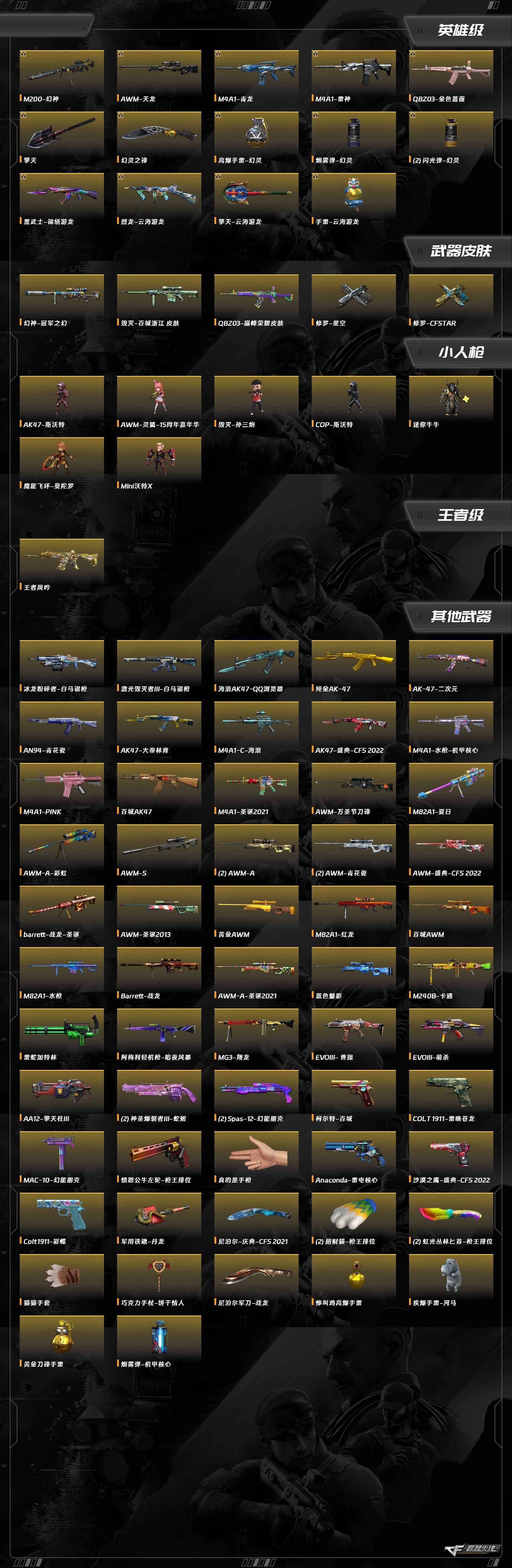 擎天-云海游龙,M200-幻神,M4A1-雷神,M4A1-青龙,AWM-天龙,QBZ03-金色蔷薇,擎天,幻灵之锋