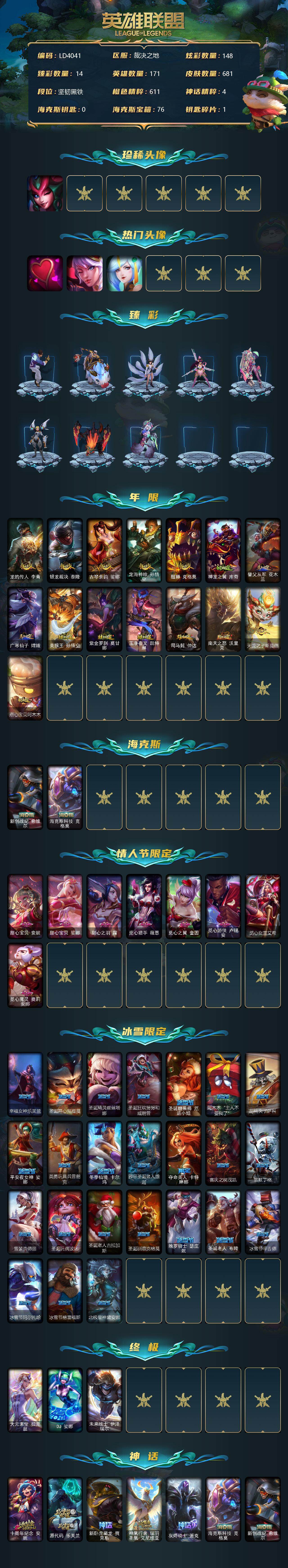 【C2529717686】【LD4041】171英雄/681皮肤/3终极/7神话/149限定/14臻彩/148炫彩/62传说/170史诗/未定级账号等级:471/锦鲤娜美头像/爱意绵绵/觅心之翼奎因/春晖神女/龙的传人李青跃龙在渊/天龙之子卡莎飞龙乘云/无畏骑士瑟庄妮赤子初心/墨之影武者亚索金墨耀影/偶像歌手阿狸极地雪莲/玉剑传说舞剑仙承影/幻灵战斗猫金克丝梦幻强袭/弹幕天使卡莎炽天使公正/山海绘卷科加斯朱红/魔女阿卡丽虚荣/净雪之月莫甘娜冬虹/幻灵战斗兔阿萝拉梦幻强袭/红莲之刃锐雯/心之钢伊泽瑞尔天纵才华/龙的传人李青/银龙裁决泰隆/古琴余韵娑娜/定海神针孙悟空/醒狮克格莫/神龙之翼库奇/替父从军花木兰/广寒仙子嫦娥/美猴王孙悟空/紫金罗刹莫甘娜/玉净夜叉凯特琳/司马懿仲达/南天之怒沃里克/天龙之子斯莫德/点心宝贝阿木木/新创战纪希维尔/海克斯科技克格莫/甜心宝贝安妮/甜心宝贝娑娜/甜心之羽霞/觅心猎手薇恩/觅心游侠卢锡安/觅心女皇艾希/觅心魔灵奥莉安娜/幸福女神乐芙兰/圣诞开心鬼提莫/圣诞精灵崔丝塔娜/圣诞狂欢努努和威朗普/圣诞糖果棒厄运小姐/阿木木“主人不要我了”/胡桃夹子萨科/平安夜女神娑娜/英勇玩具兵普朗克/冬季仙境卡尔玛/邪恶圣诞老人维迦/夺命美人卡特琳娜/喜庆之树茂凯/雪默丁格/雪装奈德丽/圣诞玩偶波比/圣诞老人古拉加斯/圣诞驯鹿克格莫/魄罗骑士瑟庄妮/圣诞老人布隆/冰雪节辛吉德/冰雪节玛尔扎哈/冰雪节格雷福斯/北极星神黛安娜/大元素使拉克丝/DJ娑娜/未来战士伊泽瑞尔/十周年纪念安妮/源代码乐芙兰/新卧虎藏龙贾克斯/神凰行者瑞羽圣凰艾尼维亚/灰烬骑士派克/钢铁军团拉克丝/银白审判凯尔/奥斯曼大帝泰达米尔/生化领主泰达米尔/庆典女皇艾尼维亚/卧虎藏龙贾克斯/舞会公主安妮/诺斯费拉图弗拉基米尔/地底世界崔斯特/冠军典狱长锤石/冠军之血希瓦娜/冠军之矛卡莉丝塔/冠军之刃锐雯2016/冠军之隐劫/冠军之箭艾希/Fnatic古拉加斯/Fnatic迦娜/Fnatic嘉文四世/Fnatic卡尔萨斯/Fnatic库奇/暗杀星奥莉安娜/暗杀星蒙多/暗杀星努努和威朗普/暗杀星慎/暗杀星伊泽瑞尔/SKTT1劫/SKTT1婕拉/SKTT1李青/SKTT1薇恩/SSW辛吉德/SSW图奇/SSW泰隆/SSW雷恩加尔/SSW锤石/SKTT1阿利斯塔/SKTT1卡莉丝塔/SKTT1伊莉丝/SKTT1烬/SSG伊泽瑞尔/iG卡莎/FPX李青/安妮梦游仙境/勇敢的心德莱厄斯/电玩女神厄运小姐/电玩女神阿狸/星之守护者伊泽瑞尔/暗裔英雄盖伦/胜利枪神格雷福斯/胜利女神奥莉安娜/胜利之剑亚托克斯/胜利枪神卢锡安/胜利机器人布里茨/胜利凤凰艾尼维亚/胜利之王泰达米尔/胜利巨口克格莫/胜利女神娑娜/胜利之运崔斯特/海贼瑞兹/南瓜头费德提克/鬼影重重魔腾/鬼影森森茂凯/无头骑士赫卡里姆/死亡誓约劫/魅惑女巫莫甘娜/魅惑女巫奈德丽/糖果使徒费德提克/泳池派对厄运小姐/泳池派对菲奥娜/泳池派对格雷福斯/泳池派对凯特琳/泳池派对蕾欧娜/泳池派对李青/泳池派对普朗克/泳池派对塔里克/机械迷城加里奥/蓝色忧郁崔斯特/蒙多蒙多/女猎手希维尔/外星装甲库奇/暗影沃里克/星之守护者芮尔/野兽猎人德莱文/野兽猎人瑟庄妮/野兽猎人泰达米尔/波比的巧克力工坊/创战纪希维尔/勇者阿狸/勇者奈德丽/电玩战魂赫卡里姆/都铎王朝图奇/斗魂觉醒佛耶戈/御星魔矢艾希/钢铁之翼艾尼维亚/红桃杰克崔斯特/征服者卡尔玛/防暴机器人布里茨/防暴士兵格雷福斯/防暴士兵辛吉德/防暴天使凯尔/惊悚派对费德提克/警用试作体K9内瑟斯/克格汪/铁哥们儿奥拉夫/地狱之门卫士加里奥/魔幻卡牌崔斯特/战地机甲厄加特/邪鸦魅影乐芙兰/血石领主弗拉基米尔/大天使长米迦勒凯尔/战场女武神凯尔/钢铁之翼凯尔/源计划林易/恶魔男爵瑞兹/黎明使者索拉卡/提莫约德尔人的一大步/约德尔国队长提莫/欧米伽小队幽灵特工/烈焰雄心崔丝塔娜/驯龙炮手崔丝塔娜/女皇艾希/源计划联合艾希/西部天使艾希/魔女伊芙琳/绅士科加斯/战地巨兽科加斯/双重冰晶艾尼维亚/黯晶凤凰艾尼维亚/冰霜之刃艾瑞莉娅/红色男爵库奇/最终BOSS维迦/女警狙击凯特琳/未来战士凯特琳/陆地王者4WD布里茨/苹果机器人布里茨/冰川巨兽墨菲特/上古战魂魔腾/地狱行者孙悟空/丧尸布兰德/神拳李青/源计划净化薇恩/银河魔装机神兰博/第三类接触黑默丁格/炼狱魔犬内瑟斯/屠龙勇士潘森/战斗学院伊泽瑞尔/死亡骑士盖伦/星之守护者拉克丝/耀星女神拉克丝/枯萎之壤泽拉斯/黯黑魔龙希瓦娜/冰霜亚龙希瓦娜/焰尾妖狐阿狸/偶像歌手阿狸/星之守护者阿狸/符文战熊沃利贝尔/苍穹之光韦鲁斯/女校长菲奥娜/泳池派对吉格斯/霸天异形卡兹克/灌篮高手德莱厄斯/蔷薇绅士杰斯/星之守护者金克丝/西部魔影卢锡安/暗星锤石/冰霜烈焰安妮/安伯斯与提妮/科学怪熊的新娘安妮/皇家火枪手崔斯特/特战先锋赵信/绞肉机角斗士赵信/屠龙勇士赵信/摄魂男爵弗拉基米尔/铁钩船长费德提克/重生之沙费德提克/圣光审判凯尔/天人合一易/铁血剑豪易/地狱火阿利斯塔/战争机器赛恩/战场公主希维尔/钢铁之心希维尔/月光女神阿忒弥斯索拉卡/圣洁化身索拉卡/源代码索拉卡/兔宝宝提莫/火箭达人崔丝塔娜/狼外婆沃里克/火牙狼人沃里克/荒野豺狼沃里克/黑帮狂花厄运小姐/女船长厄运小姐/国王泰达米尔/百夫长贾克斯/少林武僧贾克斯/刀锋女王莫甘娜/黑色荆棘莫甘娜/炼金狂士辛吉德/死神卡尔萨斯/卡尔萨斯祸害之光/小小骑