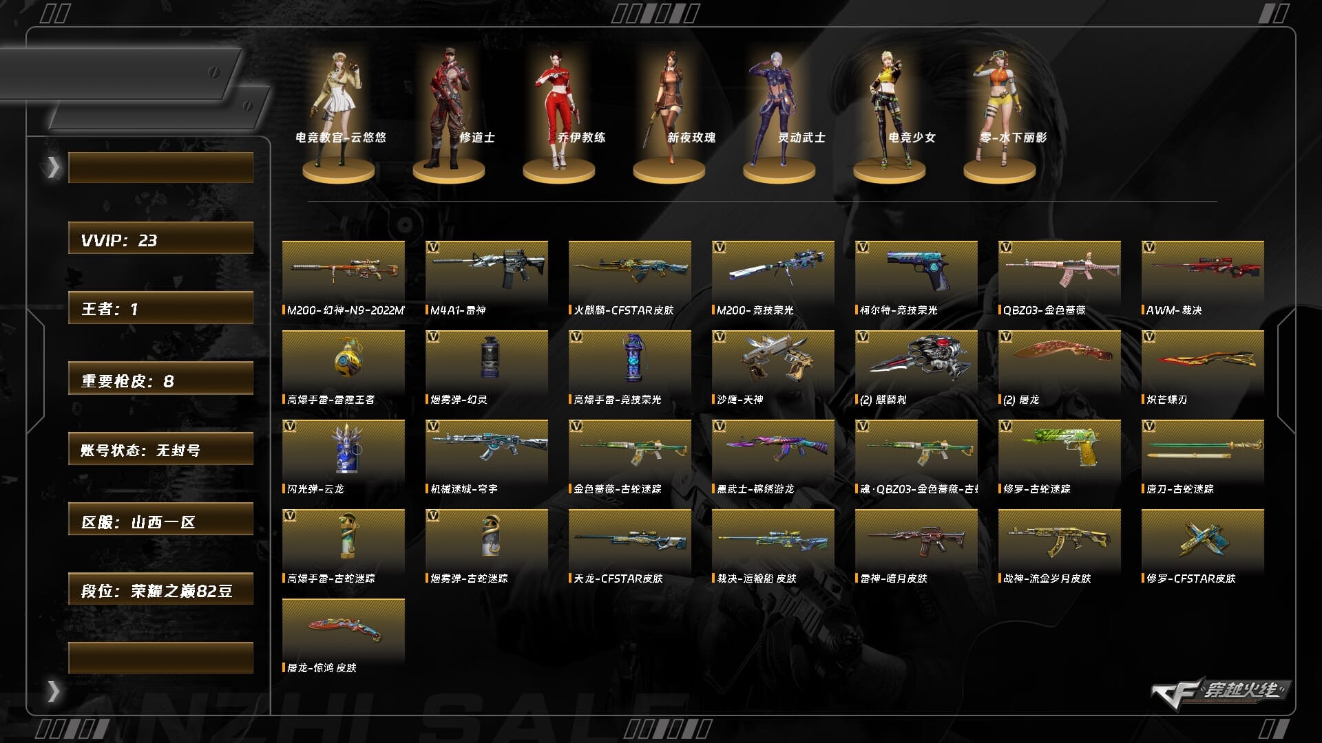 【C2530189212】[13099942]XH7922/北部/山西一区/可排位/【荣耀之巅82豆】/Lv.100 元首/VIP4/23V/M200竞技荣光/QBZ金色蔷薇/金色蔷薇古蛇迷踪/裁决/裁决运输船/柯尔特竞技荣光/炽芒蝶刃/雷神/黑武士锦绣游龙/天神/修罗古蛇迷踪/屠龙/麒麟刺/唐刀古蛇迷踪/【无幻神】/幻神N9/【角色】/电竞教官云悠悠/修道士/乔伊教练/灵动武士/电竞少女/零水下丽影/【玩偶武器】/朱雀蛇隐宗/ScarLight-马枪///各种饰品、道具/【此账号封十年已解】