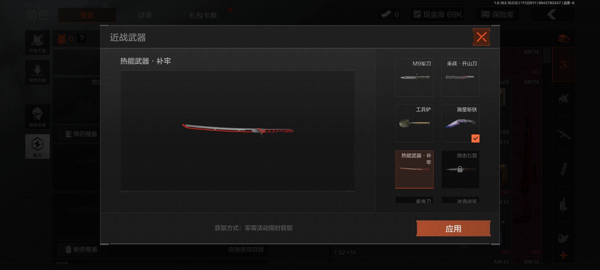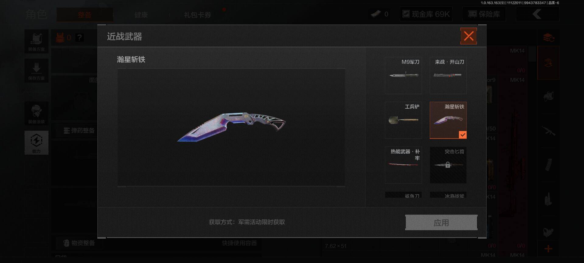 【C2531503684】【AQD4】等级:30/段位:暗区传说/仓库价值(百万):17.5/柯恩币:69445/热能武器·补牢/瀚星斩铁