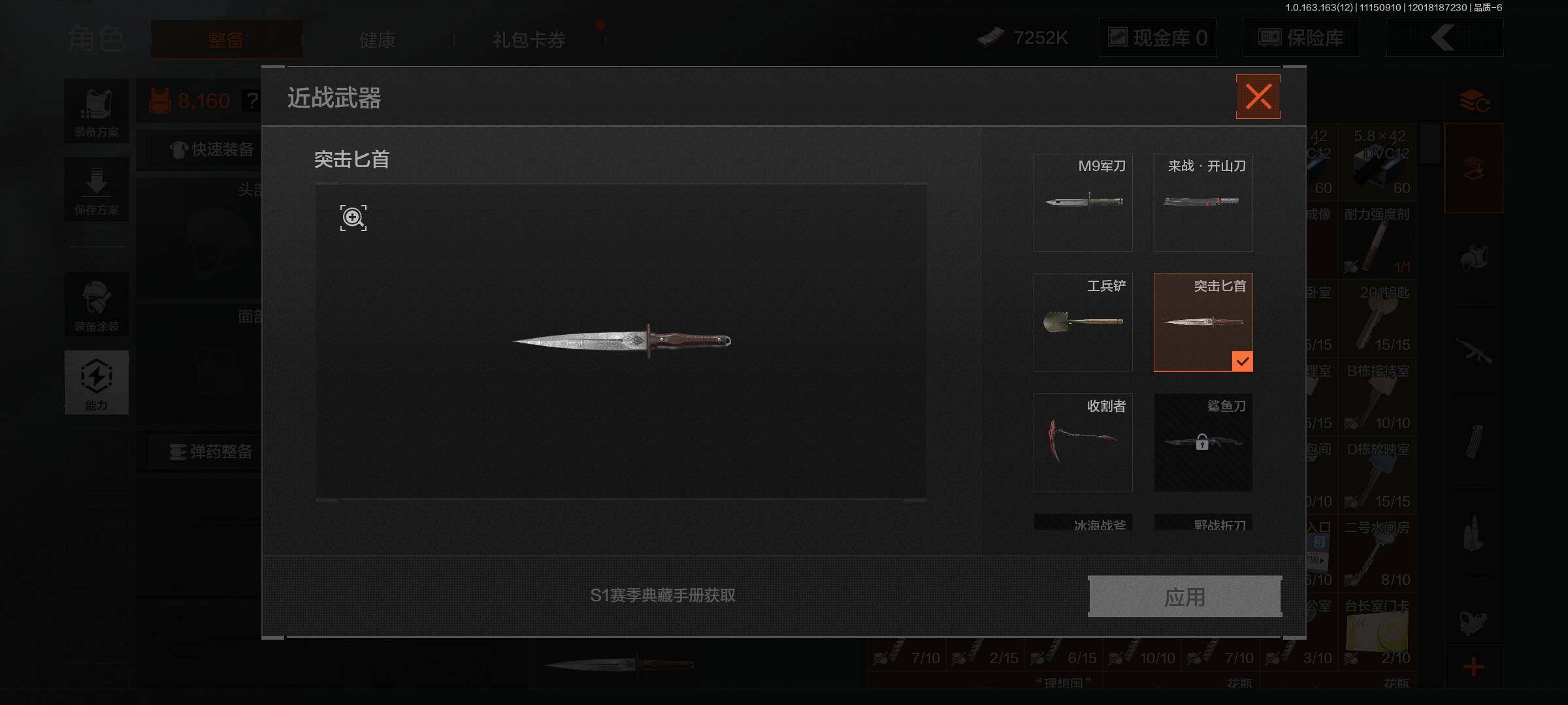 【C2531831225】【AQZG456】等级:30/段位:专家/仓库价值(百万):19.7/柯恩币:7252000/角弓得控·手套/突击匕首/来战·开山刀/工兵铲/旗帜·AEK/旧王圣谕·VSS/棱光裂变·QBU191