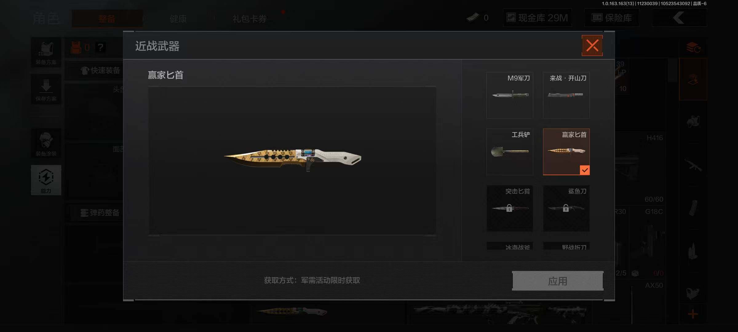【C2532656412】【AQZG511】等级:30/段位:王牌/仓库价值(百万):40.4/柯恩币:29242847/工兵铲/来战·开山刀/赢家匕首