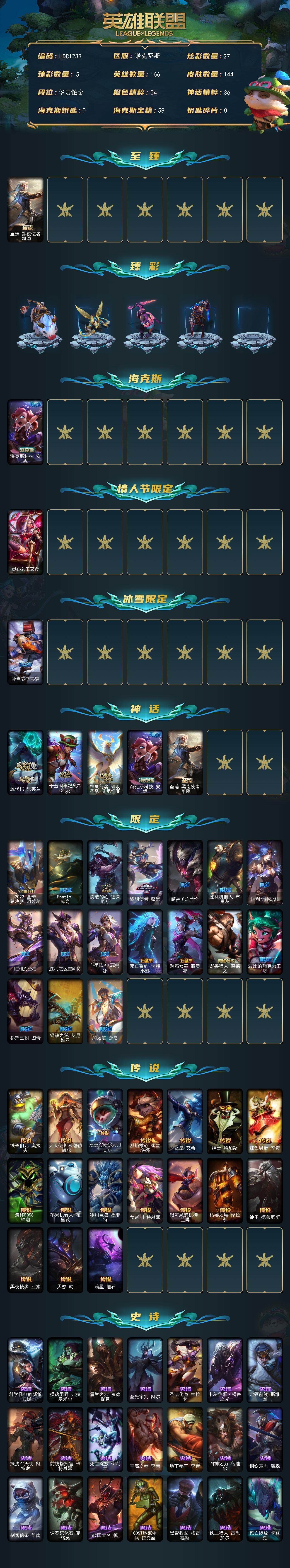 【C2532942541】【LDC1233】166英雄/144皮肤/5神话/19限定/5臻彩/27炫彩/17传说/30史诗/铂金账号等级:461/至臻黑夜使者凯影/无畏骑士瑟庄妮赤子初心/冠军掠夺者卡兹克凯旋圣装/源计划毁灭派克幻灭/玉剑传说无劫胭脂/幻灵战斗蝠薇恩梦幻强袭/海克斯科技安妮/觅心女皇艾希/冰雪节辛吉德/源代码乐芙兰/十五周年纪念希维尔/神凰行者瑞羽圣凰艾尼维亚/2022全球总决赛阿兹尔/Fnatic库奇/勇敢的心德莱厄斯/黎明使者薇恩/暗裔英雄盖伦/胜利机器人布里茨/胜利女神娑娜/胜利剑圣易/胜利之运崔斯特/胜利女神菲奥娜/死亡誓约卡特琳娜/魅惑女巫菲奥娜/野兽猎人德莱文/波比的巧克力工坊/都铎王朝图奇/钢铁之翼艾尼维亚/海之歌永恩/铁哥们儿奥拉夫/大天使长米迦勒凯尔/提莫约德尔人的一大步/烈焰雄心崔丝塔娜/女皇艾希/绅士科加斯/红色男爵库奇/最终BOSS维迦/苹果机器人布里茨/冰川巨兽墨菲特/女帝卡特琳娜/银河魔装机神兰博/枯萎之壤泽拉斯/神王德莱厄斯/黑夜使者亚索/天煞劫/暗星锤石/科学怪熊的新娘安妮/摄魂男爵弗拉基米尔/重生之沙费德提克/圣光审判凯尔/圣洁化身索拉卡/卡尔萨斯祸害之光/北领前线斯维因/抵抗军天使凯特琳/前线指挥官卡特琳娜/死亡绽放伊莉丝/至高之拳李青/地下拳王李青/四神之力乌迪尔/钢铁意志潘森/刺客信条凯南/侏罗纪化石克格莫/战国大名慎/ODST地狱伞兵拉克丝/黑帮教父格雷福斯/铁血猎人雷恩加尔/死亡绽放卡兹克/暗星卡兹克/铁血帝皇德莱厄斯/天启骑士杰斯/源代码丽桑卓/源计划风亚索/黑帮狂花金克丝/仲裁圣骑亚托克斯/幽冥领主阿兹尔/晨星之翎洛/霹雳游侠弗拉基米尔/战地之王加里奥/银河魔装机神安妮/屠龙勇士奥拉夫/未来战士崔斯特/魔女乐芙兰/灵魂莲华易/灵魂莲华提莫/约德尔海贼团崔丝塔娜/攻城巨兽努努和威朗普/勇敢的心艾希/黑暗骑士艾希/梦魇泰达米尔/宗师级钓鱼训练师贾克斯/光明骑士贾克斯/遗迹守护者基兰/科学狂人辛吉德/黑暗女王伊芙琳/情绪摇滚阿木木/忍龟拉莫斯/恐怖之源萨科/万能小丑萨科/战栗之毒蒙多/健美教练蒙多/莲花之令艾瑞莉娅/日冕女神卡尔玛/绿野仙踪维迦/欧米伽小队天雷爆破手/永恒之森维迦/巡逻警官特朗德尔/戴一个表布里茨/幻影梦魔魔腾/烈焰古树茂凯/喵凯/血石战神雷克顿/屠龙勇士嘉文四世/黑色玫瑰假面舞会伊莉丝/单身贵族内瑟斯/黑夜使者内瑟斯/诺克萨斯波比/乡村农夫古拉加斯/美酒节特使古拉加斯/狂热球迷古拉加斯/灵魂莲华约里克/奈落之炎阿卡丽/红色彗星凯南/医学博士凯南/战斗学院盖伦/血色精锐泰隆/未来战士锐雯/玉剑传说武剑仙/怒熊沃利贝尔/雷喵喵尔/西部魔影天使韦鲁斯/创世之神诺提勒斯/玉剑传说无双/科学狂人吉格斯/灵魂收割者德莱文/魂蔷薇德莱文/人马星神赫卡里姆/墨影之灵奥瑞利安索尔/永恒之森纳尔/丧尸杀手金克丝/源计划裁决蔚/灵能特工蔚/小蜜蜂悠米/太空律动音浪狂舞莎弥拉/深渊恐惧锤石/破败解封锤石/古神艾翁/腥红之月派克/战斗学院永恩/山海绘卷莉莉娅