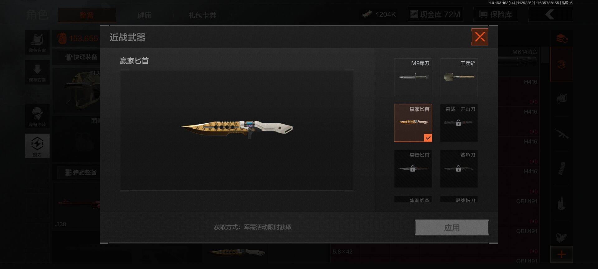 【C2533234154】【AQD26】等级:30/段位:专家/仓库价值(百万):157/柯恩币:1204/赢家匕首/工兵铲/旗帜AEK