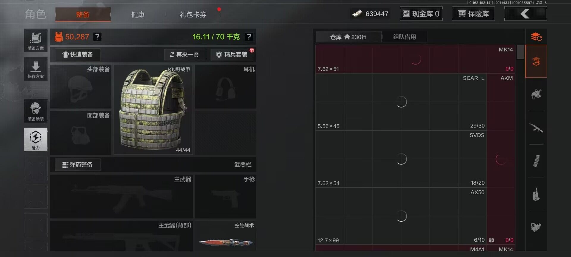 【C2533463970】【AQD35】等级:30/段位:暗区传说/仓库价值(百万):20.6/柯恩币:639447/空腔战术/突击匕首/工兵铲/来战·开山刀/伦琴幻影FAL/利齿风暴MPX/旧王圣谕VSS