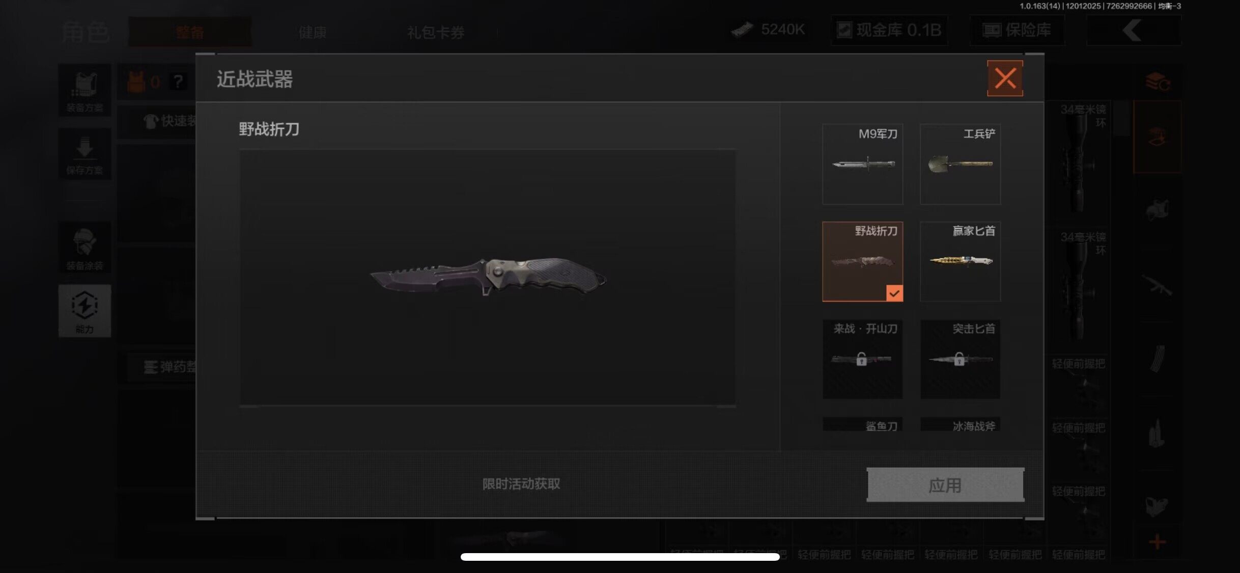 【C2533439710】【AQQH19】段位:暗区传说/仓库价值(百万):143/野战折刀/赢家匕首