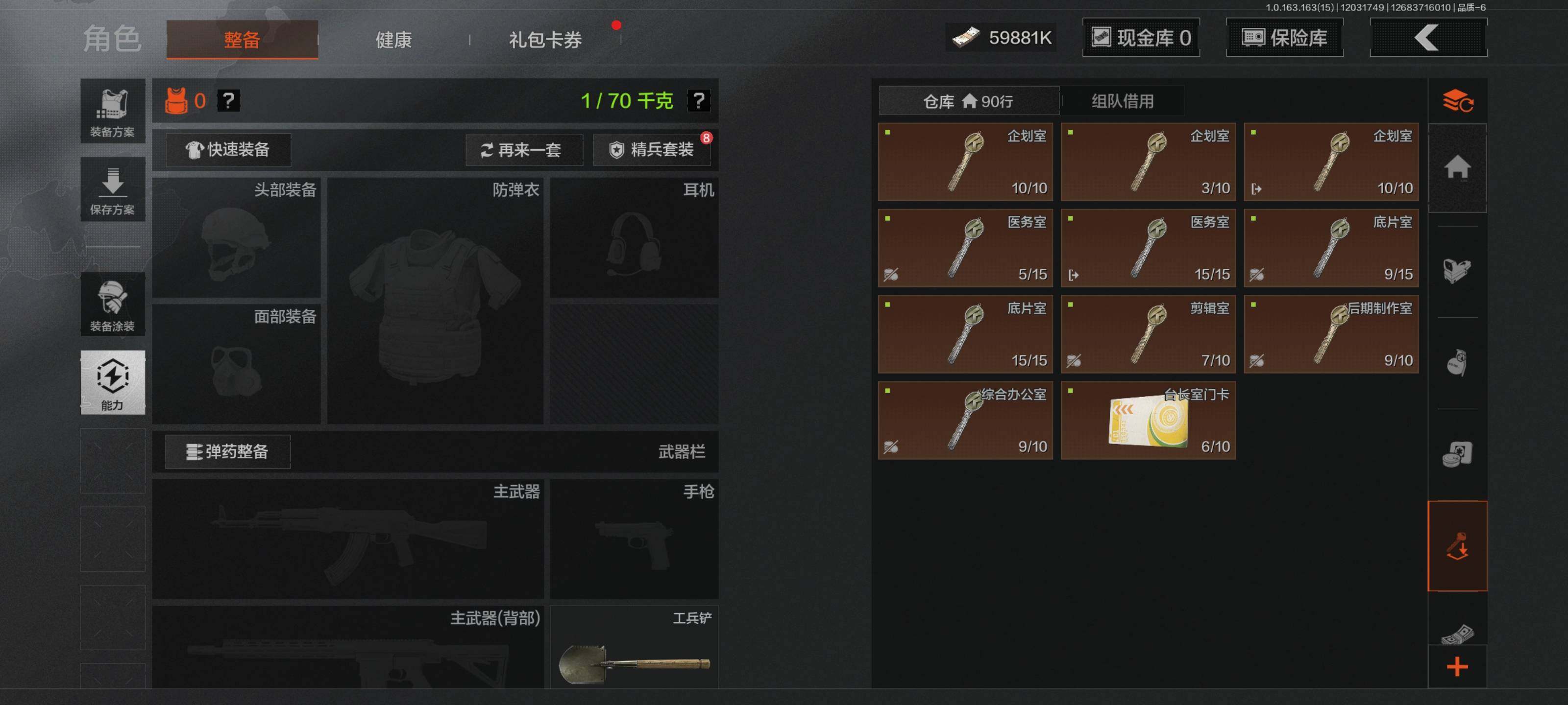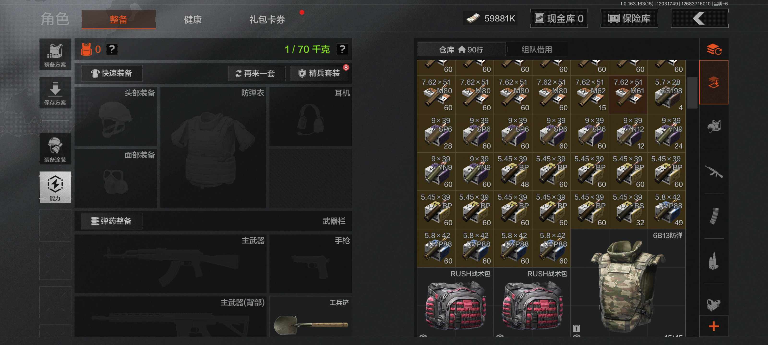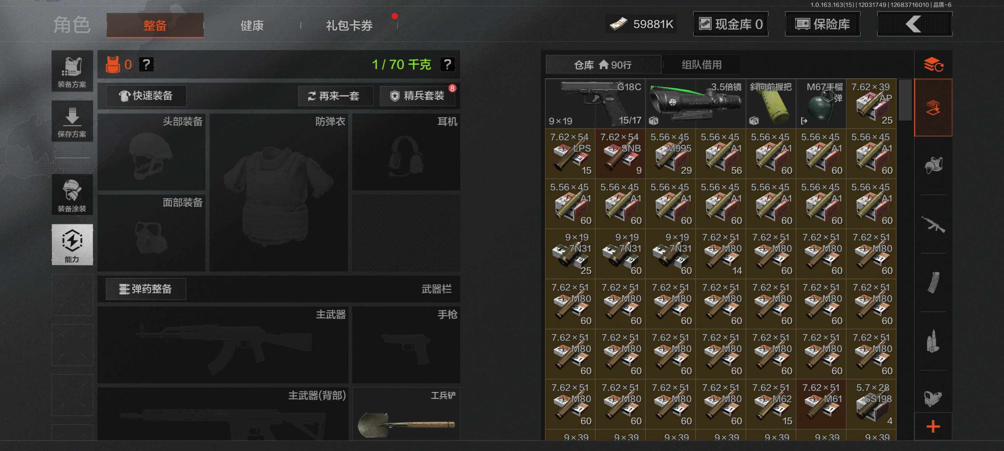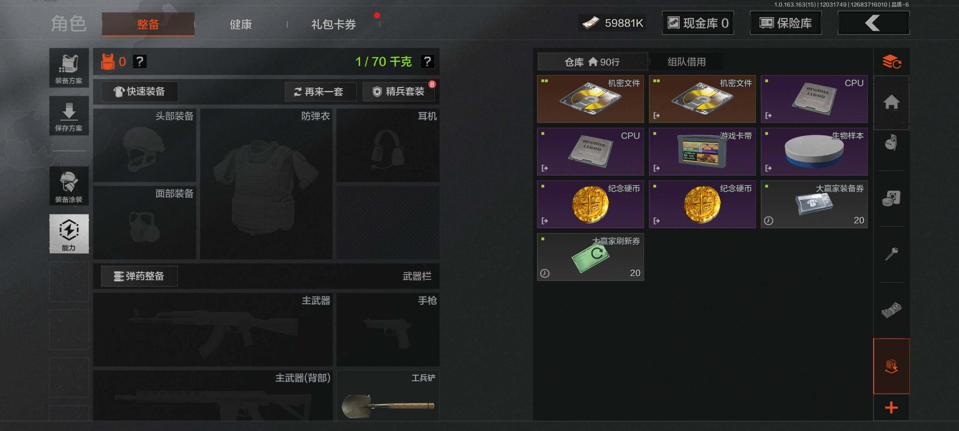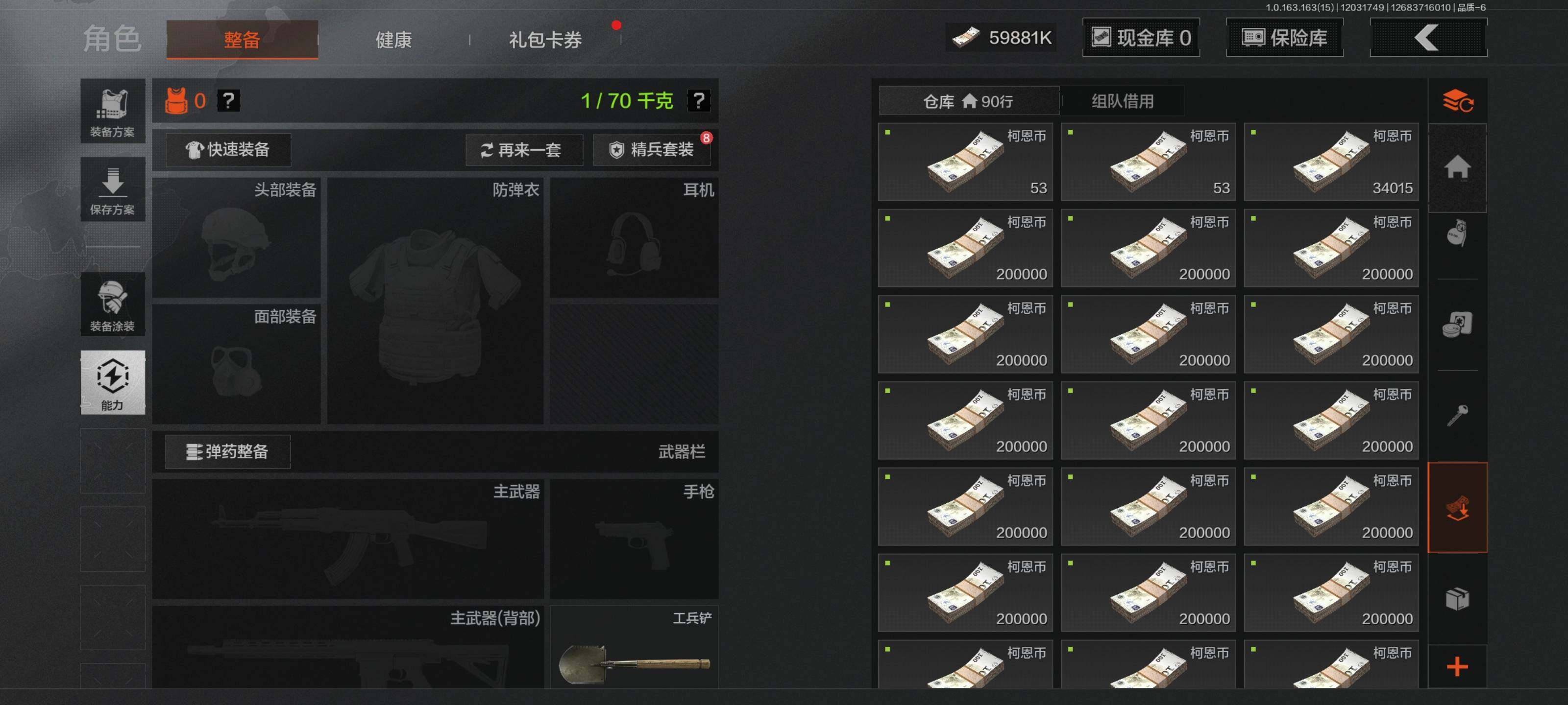 【C2533714447】【AQN40】等级:30/段位:新锐/仓库价值(百万):73.6/柯恩币:59881/工兵铲