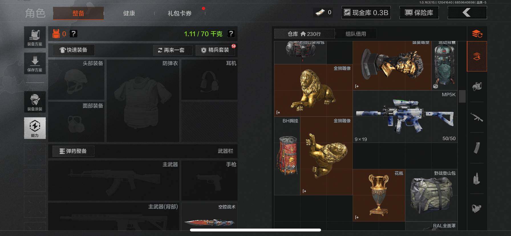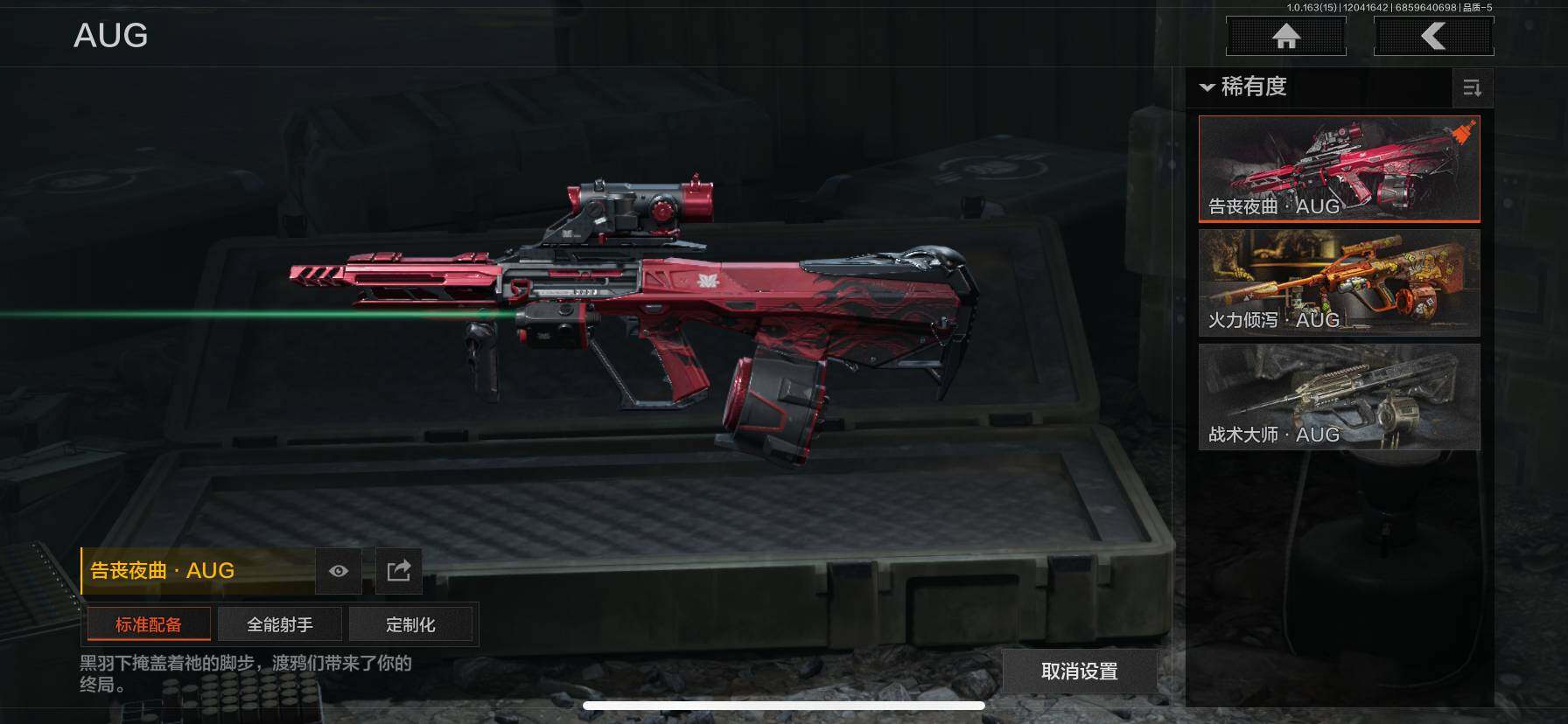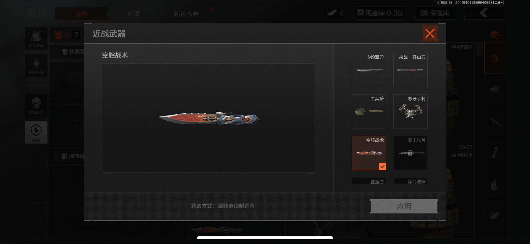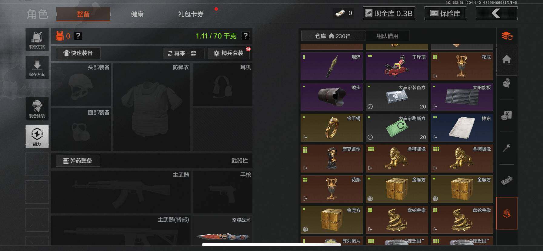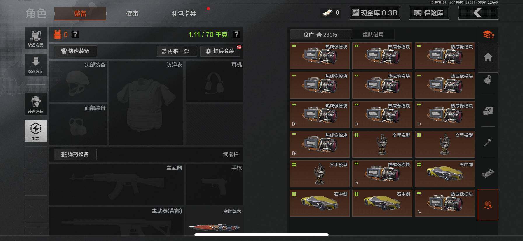 【C2533719311】【SJZG2306】等级:30/段位:王牌/仓库价值(百万):461/柯恩币:326294965/空腔战术/来战·开山刀/工兵铲/寒牙手刺/使徒欧瑞恩/绅士西服/生物危害M4A1/竞技FAL/蓝色咆哮H416/告丧夜曲AUG/告丧夜曲AR57/战术大师AEK/旗帜AEK/浮鳞影青QBZ192/旧王圣谕VSS