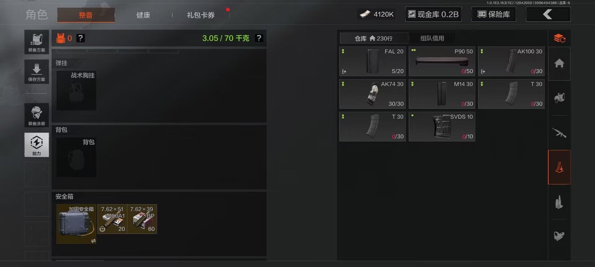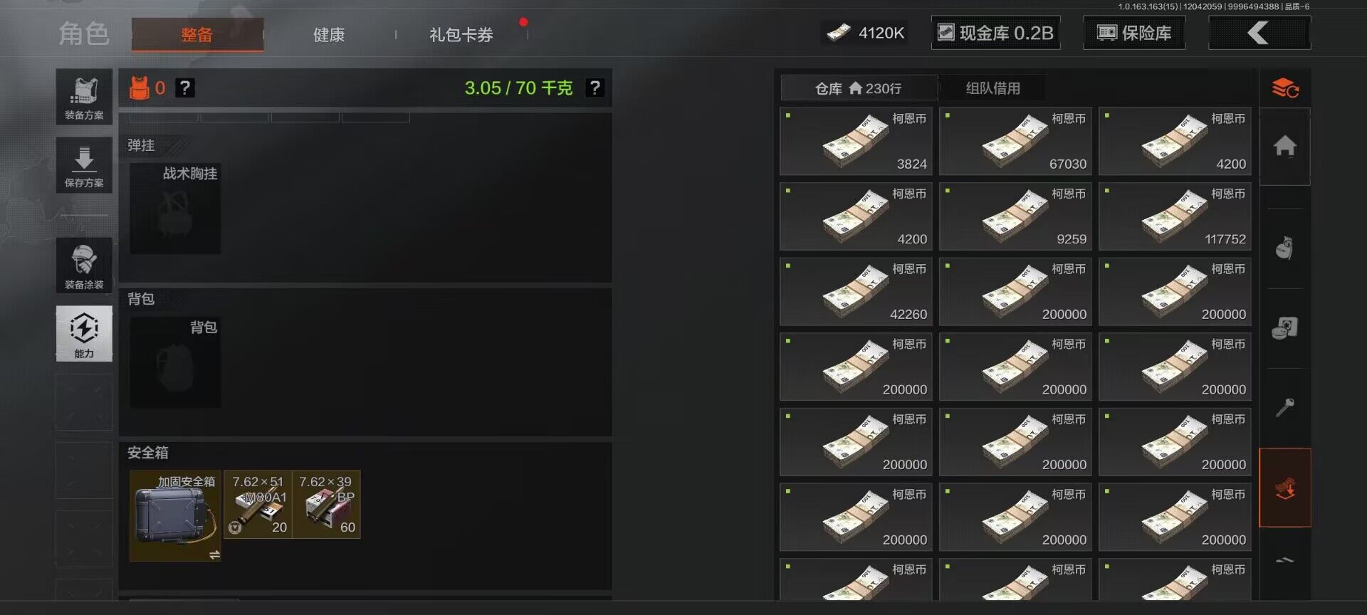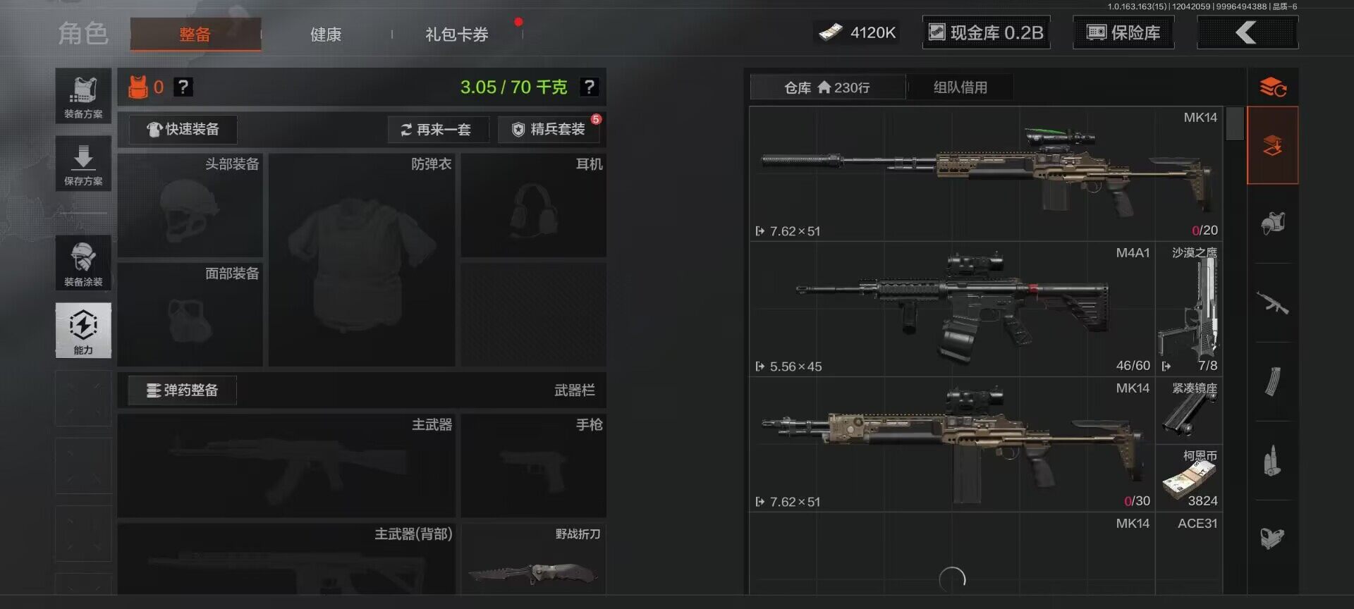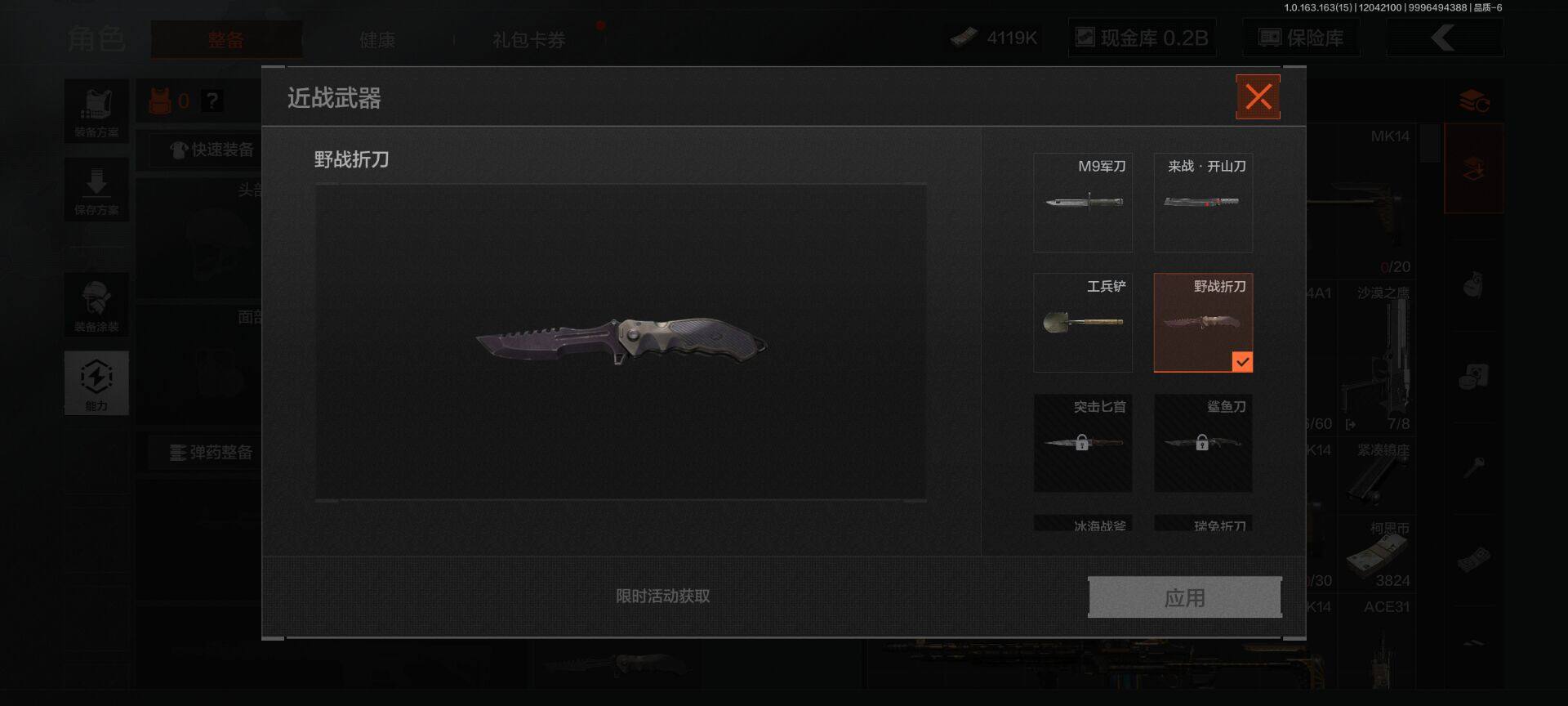 【C2533734559】【AQZG605】段位:专家/仓库价值(百万):197/柯恩币:4120000/野战折刀/工兵铲/来战·开山刀