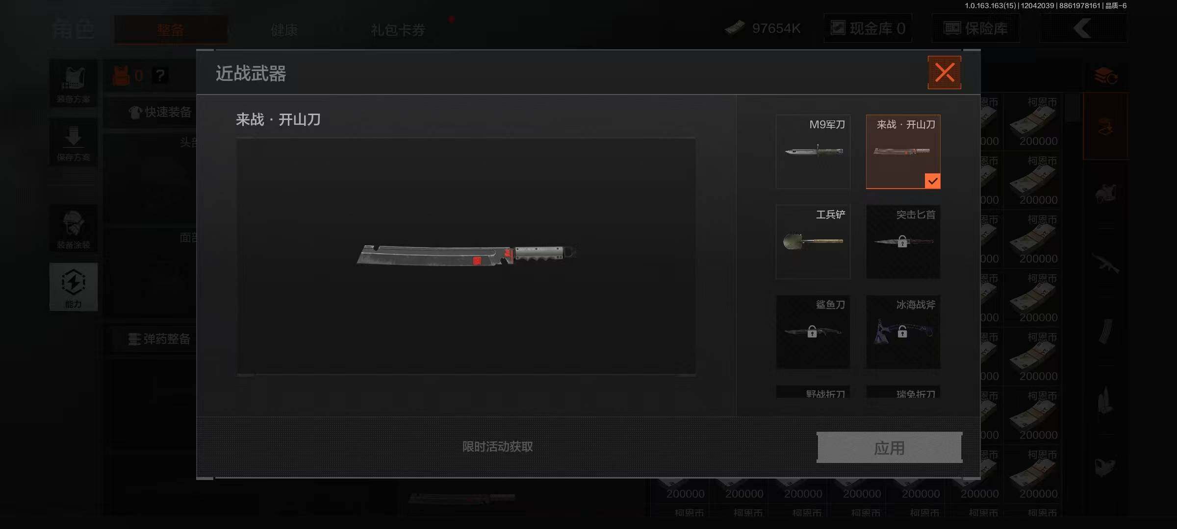 【C2533749634】【AQQH28】段位:新锐/仓库价值(百万):97.6/来战·开山刀