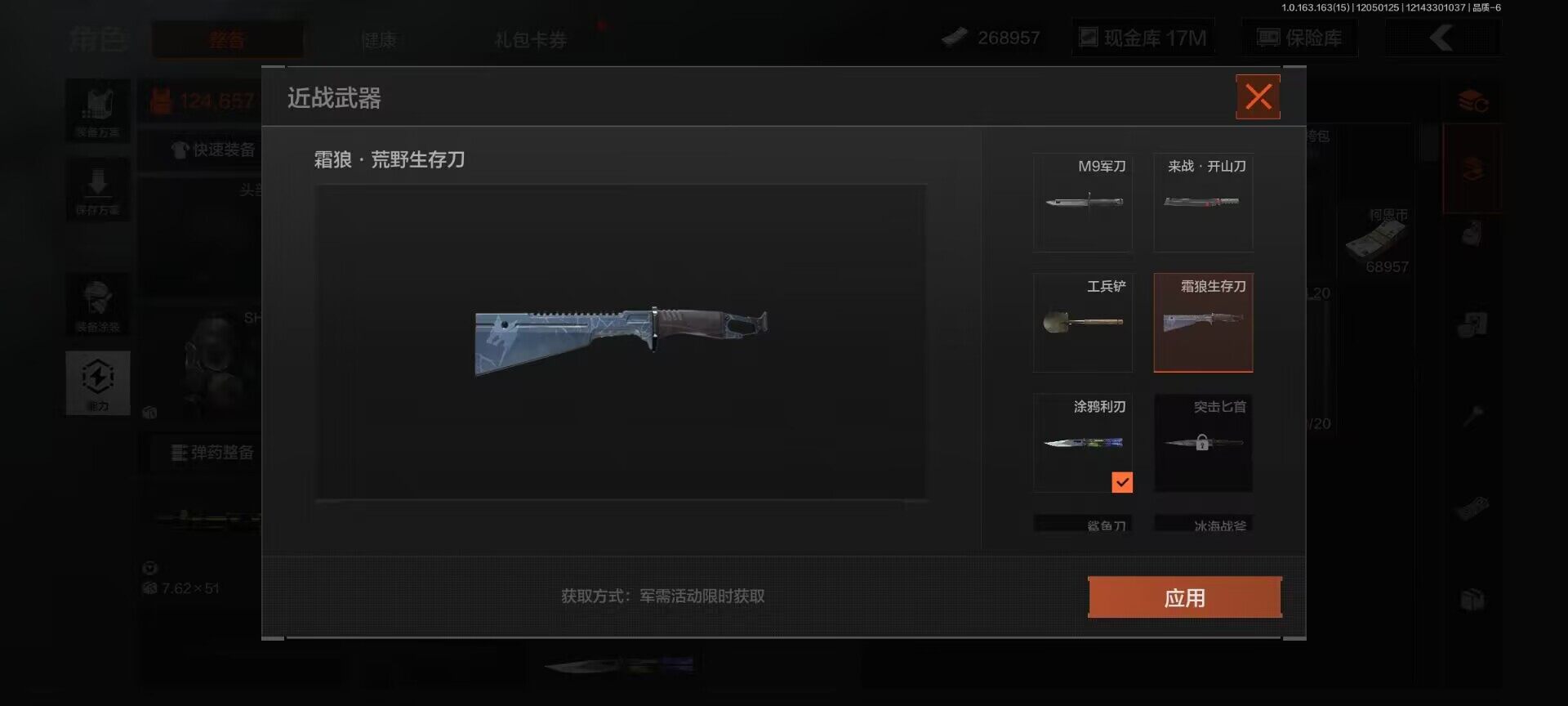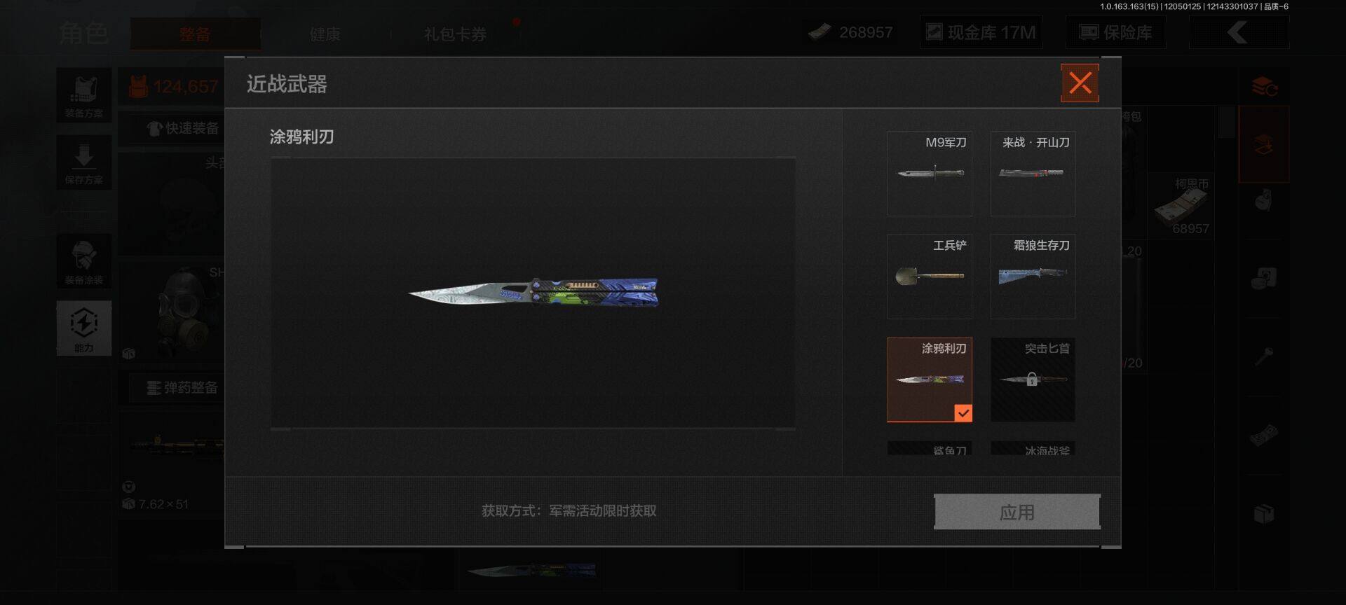 【C2533874618】【AQZG608】等级:30/段位:王牌/仓库价值(百万):17.9/柯恩币:268957/涂鸦利刃/霜狼生存刀/使徒欧瑞恩