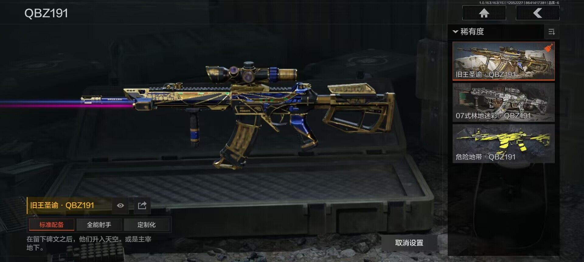 【C2533812538】【AQZG619】等级:30/段位:专家/仓库价值(百万):116.8/柯恩币:154274/来战·开山刀/旧王圣谕QBZ191/告丧夜曲AUG