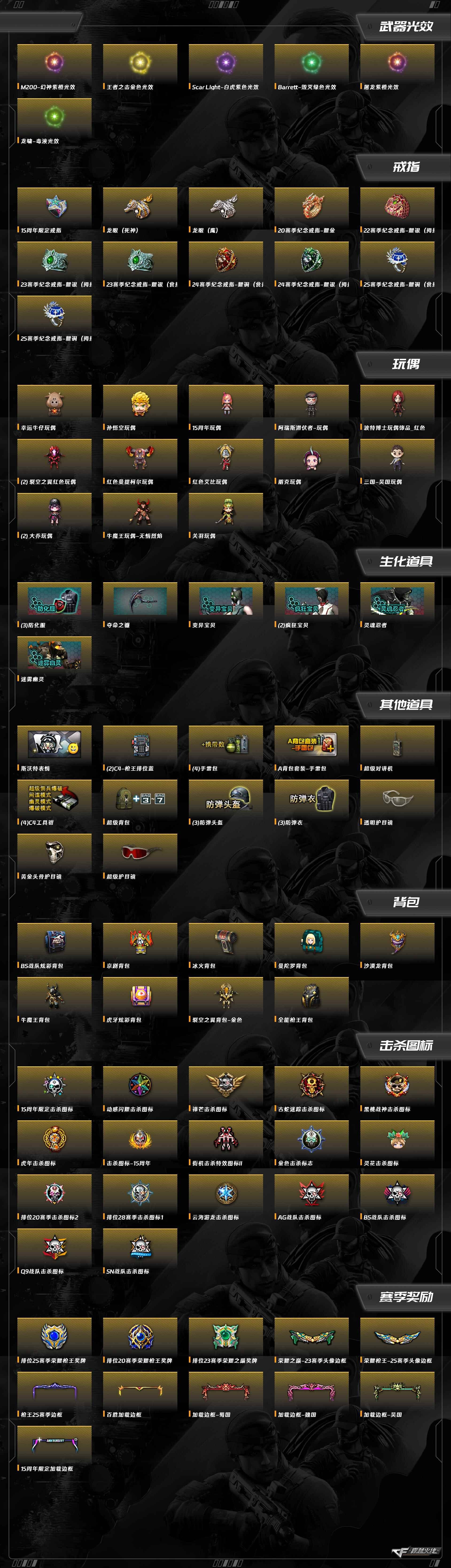 黑骑士-海王,屠龙,沙鹰-天神,擎天-竞技荣光,沙鹰-修罗,汤姆逊-烈龙,AK12-天启,Barrett-暗月传说,Barrett-毁灭,M200-幻神,AK47-B-常胜将军,AK47-B-战神,AK-47-猩红传说,AK47-B-战士,AK47-火麒麟,Scar Light-白虎,M200-竞技荣光,龙啸-烈火龙威