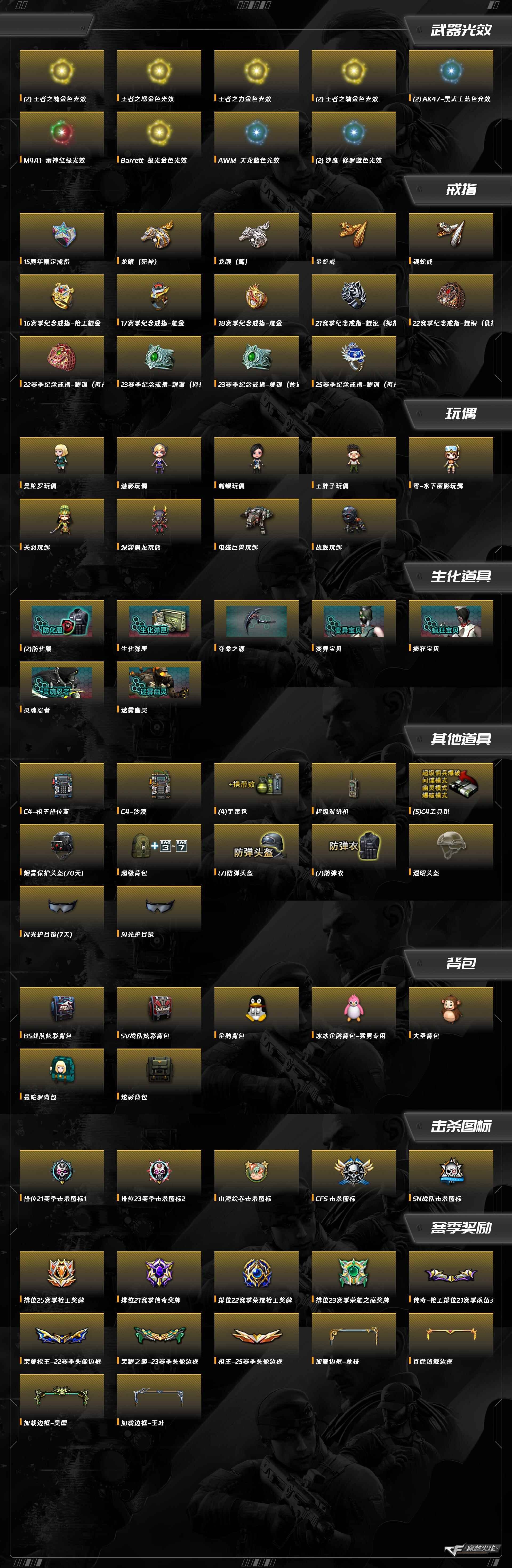 沙鹰-修罗,AA-12-雷霆,AK12-天启,HK417-朱雀,QBZ03-金色蔷薇,9A91-烈火,RPK-盘龙,汤姆逊-烈龙,加特林-炼狱,AWM-裁决,擎天-竞技荣光,USP-雷暴,柯尔特-竞技荣光,屠龙,龙啸,麒麟刺,擎天,幻灵之锋,M4A1-黑骑士,M200-竞技荣光,雷神-葫芦兄弟,AK47-无影,AK47-火麒麟,AK47-B-战士,AK-47-猩红传说,AK47-B-战神,M4A1-雷神,M200-幻神,M4A1-死神,M4A1-雷霆,M4A1-黑龙,Barrett-毁灭,Barrett-极光,Barrett-朱雀,AWM-天龙