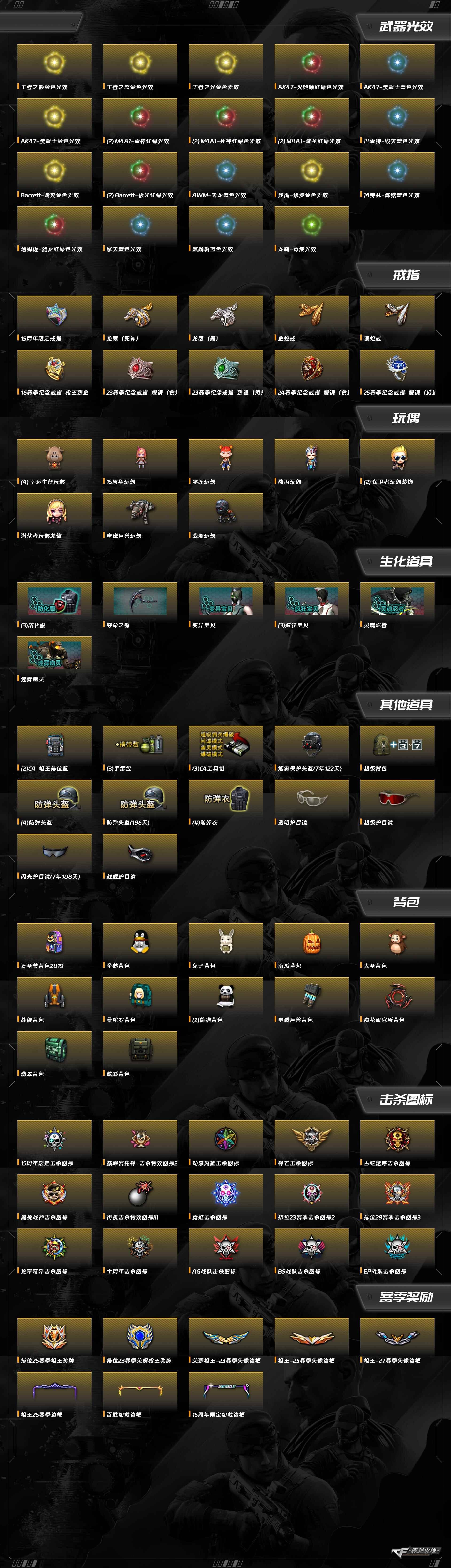 AA-12-雷霆,擎天,麒麟刺,龙啸,屠龙,沙鹰-天神,沙鹰-修罗,加特林-炼狱,汤姆逊-烈龙,9A91-烈火,QBZ03-金色蔷薇,HK417-朱雀,AN94-超新星,AK12-天启,M200-幻神,AWM-裁决,AWM-天龙,Barrett-毁灭,M4A1-黑龙,M4A1-雷霆,黑骑士-海王,M4A1-黑骑士,M4A1-雷神,AK-47-猩红传说,AK47-黑武士,AK47-黑鲨,AK47-火麒麟