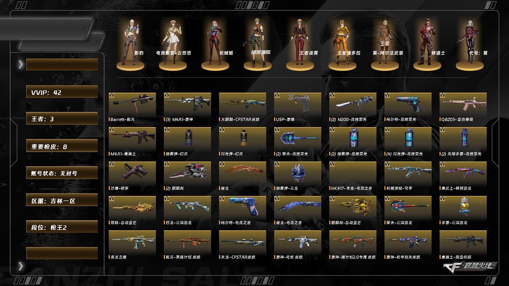 【C2535844611】[14893727]LC7709/北部/吉林一区/可排位/41v/【竞技荣光套/LC200竞技荣光/*2/柯尔特竞技荣光/擎天竞技荣光/】/QBZ金色蔷薇/毁灭/黑武士锦绣游龙/黑骑士摸金校尉/雷神/机械迷城穹宇/青龙之魄/炼狱百战金芒/炼狱百战金芒庆典舞曲音效卡/USP雷暴/柯尔特电竞之星/朱雀电竞之星/【臻选次元套装/】/【挑战六阶段】/集束激光超LCAX/地狱征服者超越6/【四防角色/电竞教官云悠悠/影豹/王者凌霄/王者潘多拉】/【角色】/机械姬/零纪元/战地猎狐/葵阿尔法武装/奇洋探员/乔伊教练/修道士/云海玲珑/幻面灵狐/【音效卡/碧霄极光音效卡/修罗云海游龙音效卡/屠龙电竞之星竞星跃动音效卡/朱雀电竞之星竞星跃动音效卡/炼狱百战金芒庆典舞曲音效卡/】/【枪皮】/雷神机甲刑天/黑骑士摸金校尉/雷神源计划/【小人枪/火麒麟零纪元/KAC锯式机枪黑桃战神/】/永久AC/有过十年记录/找回包赔