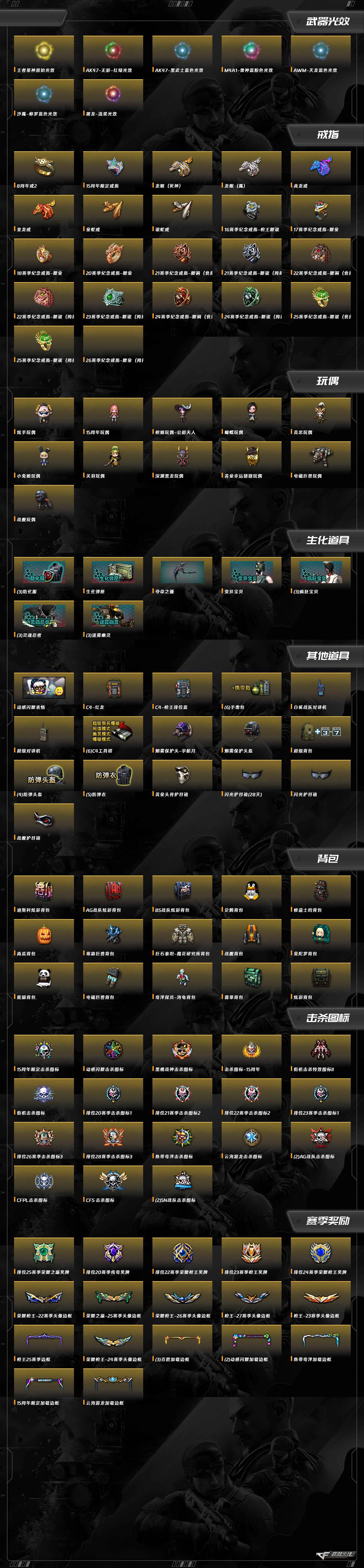 M4A1-千变,擎天,麒麟刺,屠龙,沙鹰-天神,擎天-竞技荣光,沙鹰-修罗,加特林-炼狱,QBZ03-金色蔷薇,AWM-天龙,Barrett-极光,Barrett-毁灭,M4A1-玫瑰精灵,M200-幻神,M4A1-武圣,M4A1-黑龙,M4A1-黑骑士,M4A1-雷神,AK47-火麒麟,AK47-无影,龙啸-烈火龙威,天神-动感闪耀,屠龙-动感闪耀,烈火-动感闪耀,柯尔特-冠军之特