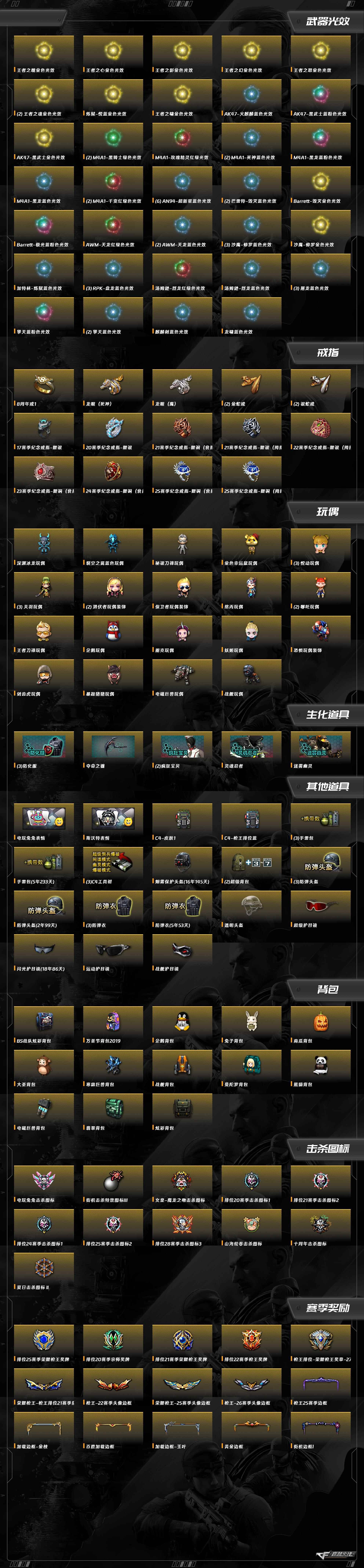 加特林-炼狱,Barrett-极光,AWM-天龙,AA-12-雷霆,AK12-天启,HK417-朱雀,QBZ03-金色蔷薇,9A91-烈火,RPK-盘龙,汤姆逊-烈龙,Barrett-毁灭,沙鹰-修罗,USP-雷暴,沙鹰-天神,屠龙,龙啸,麒麟刺,擎天,斩神刀-雷暴,AK47-B-战神,M200-幻神,AK47-无影,AK47-火麒麟,AK47-雷暴,AK47-黑鲨,AK47-黑武士,AK47-B-战士,AK47-机械迷城,AK-47-猩红传说,破空枪刃-夜魔,M4A1-雷神,M4A1-黑骑士,M4A1-死神,M4A1-雷霆,M4A1-黑龙,M4A1-龙血,M4A1-夜魔,M4A1-玫瑰精灵