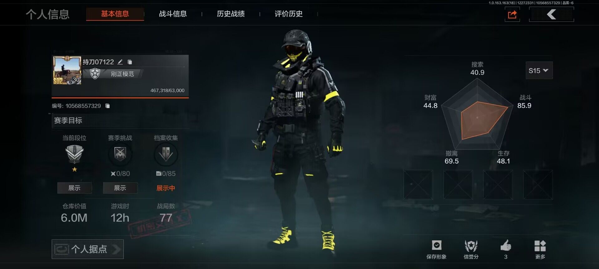 【C2536037287】【AQQH149】段位:尖兵/仓库价值(百万):6/工兵铲/脉冲马克西姆