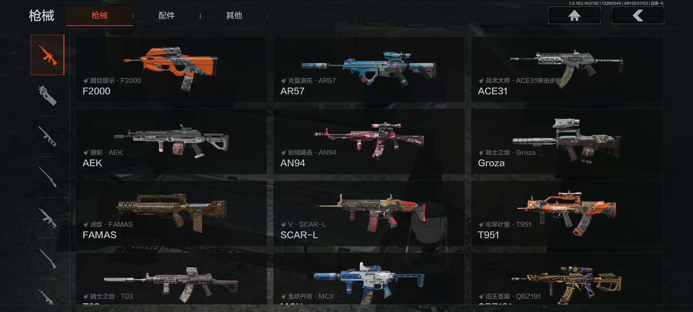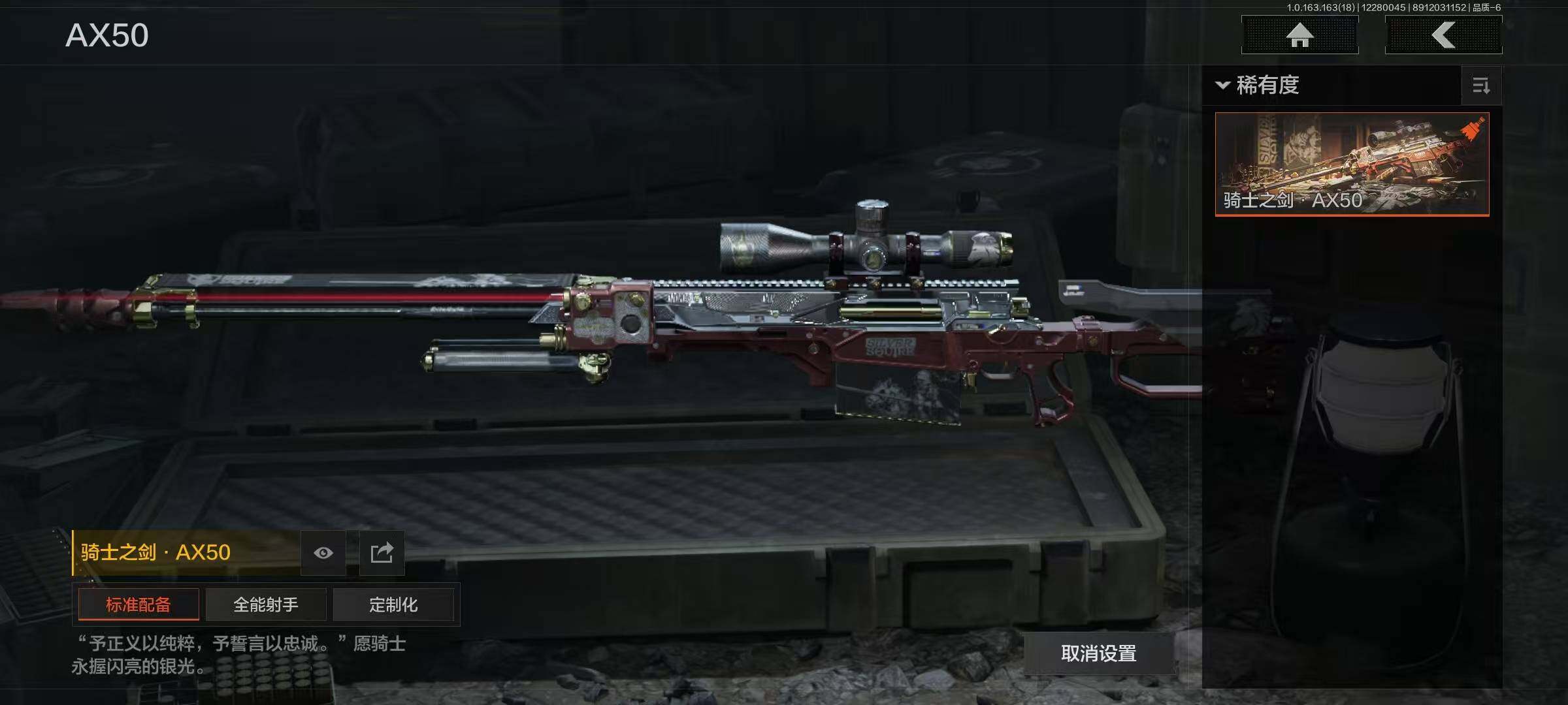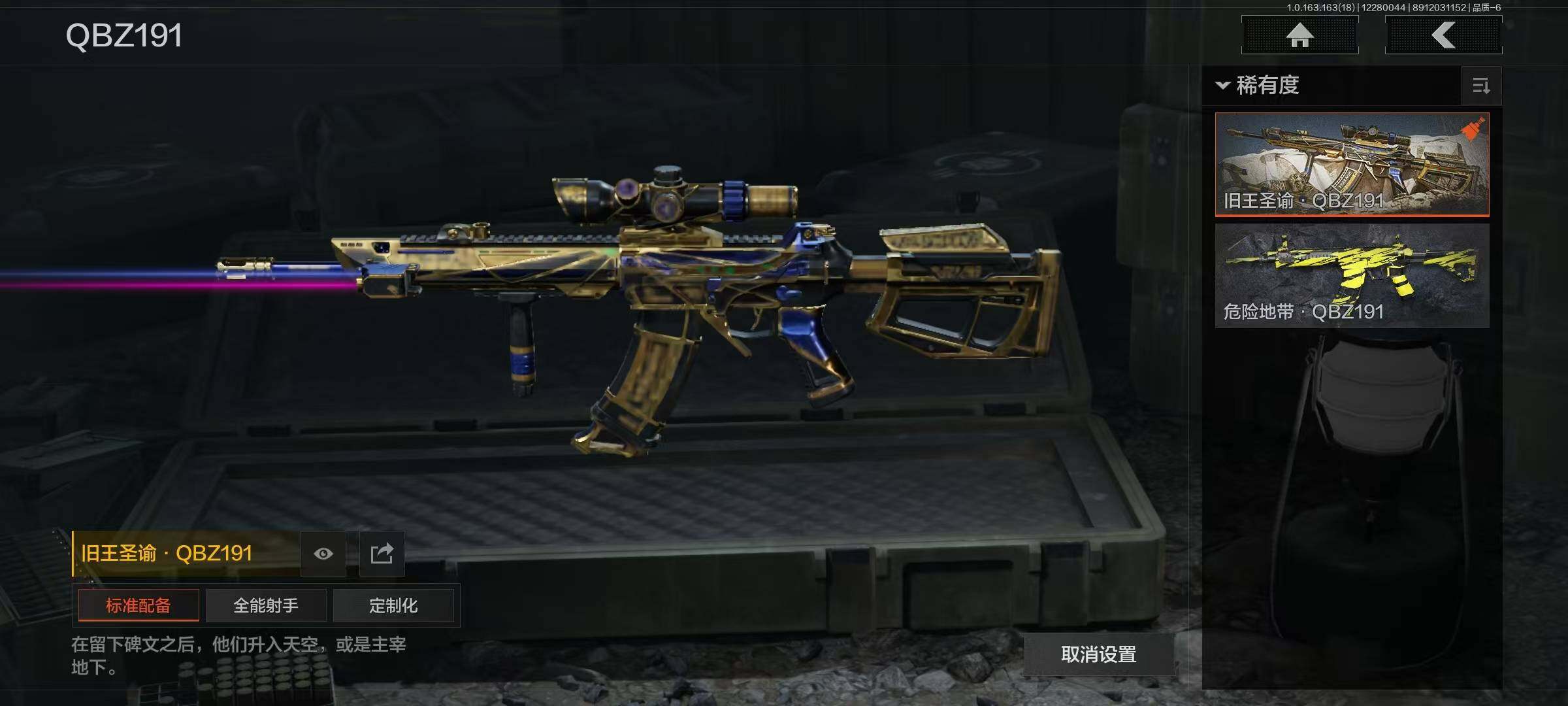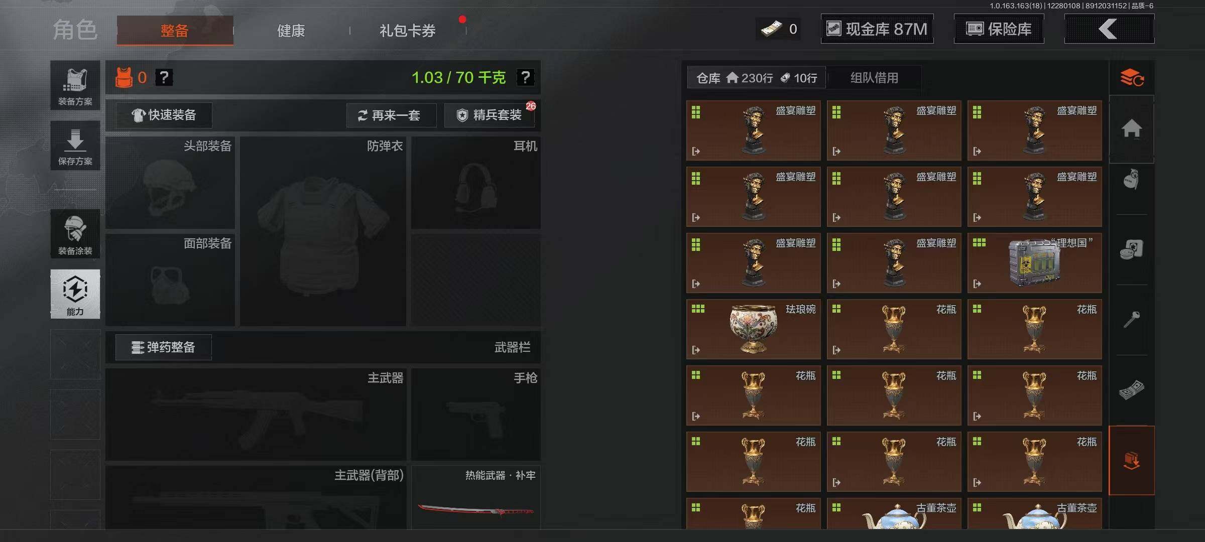 【C2536113172】【AQZG798】等级:30/段位:暗区传说/仓库价值(百万):200.3/柯恩币:87507816/热能武器补牢/来战·开山刀/工兵铲/伦琴幻影FAL/旗帜AEK/旧王圣谕QBZ191/浮鳞影青QBZ192/利齿风暴MPX/骑士之剑VSS/骑士之剑AX50
