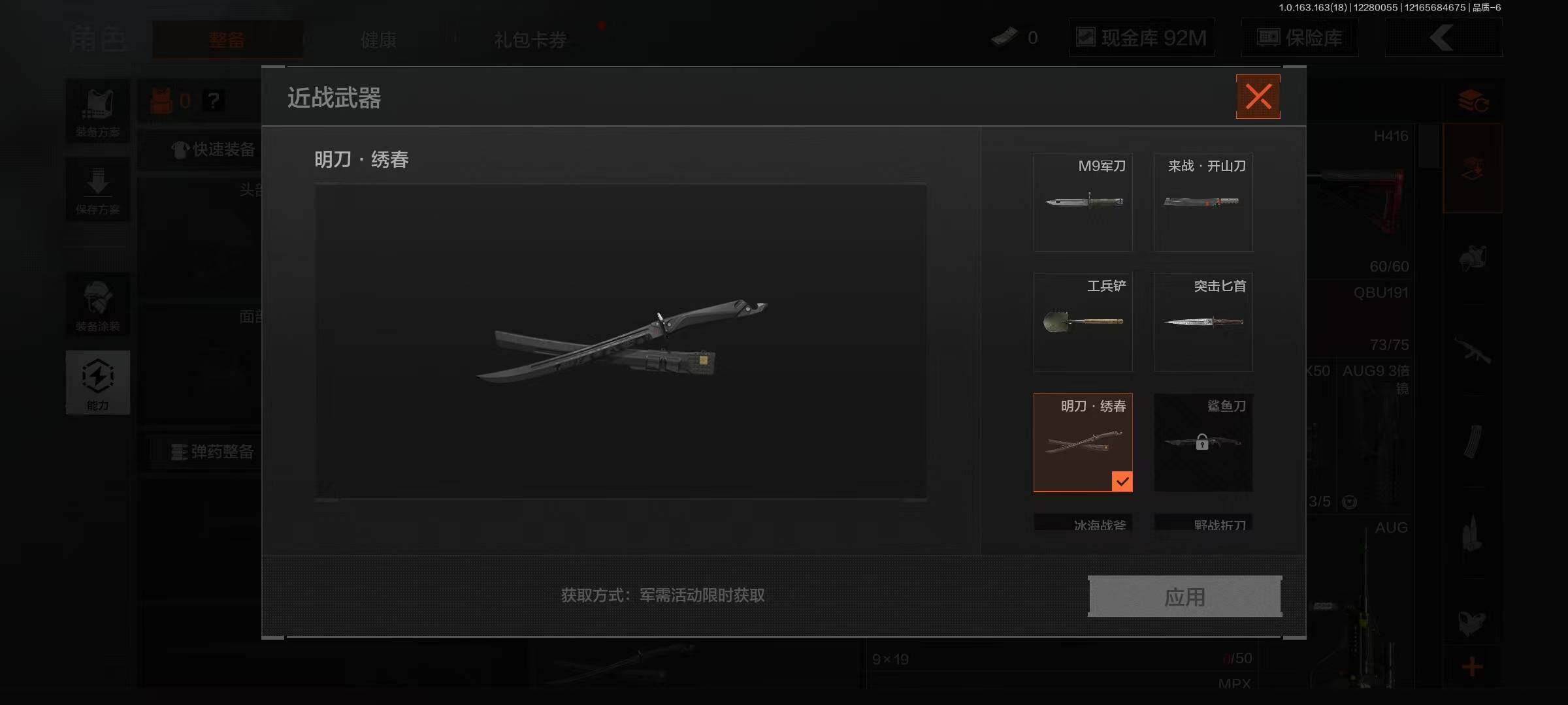 来战·开山刀,工兵铲,突击匕首,明刀·绣春