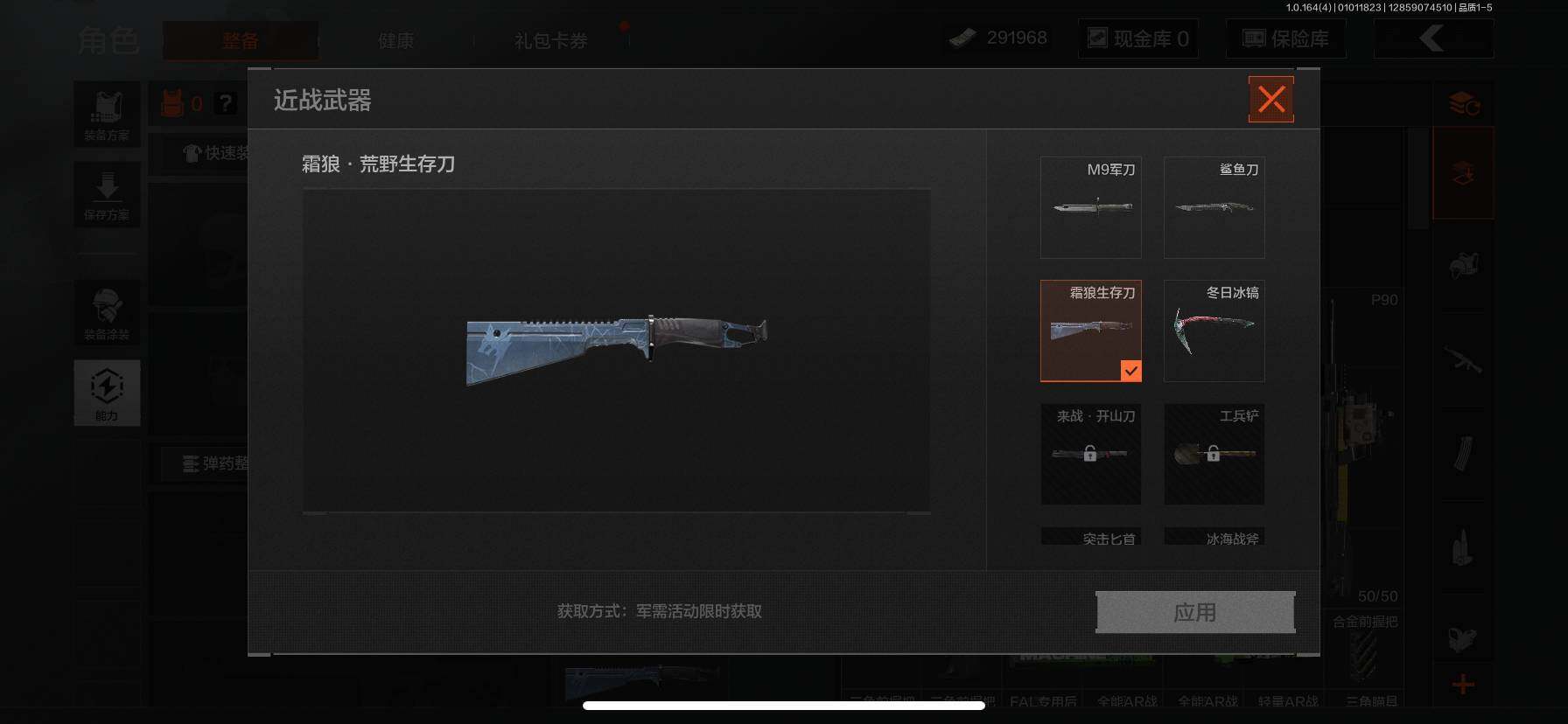 【C26021941】【AQZG821】等级:30/段位:精英/柯恩币:291968/霜狼生存刀/冬日冰镐/鲨鱼刀/火绒塔莉娅/战术大师·AK102/水果·AR57