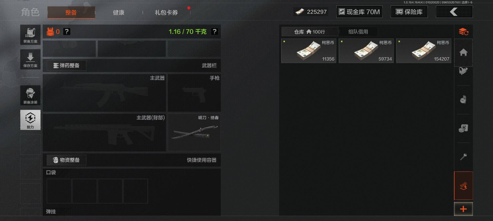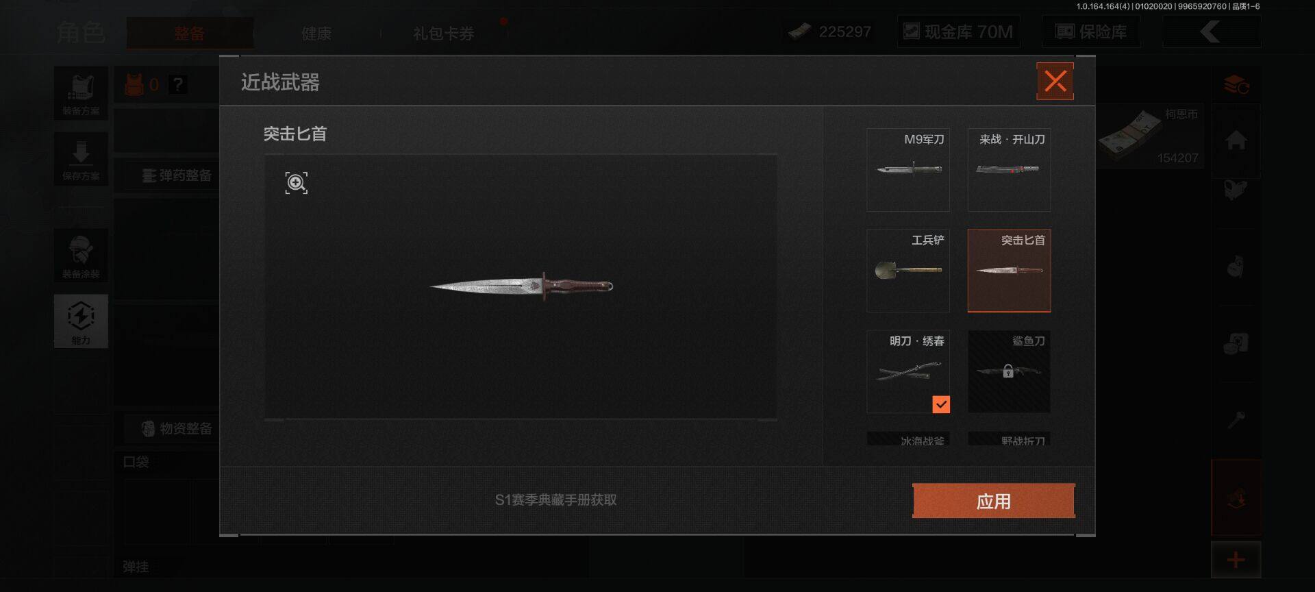 【C26152284】【AQZG836】等级:30/段位:新锐/仓库价值(百万):80/柯恩币:70000000/明刀·绣春/突击匕首