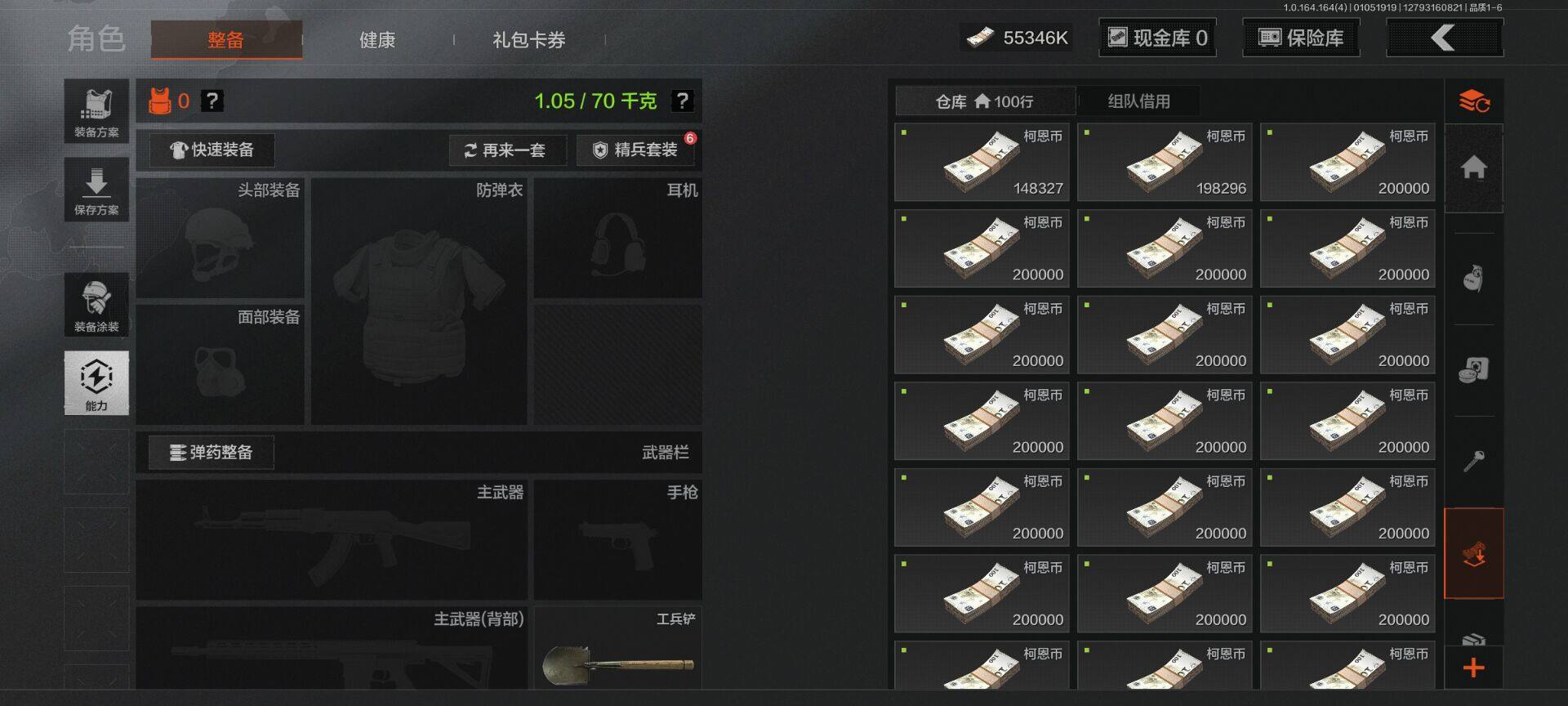 【C26483203】【AQZG867】等级:30/段位:精英/仓库价值(百万):55.3/柯恩币:55346000/工兵铲
