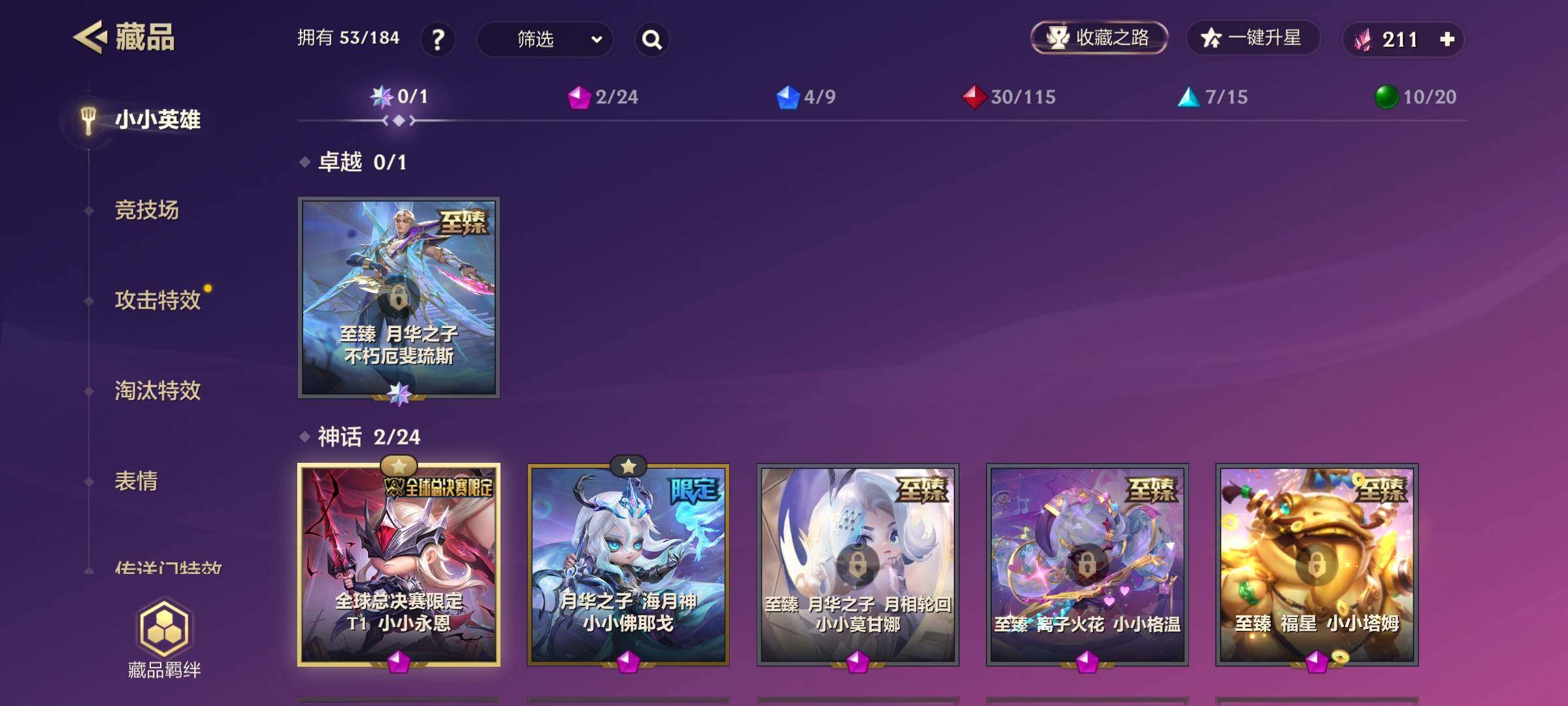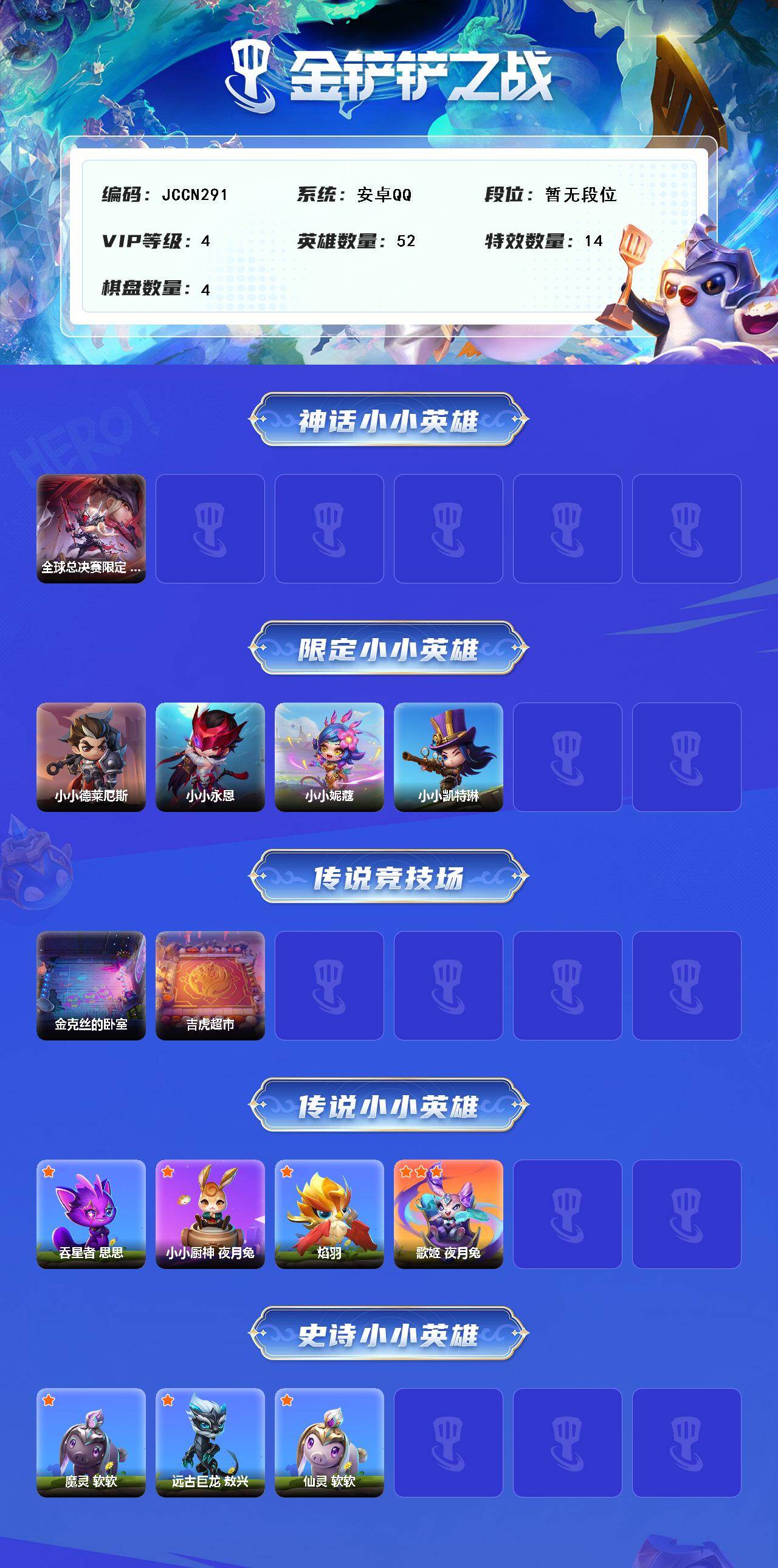【C26640708】【JCCN291】1神话/52小小英雄/4棋盘/全球总决赛限定 T1 小小永恩/小小德莱厄斯/小小永恩/小小妮蔻/小小凯特琳/金克丝的卧室/吉虎超市/吞星者 思思/小小厨神 夜月兔/焰羽/歌姬 夜月兔/魔灵 软软/远古巨龙 敖兴/仙灵 软软