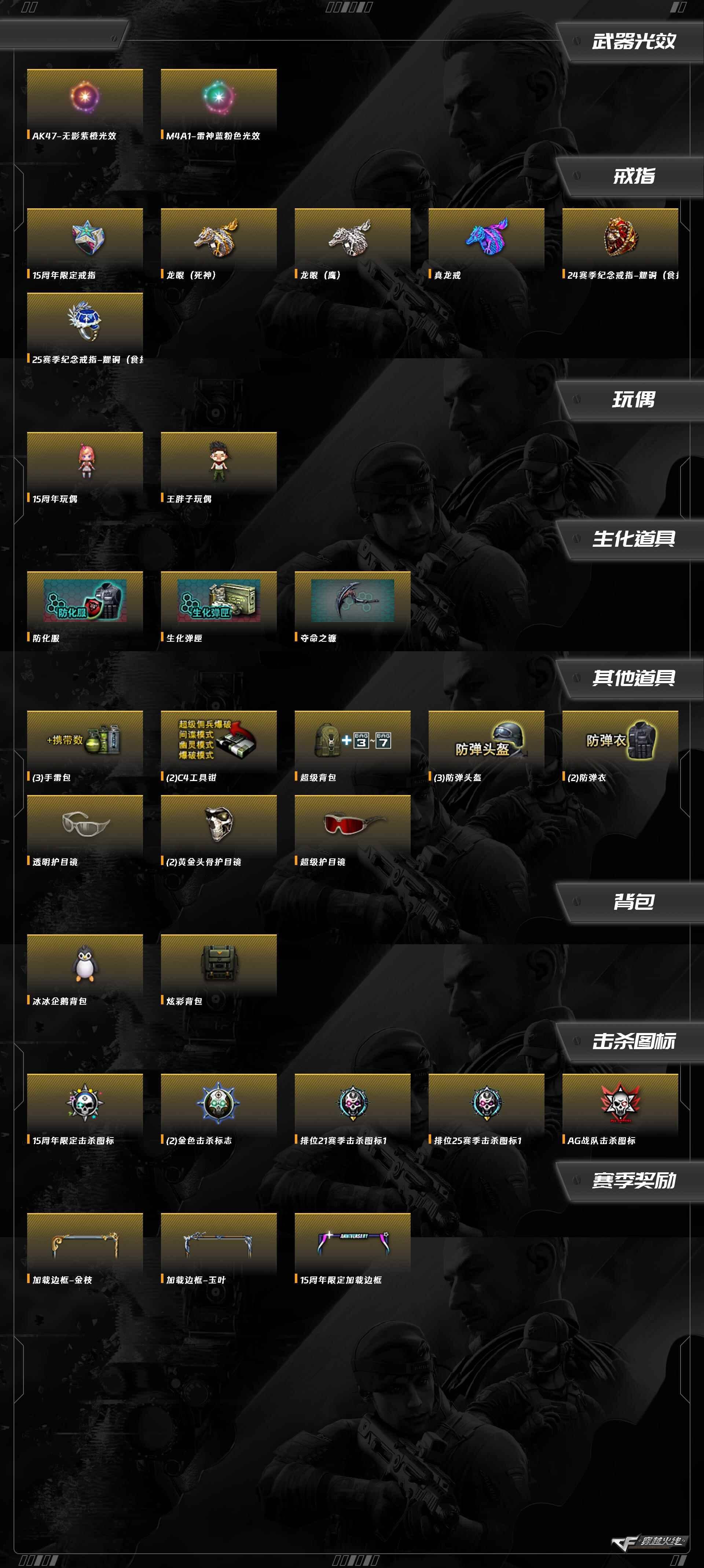 AK47-无影,AK47-火麒麟,AK47-B-战士,9A91-烈火,沙鹰-修罗,屠龙