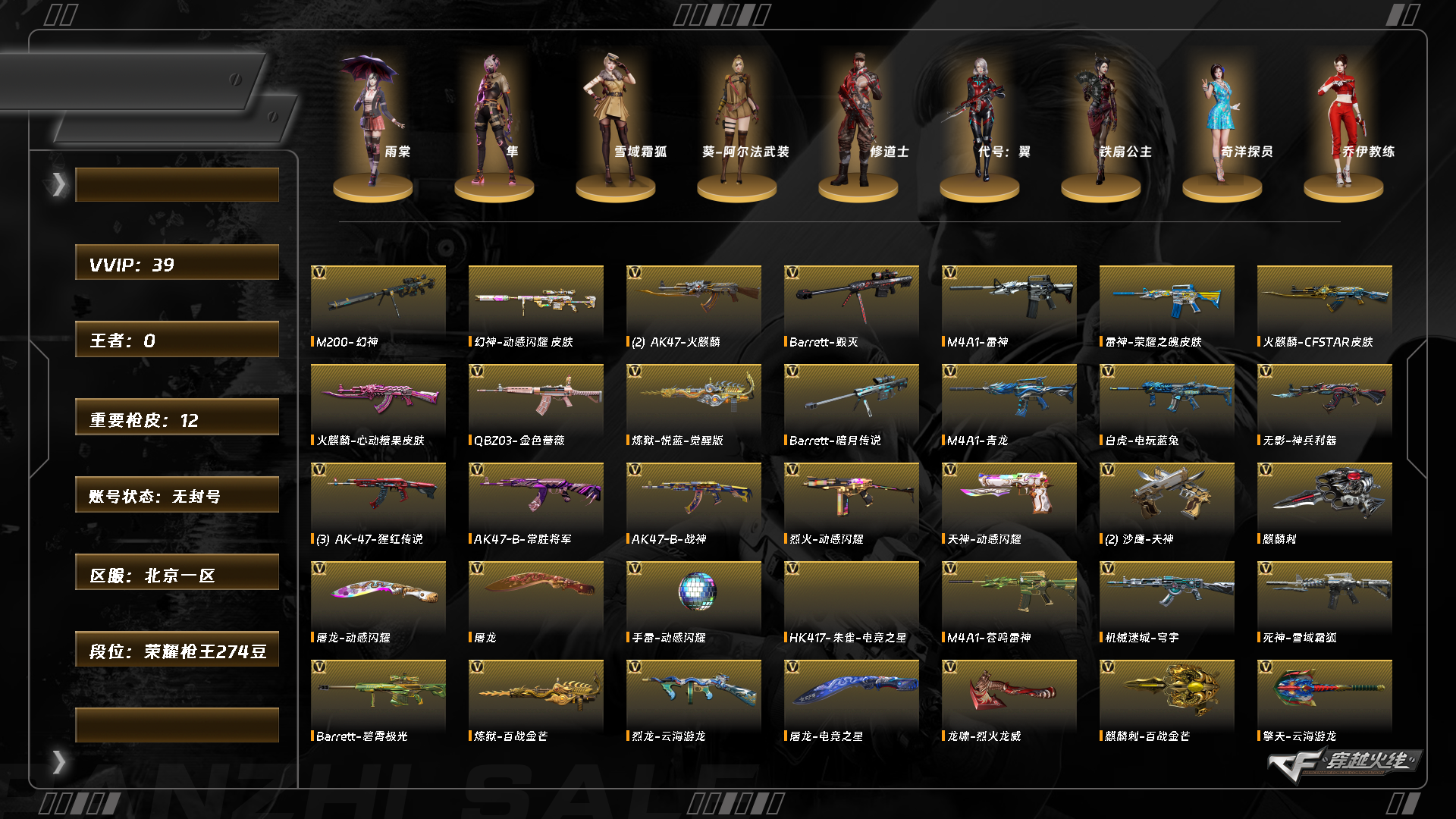 【C26819757】[15411569]XH5186/北部/北京一区/可排位/【荣耀枪王274豆】【Lv.100 元帅】VIP5/39V/幻神/幻神动感闪耀/青龙/白虎电玩蓝兔/QBZ金色蔷薇/朱雀电竞之星/无影神兵利器/【音效卡】死神雪域霜狐音效卡/碧霄极光音效卡/炼狱百战金芒庆典舞曲音效卡/擎天云海游龙音效卡/麒麟刺百战金芒音效卡/【枪皮】火麒麟心动糖果/毁灭黑大圣/雷神神秘按键/【角色】雨棠/隼//雪域霜狐/修道士/乔伊教练/云海玲珑/【道具】/永久烟雾头/护目镜/超级背包/各种戒指/各种光效/各种玩偶/永久AC/永久雷包/细节看图/【此账号未被封过十年】