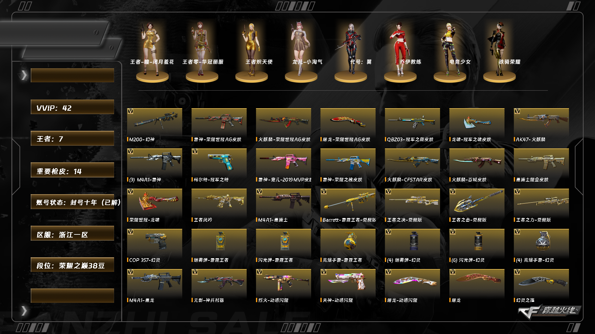 【C26817684】[15411795]XH5189【信用分200】/东部/浙江一区/可排位【荣耀之巅38豆】【Lv.102 荣耀元帅】VIP5/42V/幻神/朱雀电竞之星/COP幻灵/柯尔特冠军之特/王者风吟/柯尔特荣耀世冠EP/烈火动感闪耀套/黑武士锦绣游龙无影神兵利器/黑骑士/【枪皮】/QBZ冠军之微/天龙CFSTAR/火麒麟荣耀世冠AG/火麒麟百城/雷神宠儿2019MVP/【四防】王者炽天使/【角色】王者瞳闭月羞花/龙儿小淘气/乔伊教练/【道具】/永久烟雾头/护目镜/各种戒指/各种光效/各种玩偶/永久AC/永久雷包/细节看图/【账号封禁过十年已解】/