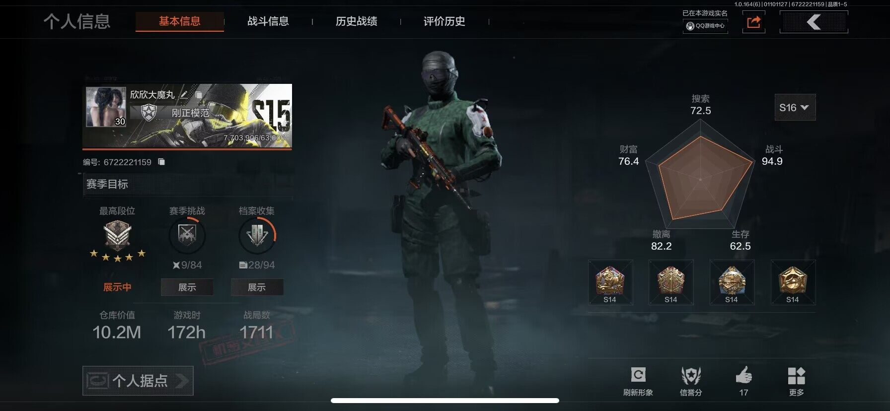 【C26943876】【AQQH247】段位:大师/仓库价值(百万):10.2/NOCs-7折刀/工兵铲