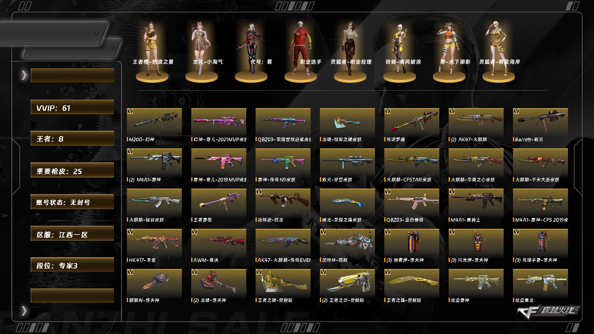 【C26937442】[15457335]ABC10505/南部/江西一区/钱包注销/可排位/可二次/掌火ID:712531370/63V/传说梦魇/幻神/幻神宠儿/QBZ金色蔷薇/QBZ荣耀世冠白鲨/天龙/毁灭/极光/朱雀/黑骑士/雷神/火麒麟/黑龙/【小人枪】/毁灭孙三炮/巴雷特零水下丽影/【四防已开】/灵狐者职业经理/【四防未开】/王者樱热浪之夏/【音效卡】/黑龙音效卡/黑骑士音效卡/【皮肤】/黑骑士白马银枪/雷神N9/火麒麟传奇EVEN/毁灭CFS2018/火麒麟CFS2018/雷神宠儿/雷神CFS2019/永久AC/细节看图