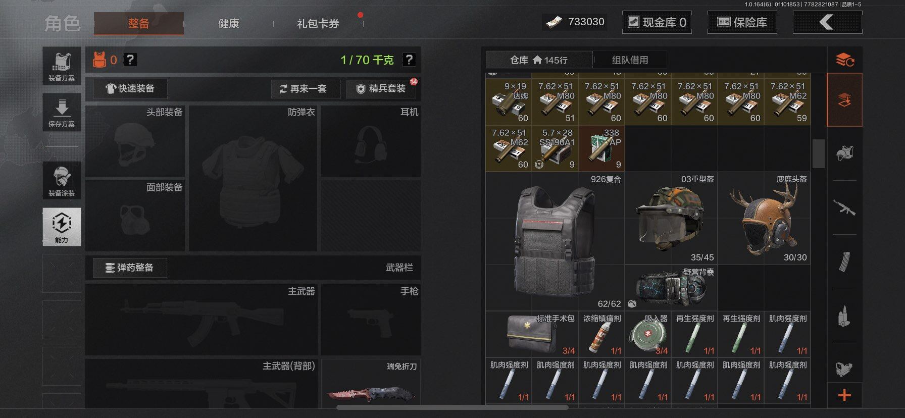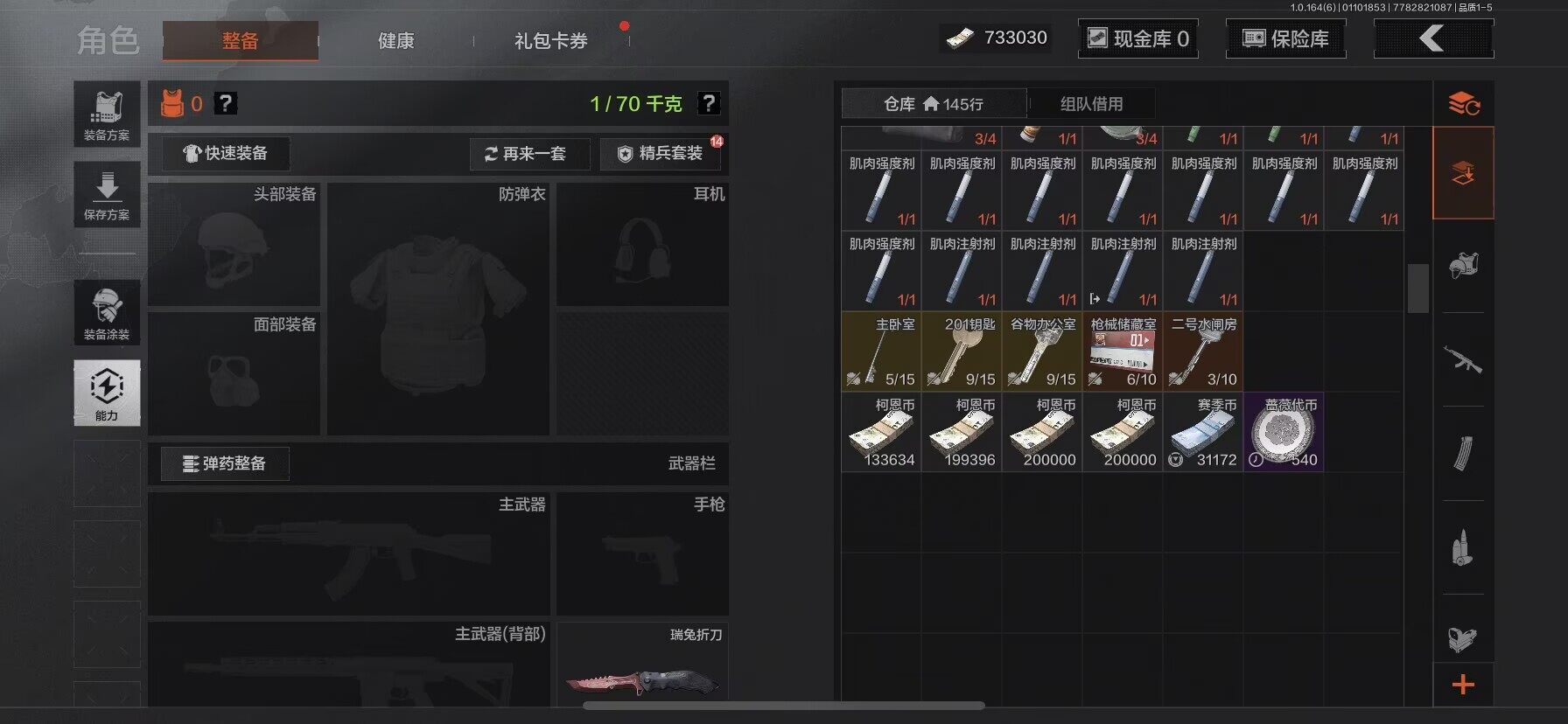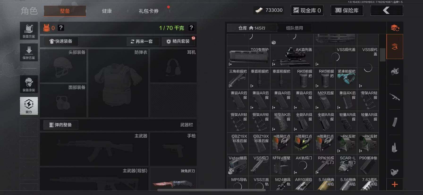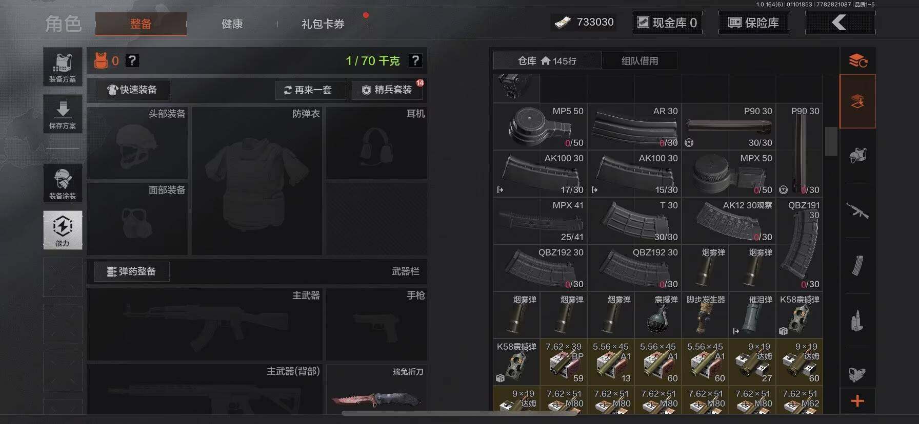 【C26902109】【AQQH251】等级:30/段位:大师/仓库价值(百万):3/瑞兔折刀/脉冲马克西姆/冰河碎影MK14/战术大师AN94/旧王圣谕VSS/旧王圣谕QBZ191