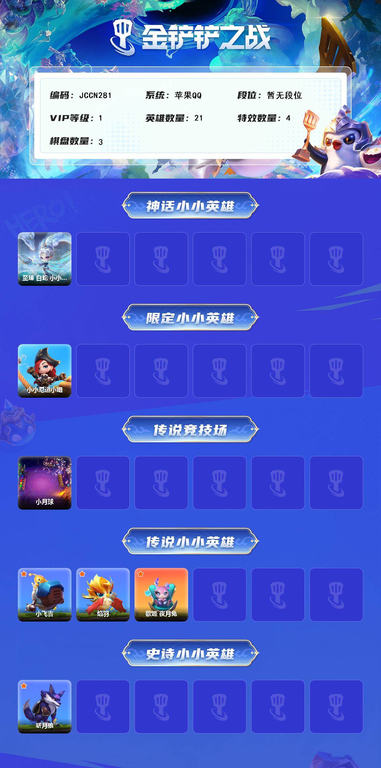 【C261077737】【JCCN281】1神话/21小小英雄/3棋盘/至臻 白蛇 小小迦娜/小小厄运小姐/小月球/小飞吉/焰羽/歌姬 夜月兔/斩月狼