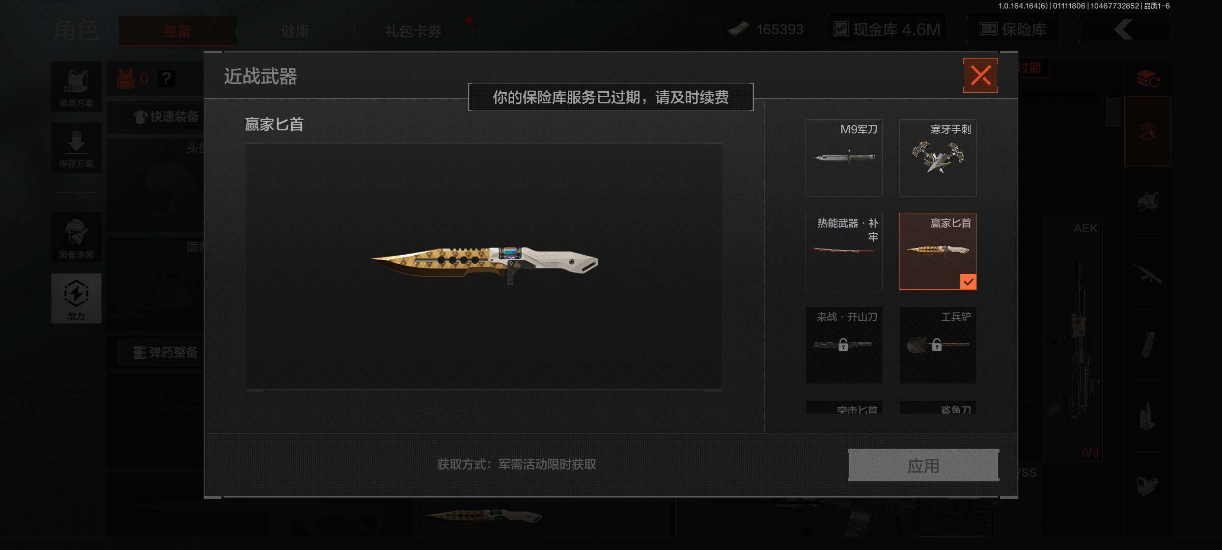 【C261089921】【AQN100】等级:30/段位:王牌/仓库价值(百万):44.8/柯恩币:0.1/热能武器补牢/赢家匕首/寒牙手刺