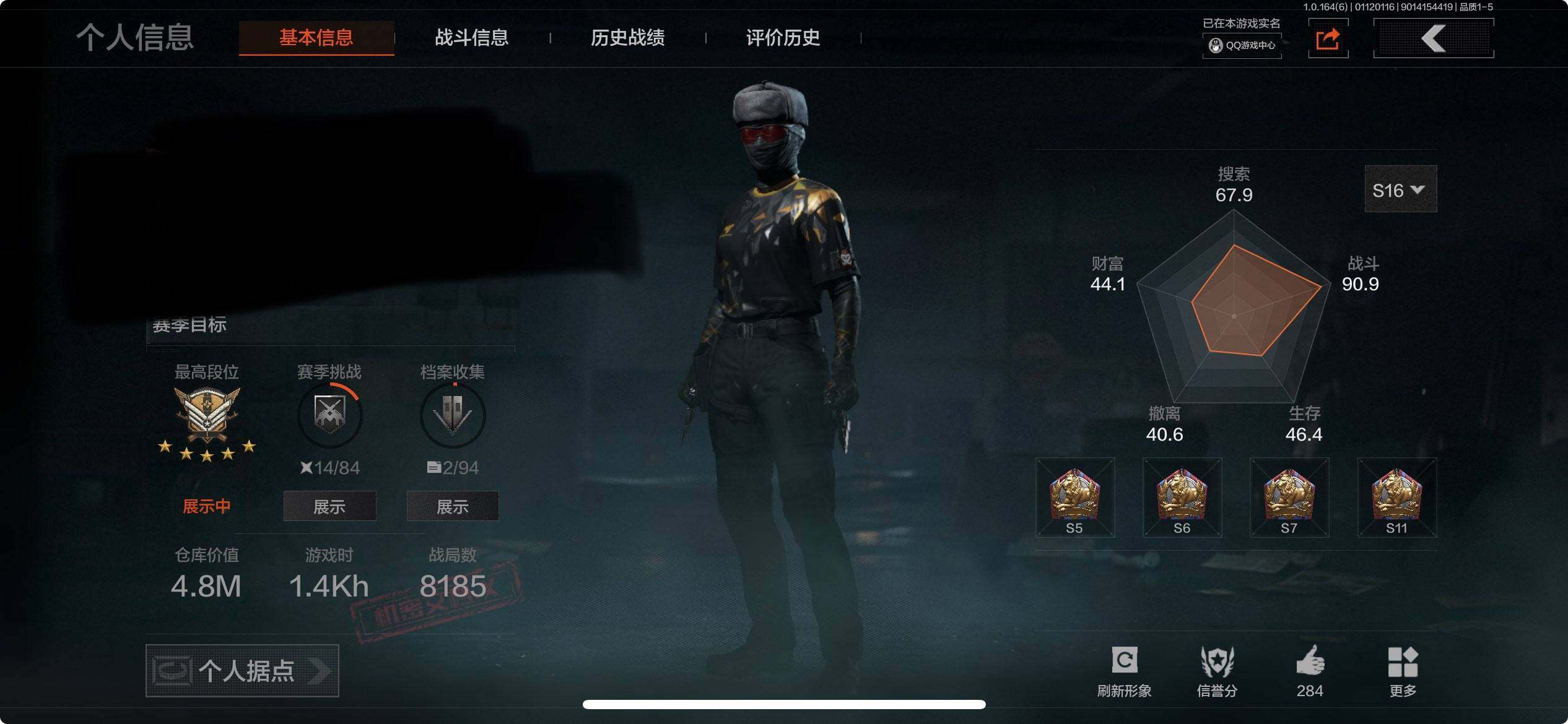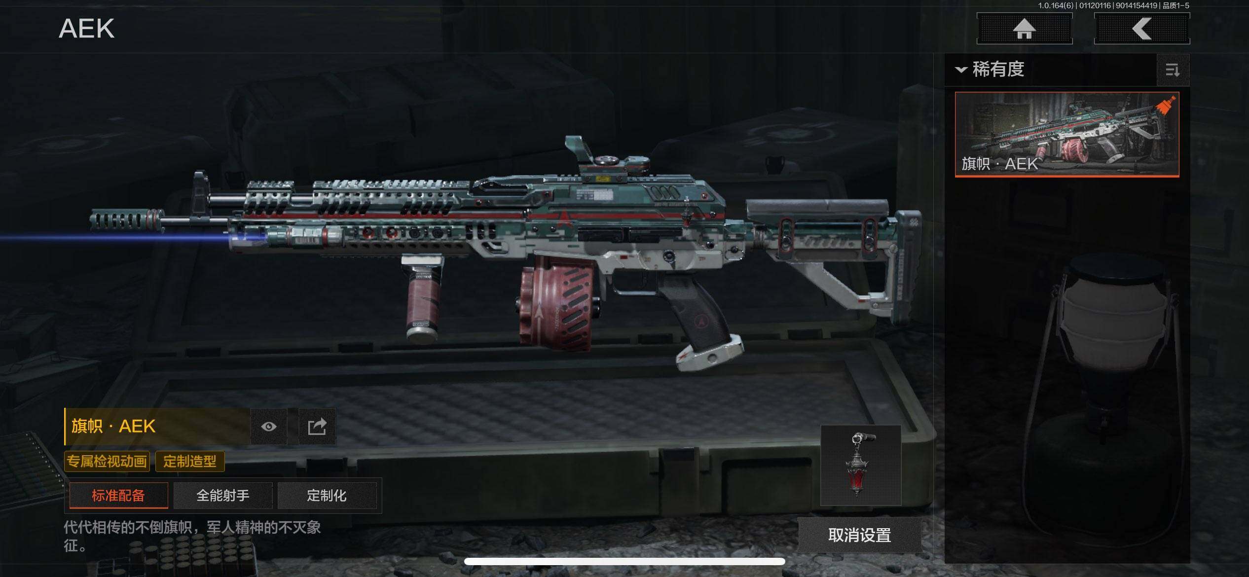 【C261130141】【AQN101】段位:王牌/仓库价值(百万):4.8/柯恩币:235602/工兵铲/突击匕首/寒牙手刺/来战·开山刀/旗帜AEK/告丧夜曲AR57