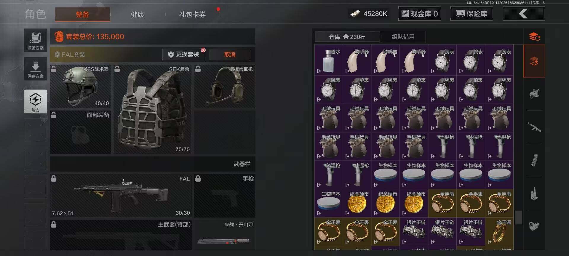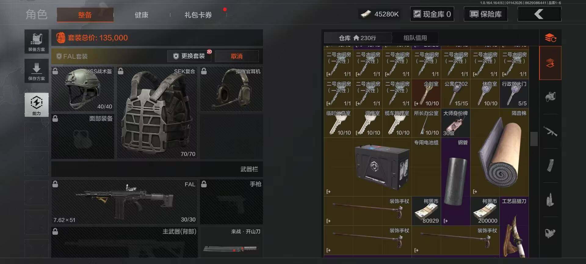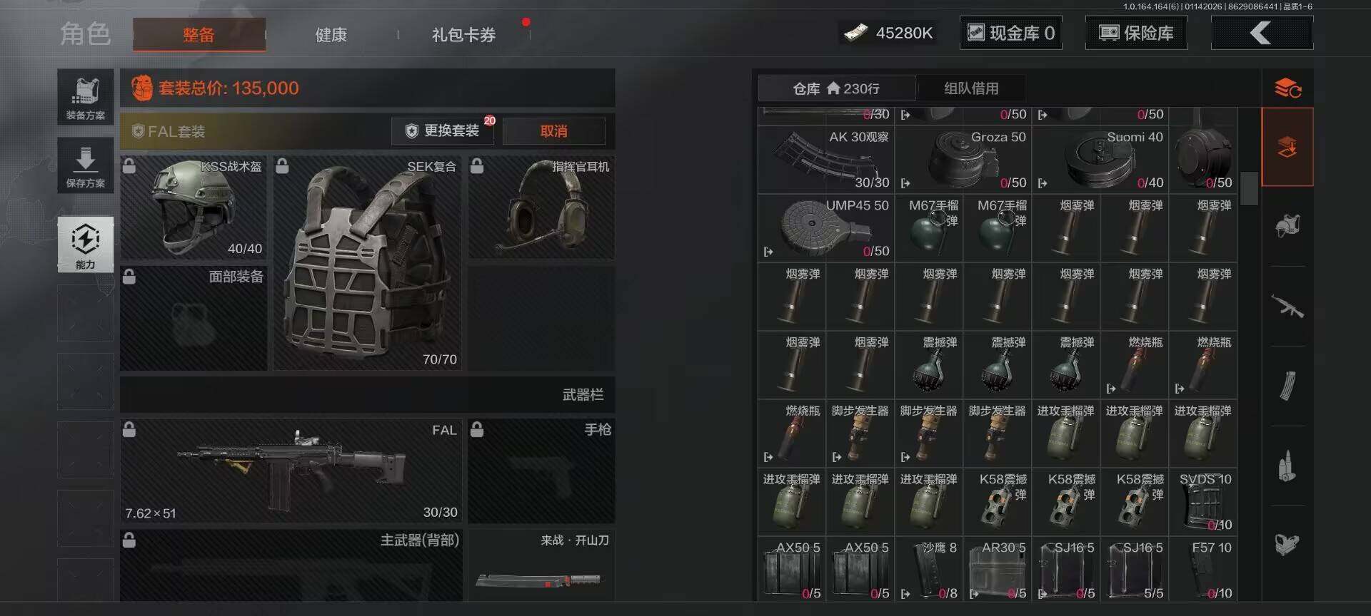 【C261387545】【AQZG981】等级:30/段位:新锐/仓库价值(百万):64/柯恩币:45280000/来战·开山刀
