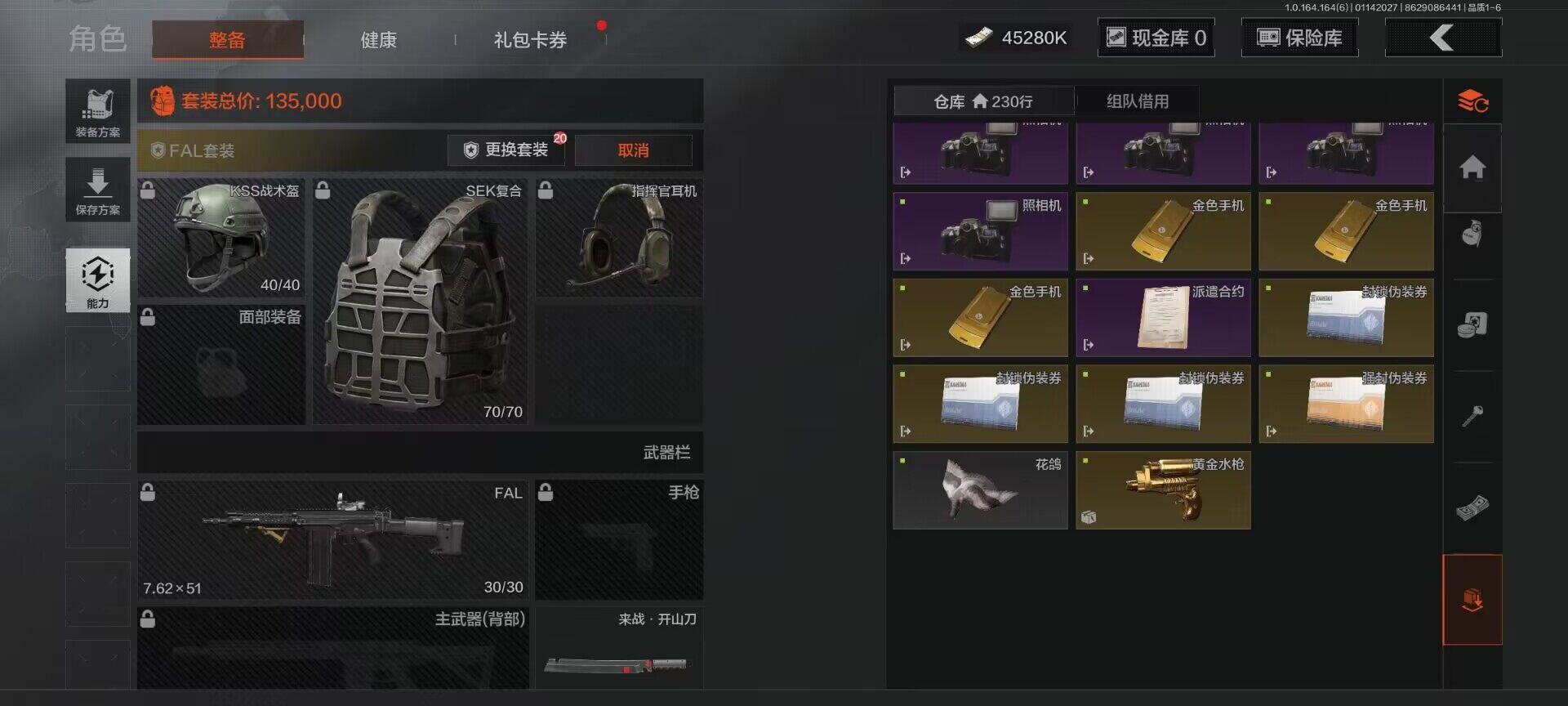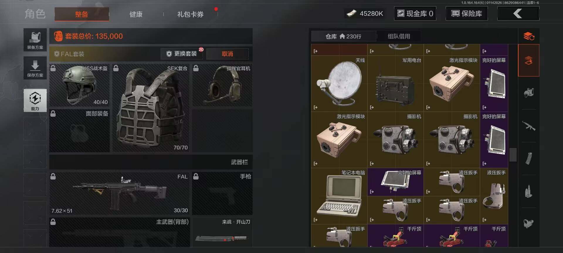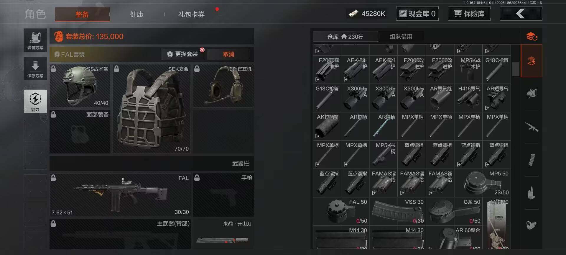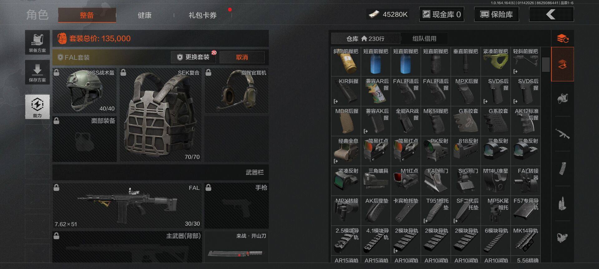 【C261387545】【AQZG981】等级:30/段位:新锐/仓库价值(百万):64/柯恩币:45280000/来战·开山刀