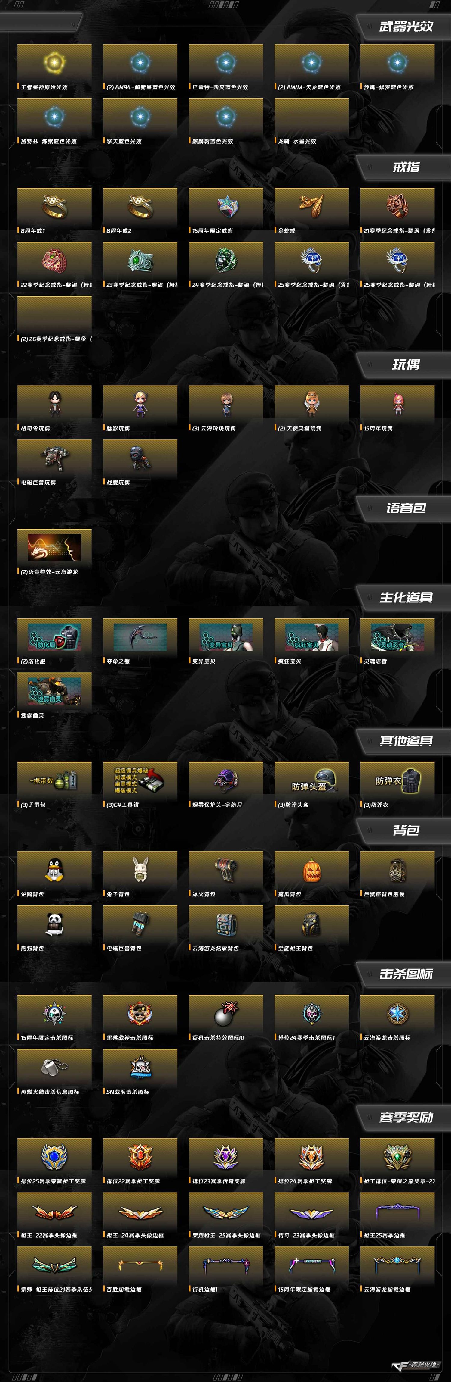汤姆逊-烈龙,擎天,麒麟刺,龙啸,屠龙,沙鹰-天神,柯尔特-竞技荣光,擎天-竞技荣光,沙鹰-修罗,加特林-炼狱,擎天-云海游龙,AWM-裁决,Barrett-毁灭,M4A1-雷神,AK47-火麒麟,M200-竞技荣光,龙啸-烈火龙威,屠龙-云海游龙,M200-幻神